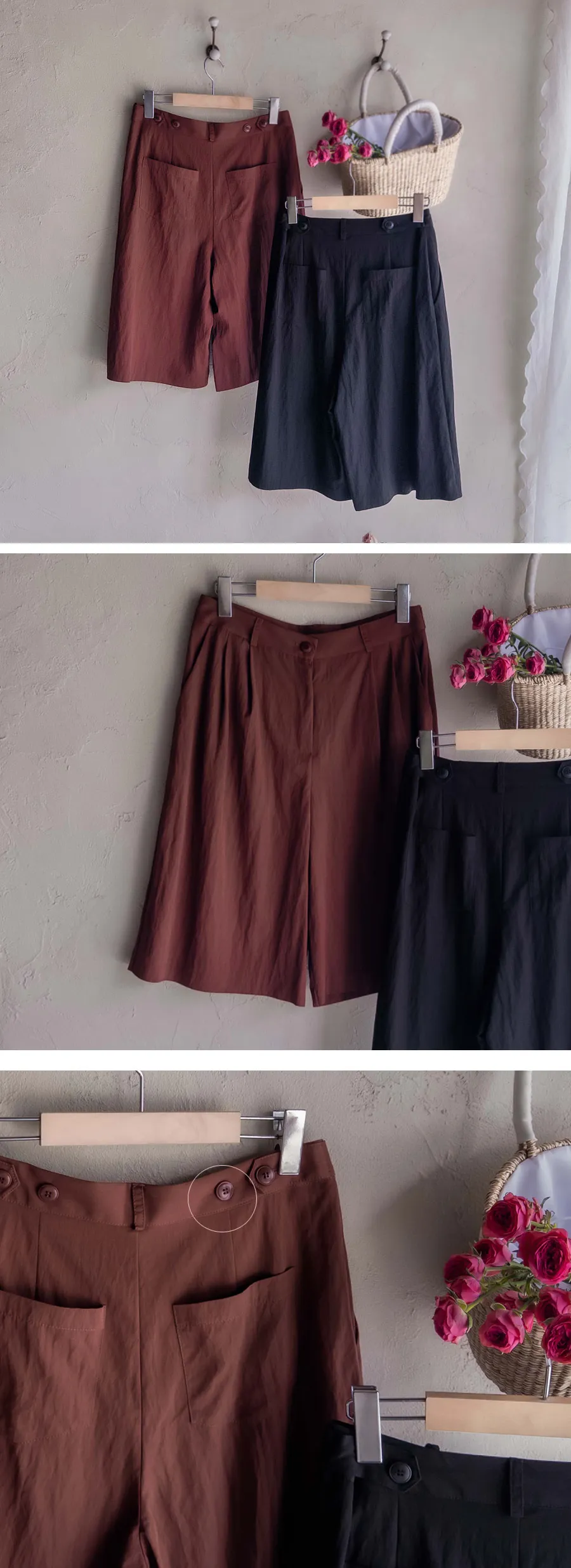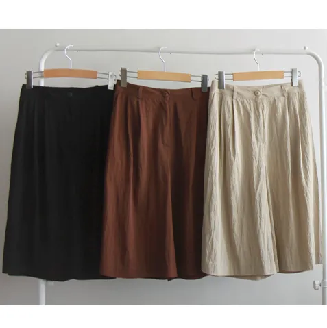 [採用人造絲尼龍的涼爽布料] [適合盛夏至秋季] [可透過後腰扣調整尺寸以貼合身體] [修身風格短褲] [可透過後腰紐帶輕鬆調整] [柔軟布料,帶來涼爽感] [飄逸迷人的修身短褲