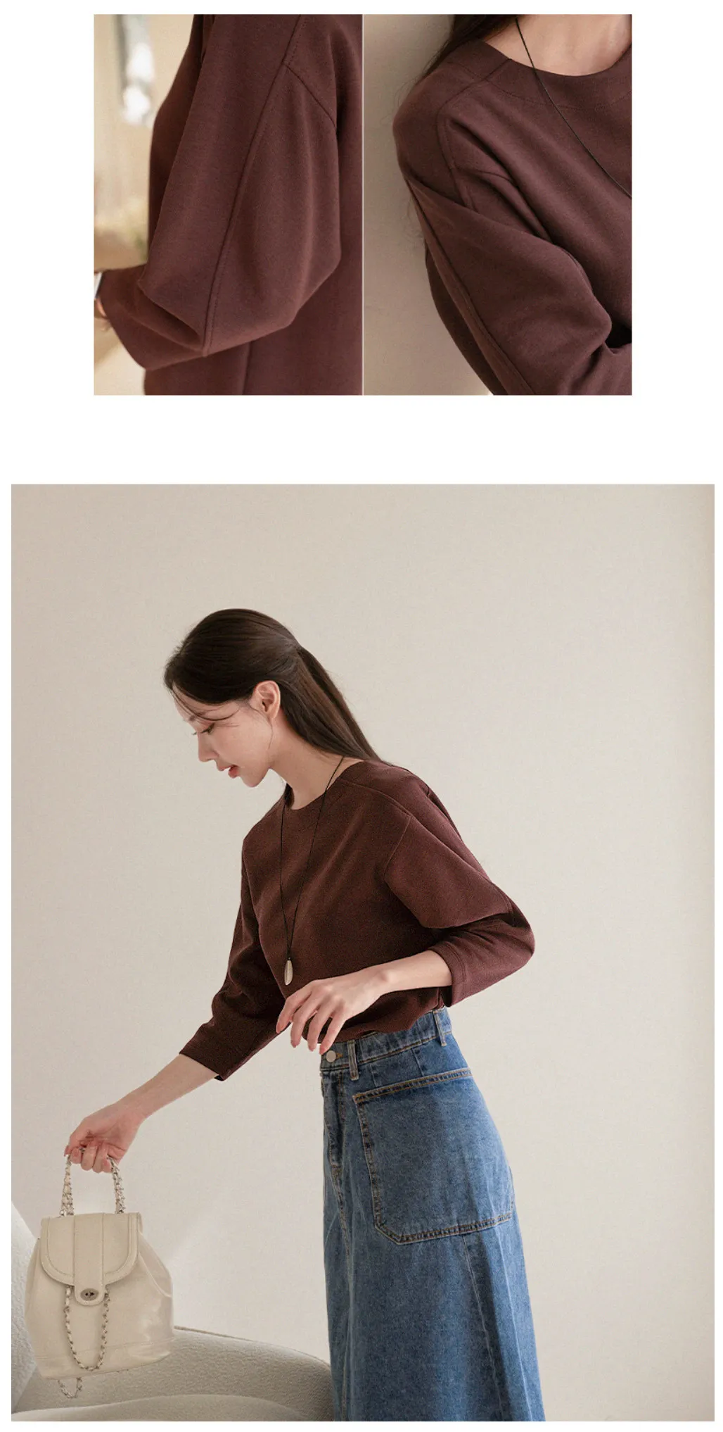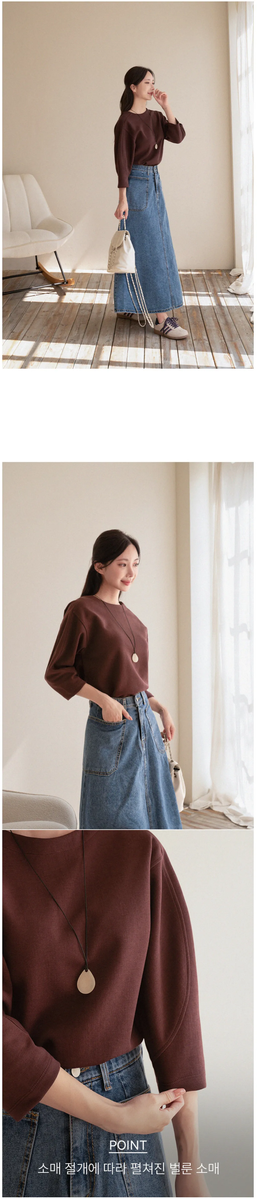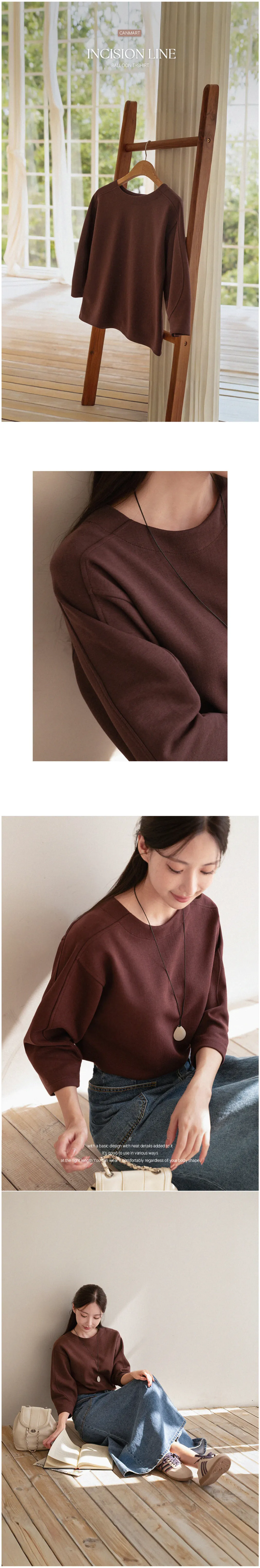 基本款舒適七分泡泡袖上衣