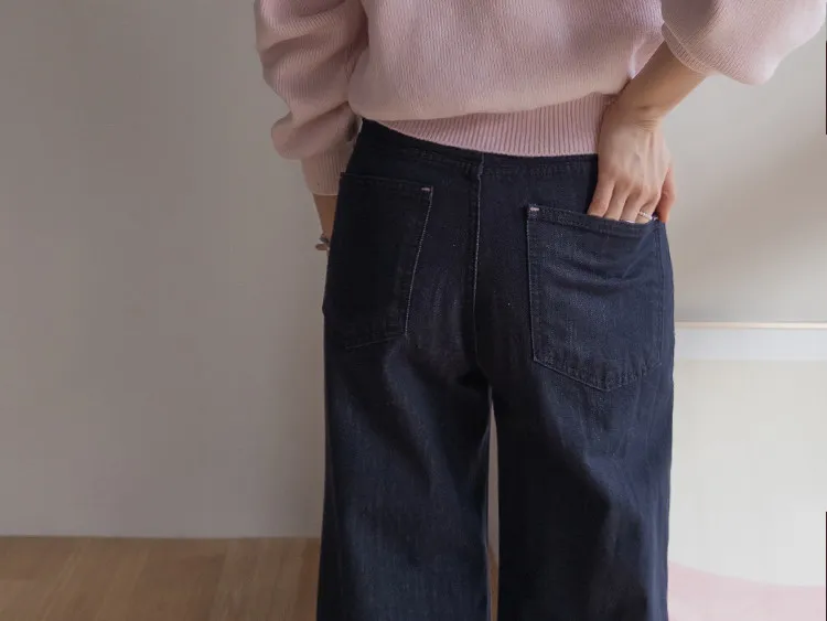 [原色牛仔寬褲_秋季版♥] [超人氣! !秋季版上市~] [完全不用擔心掉色! ! ] [完美包覆下半身,寬鬆版型] [臀部有縫線]