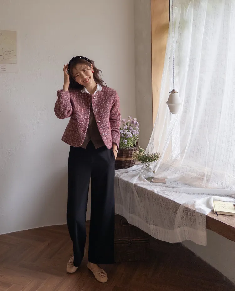 蓬鬆溫暖時尚側縫線日常穿搭休閒褲