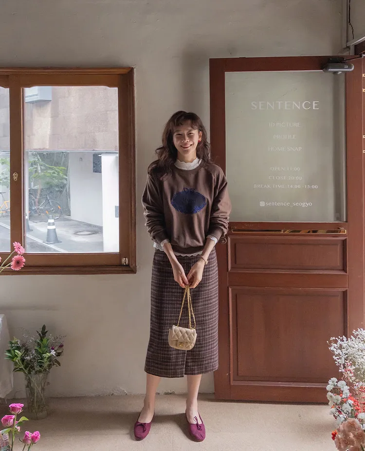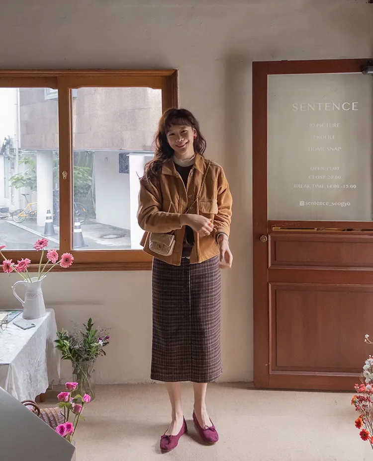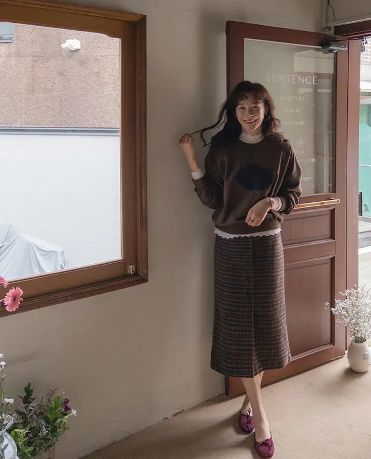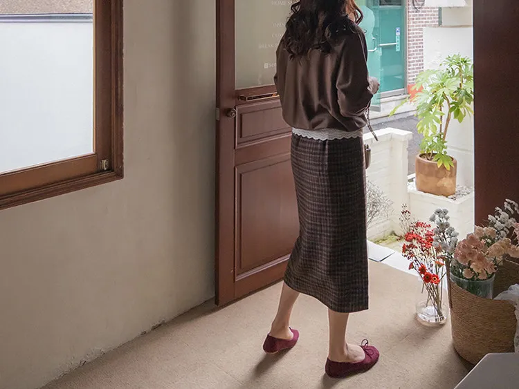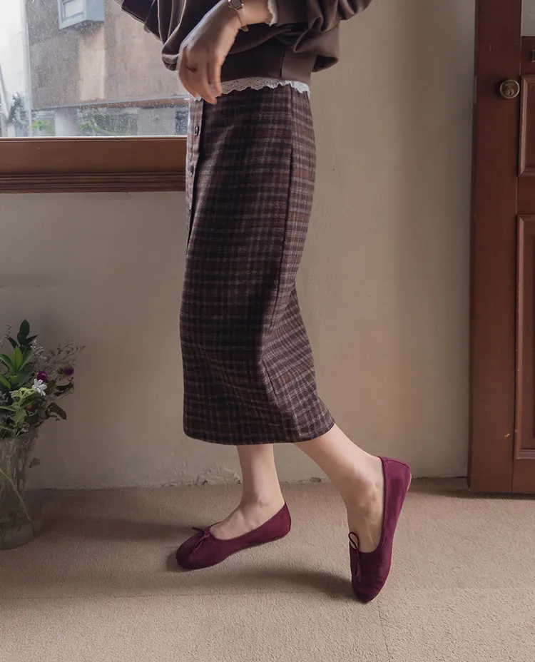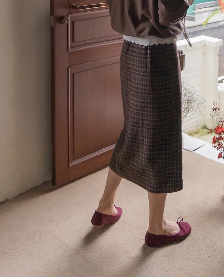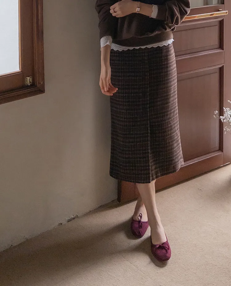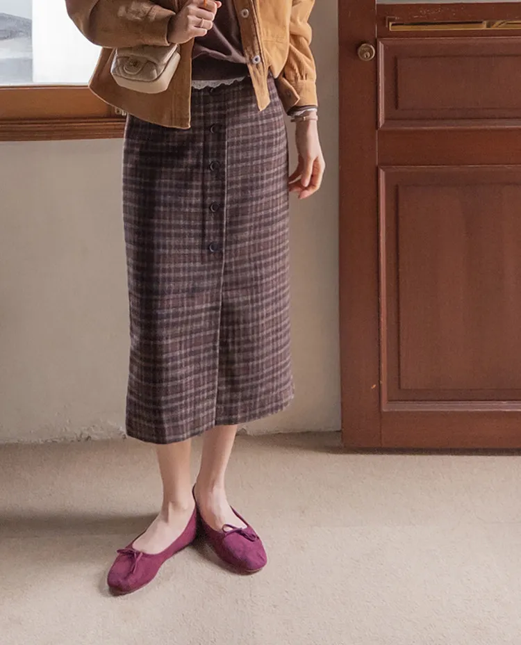 [經典的羊毛長裙✨] [引人注目的格紋圖案! ] [修長纖細的H型設計] [正面紐帶細節增添獨特魅力! ]