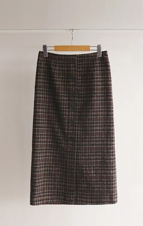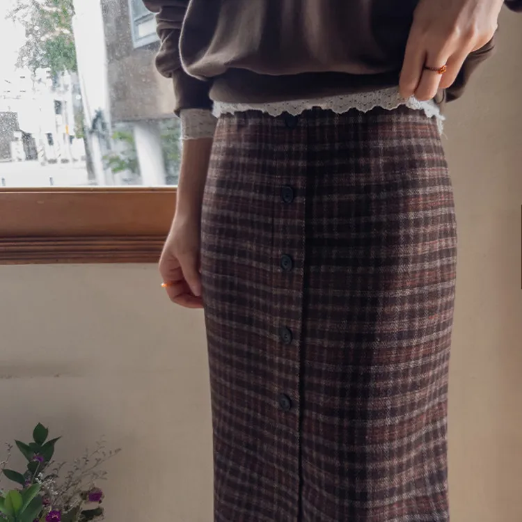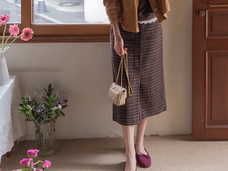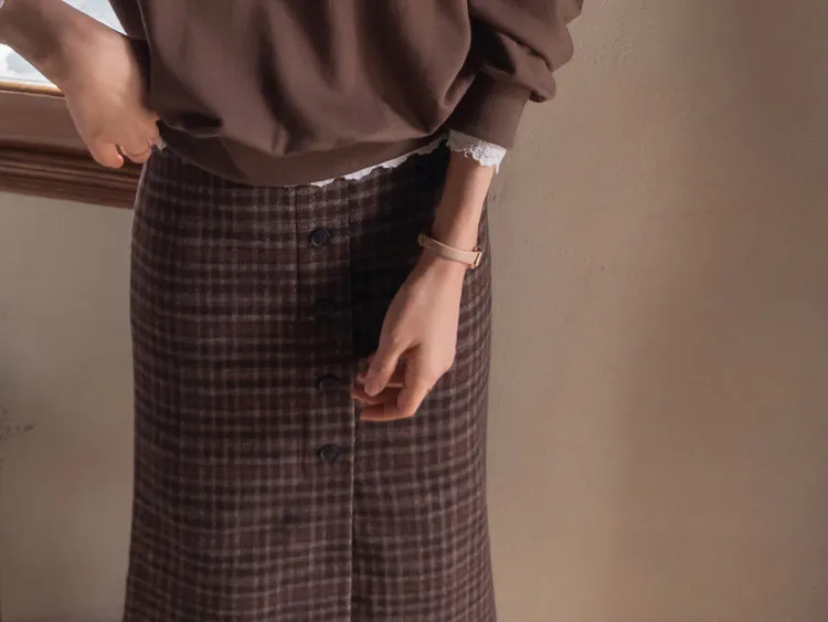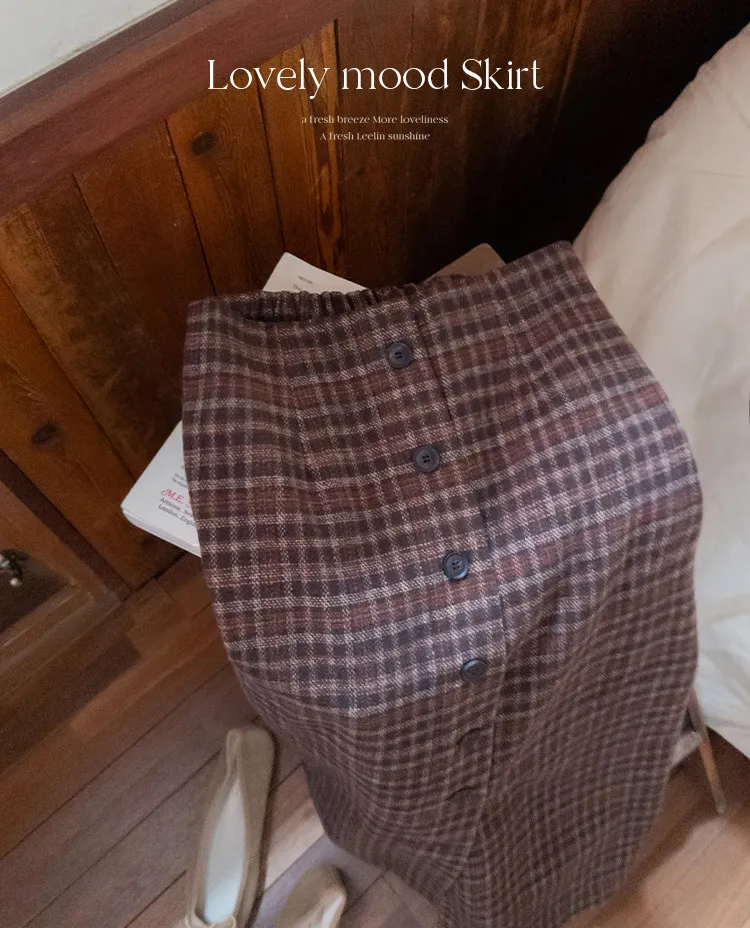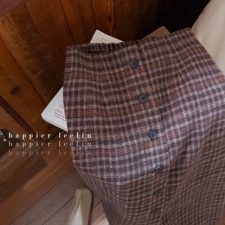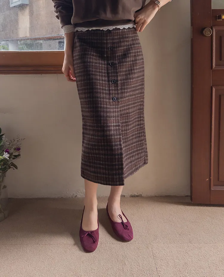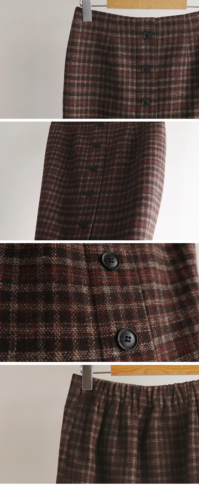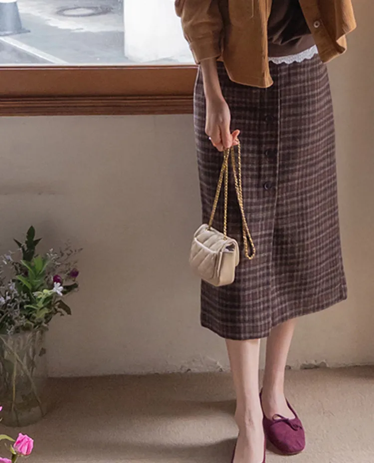 獨特魅力點綴排扣H剪裁格紋中長裙