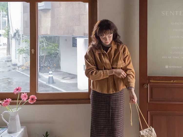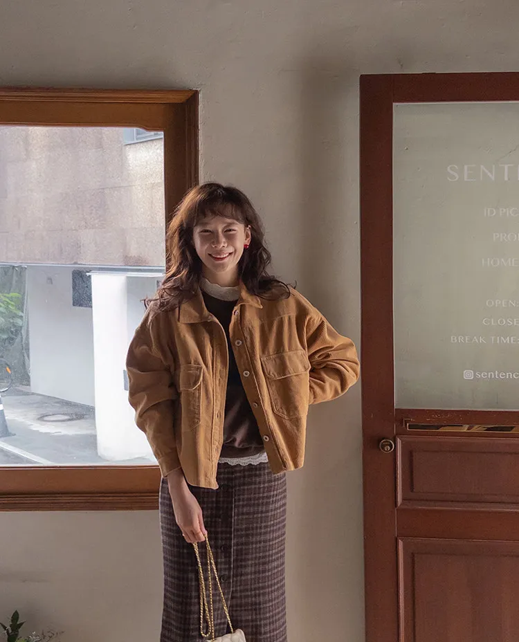 休閒氛圍大口袋舒適穿搭燈芯絨外套