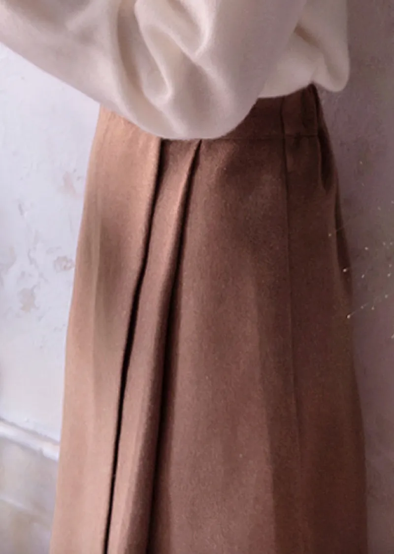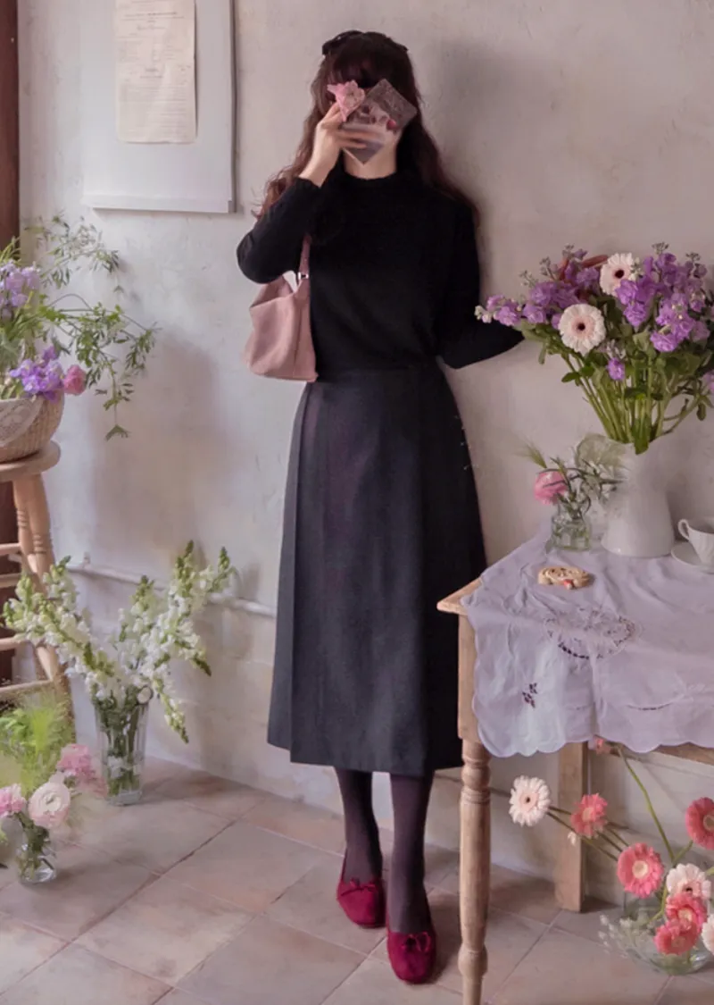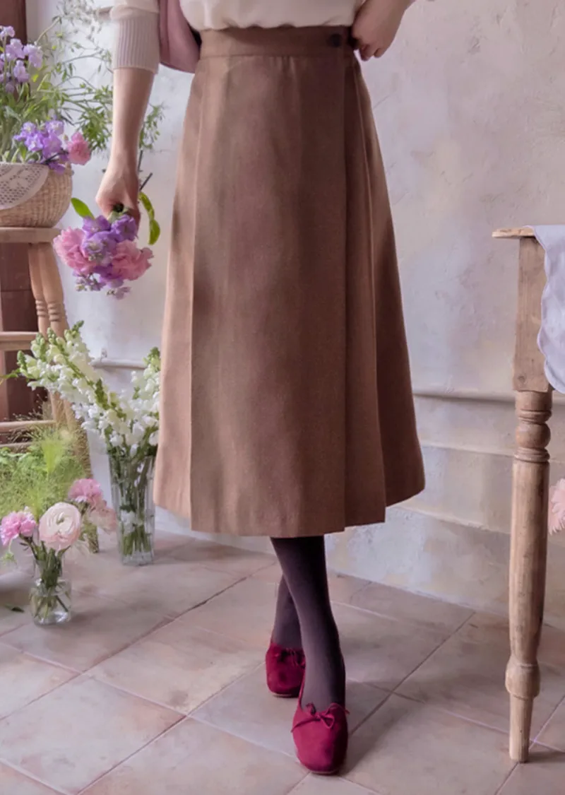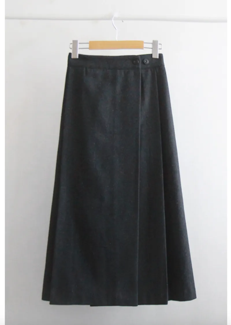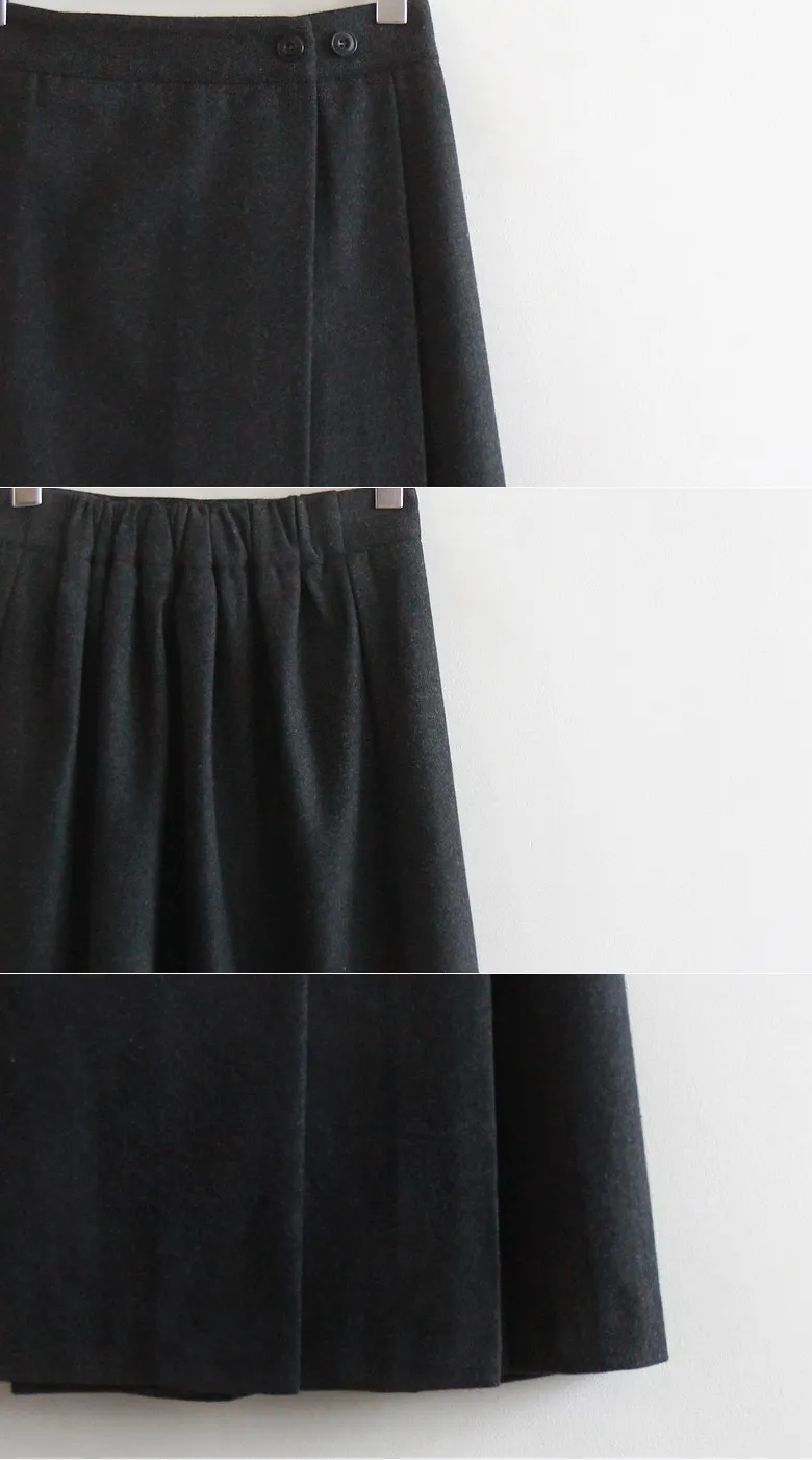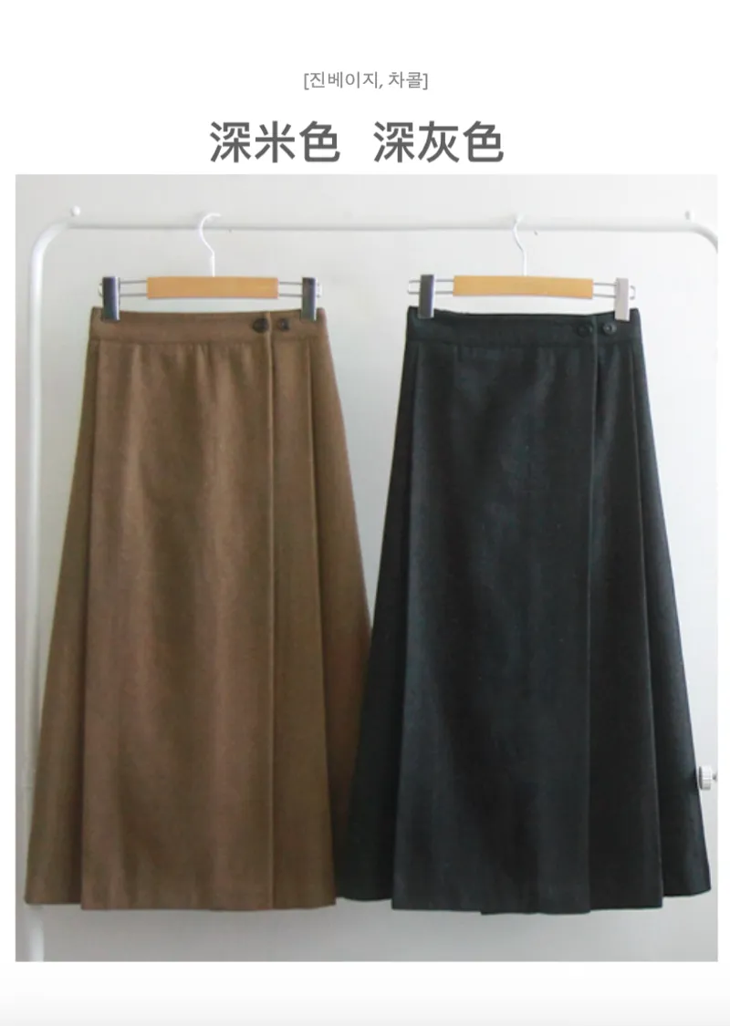 優雅側扣褶襉設計裹身式中長裙