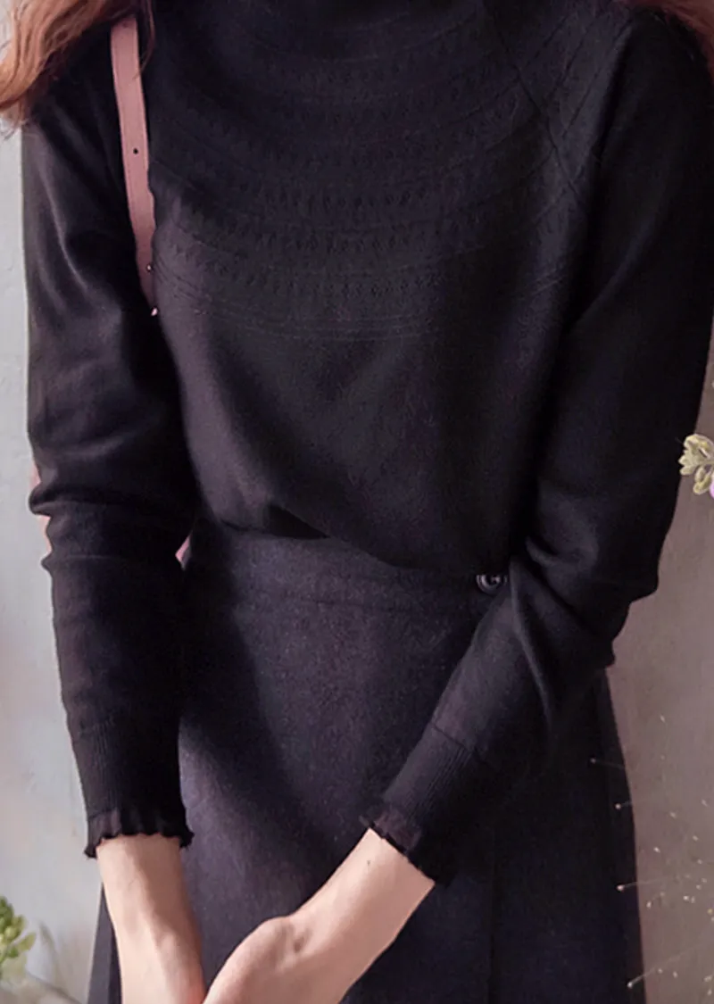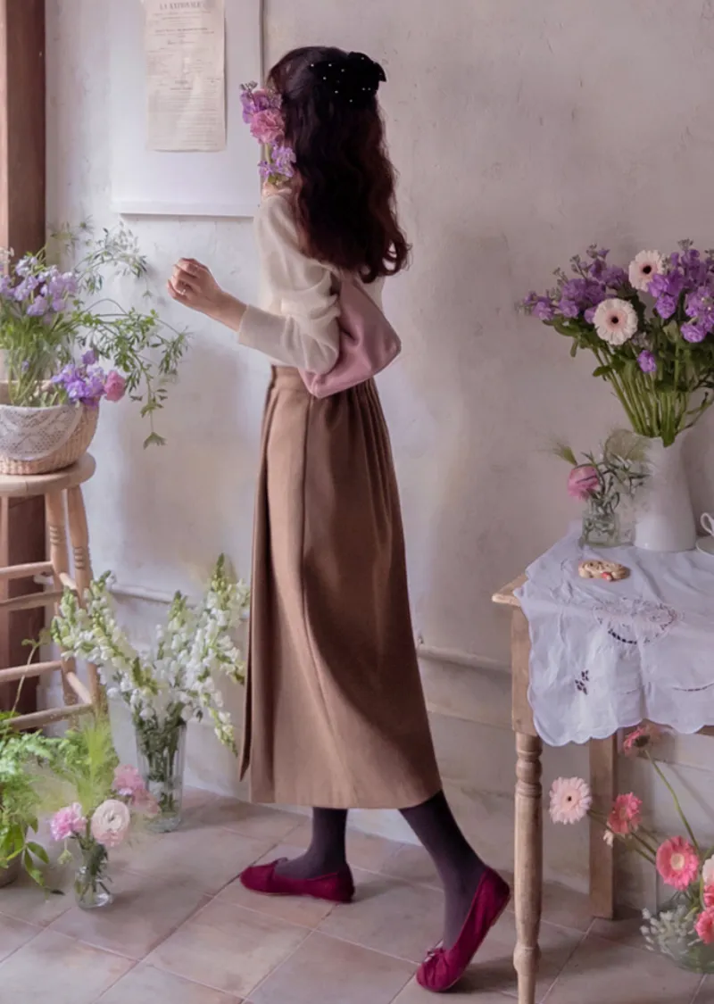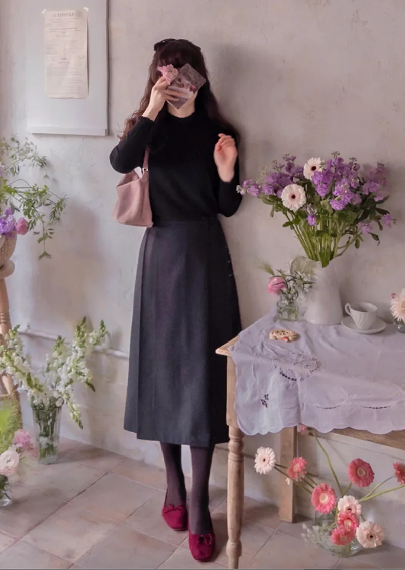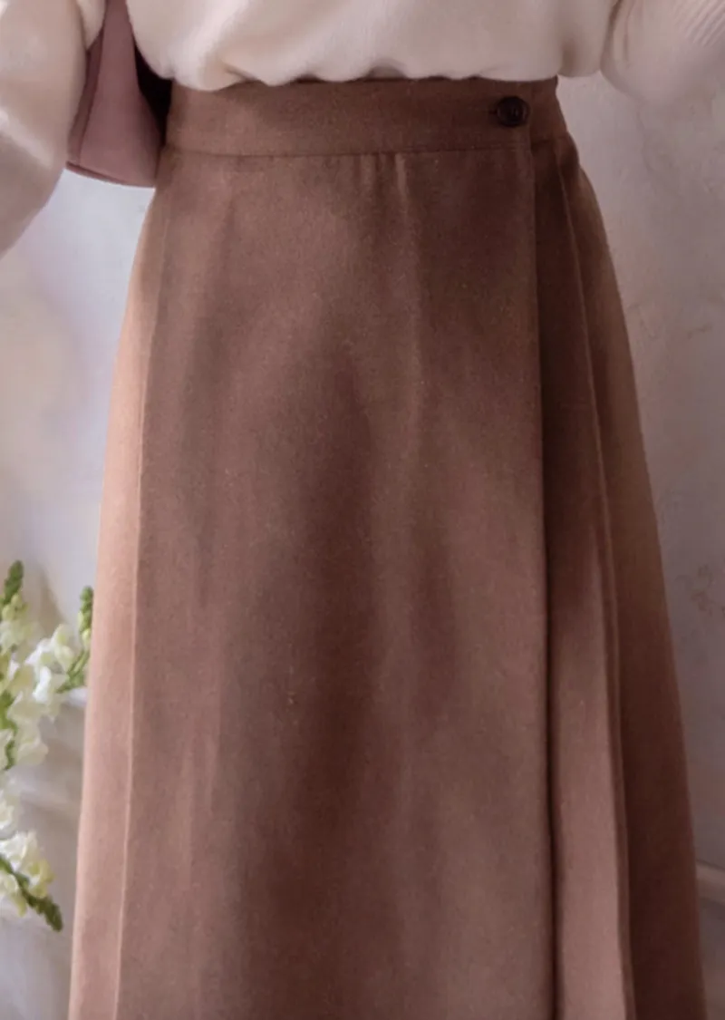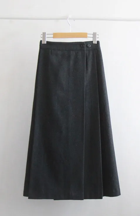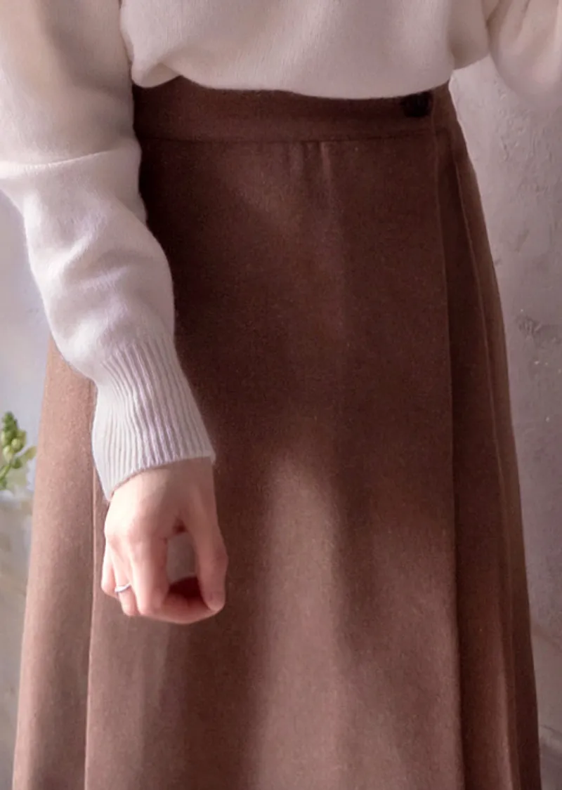 優雅側扣褶襉設計裹身式中長裙