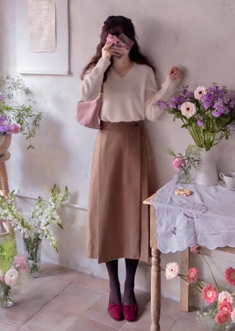 自然柔美廓形精緻V領針織上衣