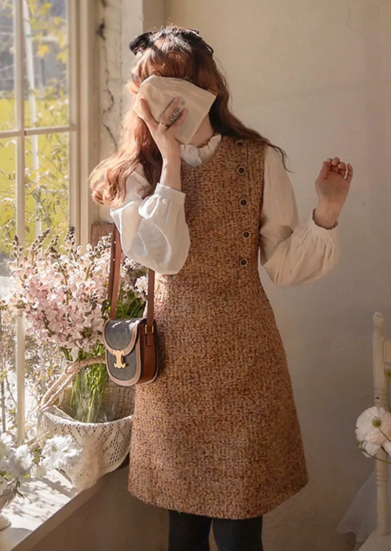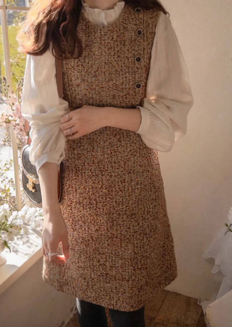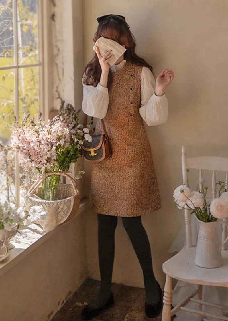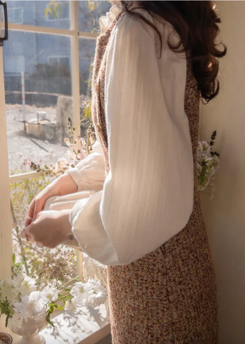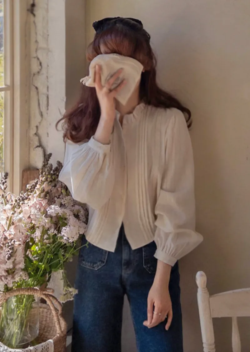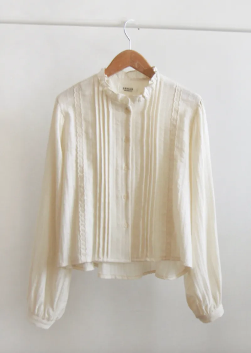 【純色單線圖案排扣上衣,色彩明亮】【領口處的褶皺設計也很漂亮】【觸感柔軟,絨面質感,非常適合換季穿著】【蕾絲裝飾為設計增添活力】【獨特清新感】【是很好的搭配單品】