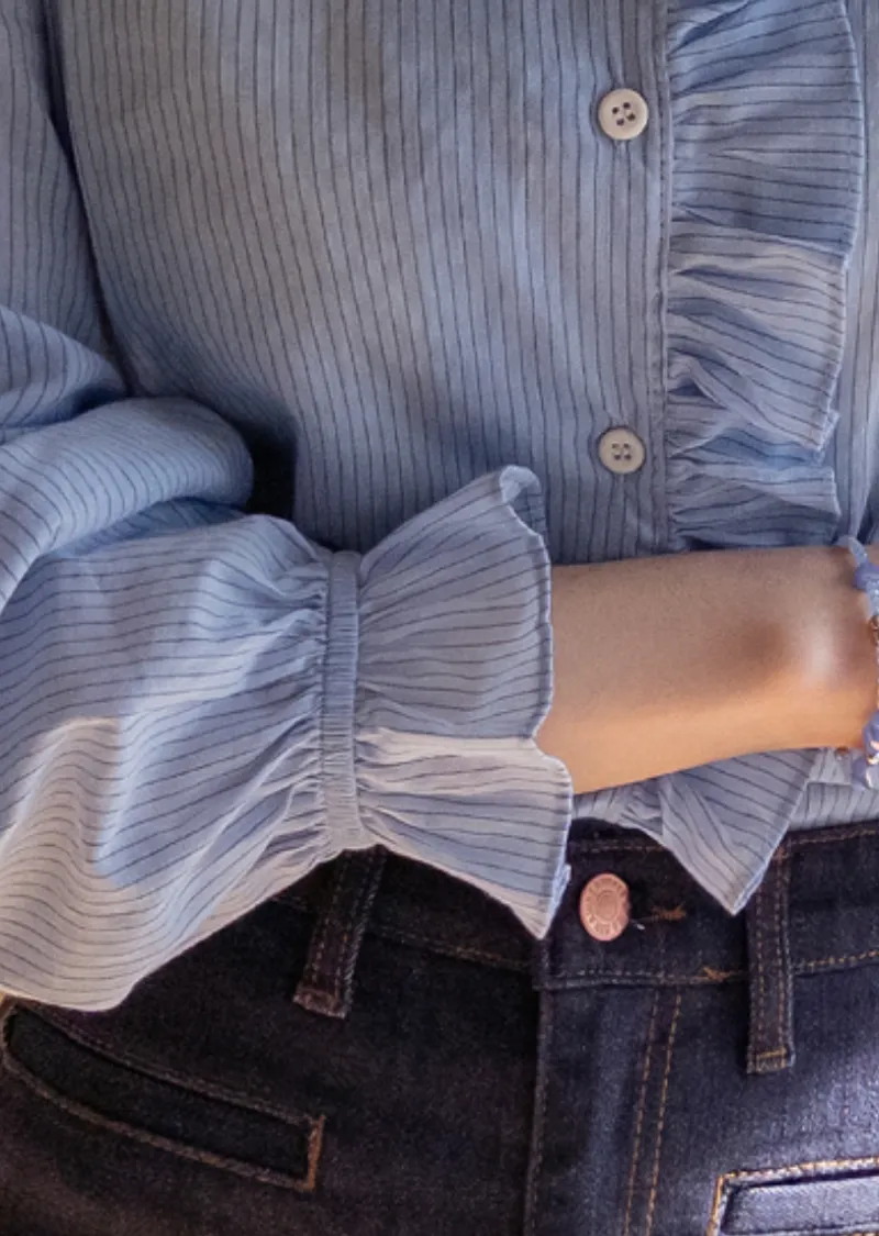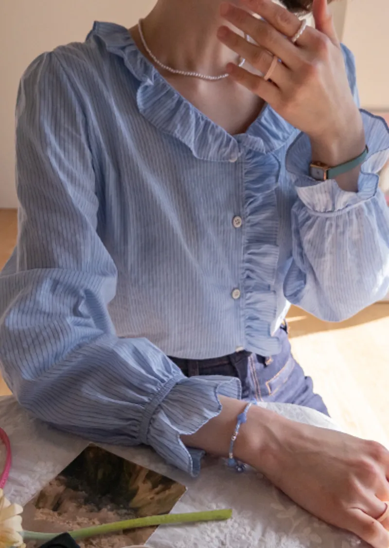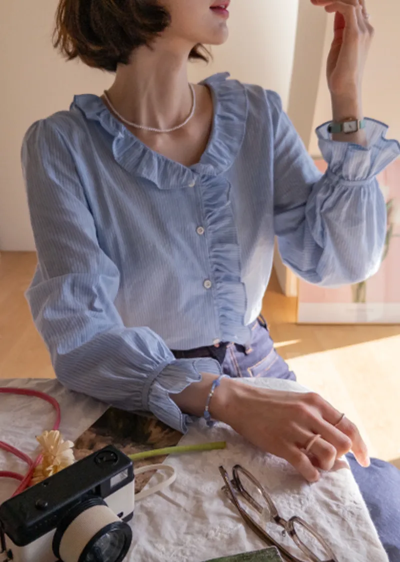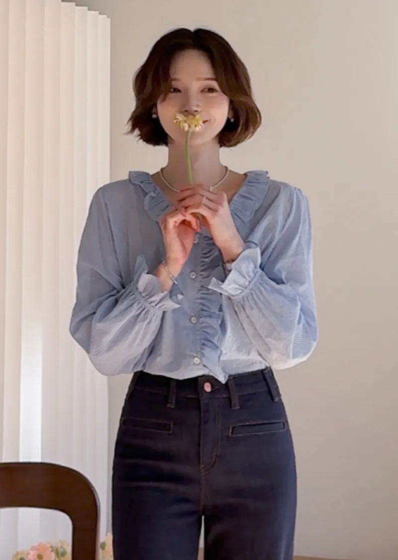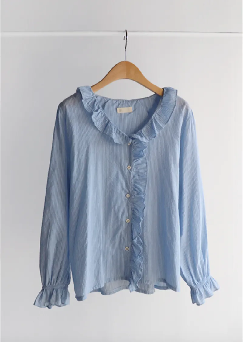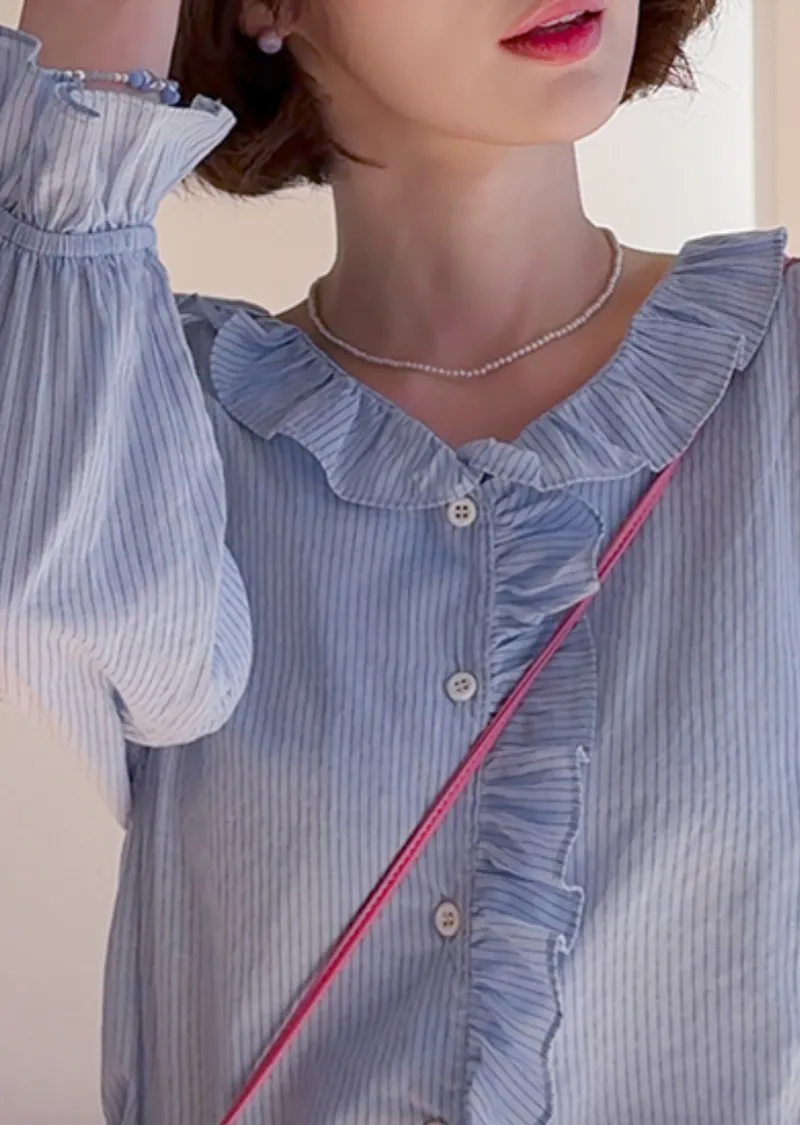 【充滿浪漫氣息排扣上衣♥,荷葉邊細節盡顯優雅】【輕盈精緻的廓形】【單穿也很吸睛! 】【推薦約會裝扮和婚禮賓客裝扮】