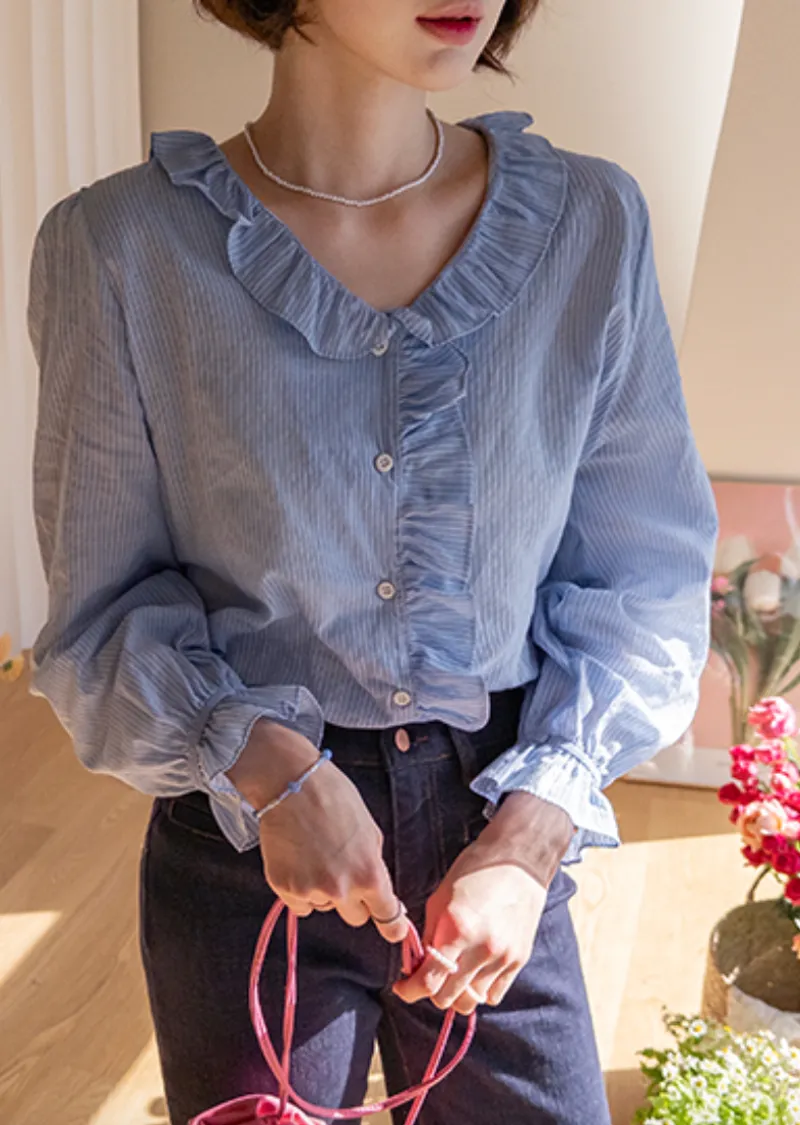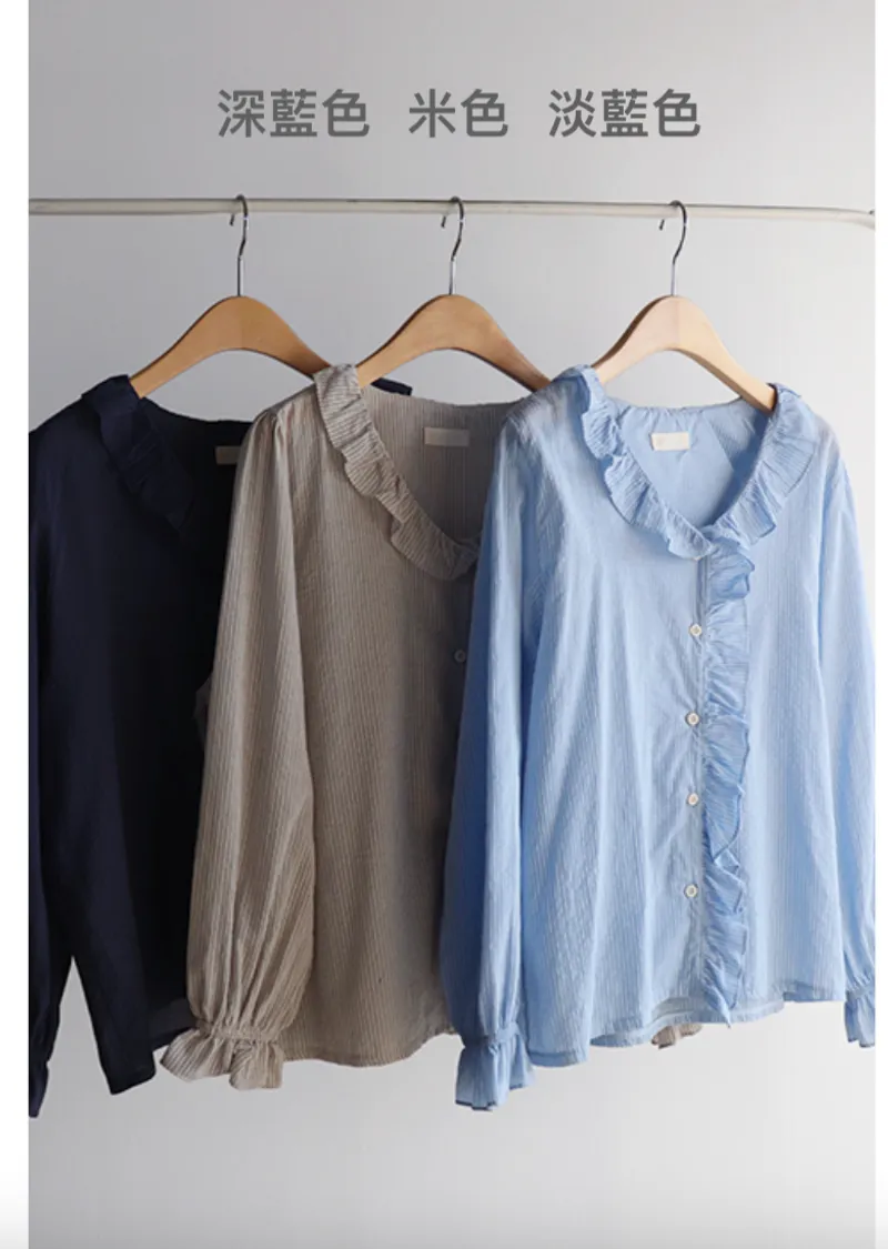浪漫氣息荷葉摺邊輕盈精緻排扣上衣