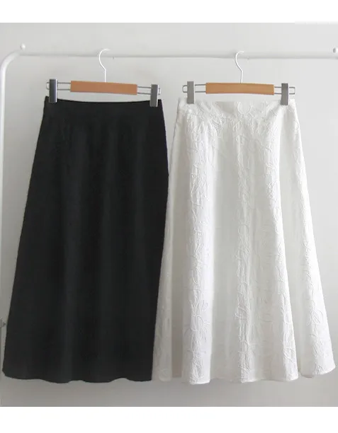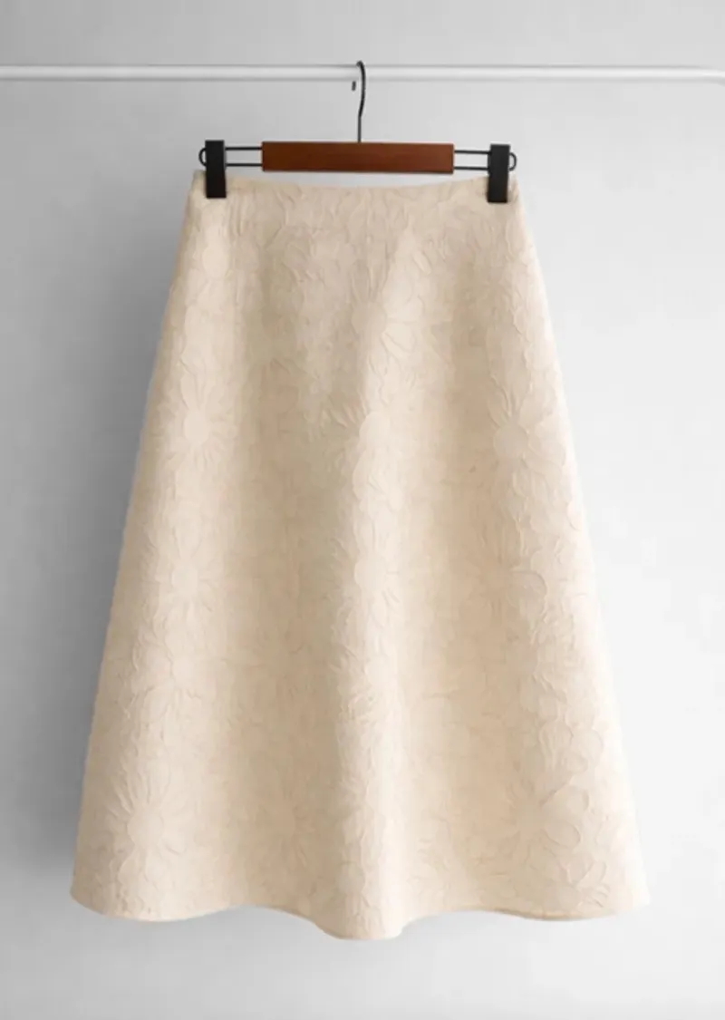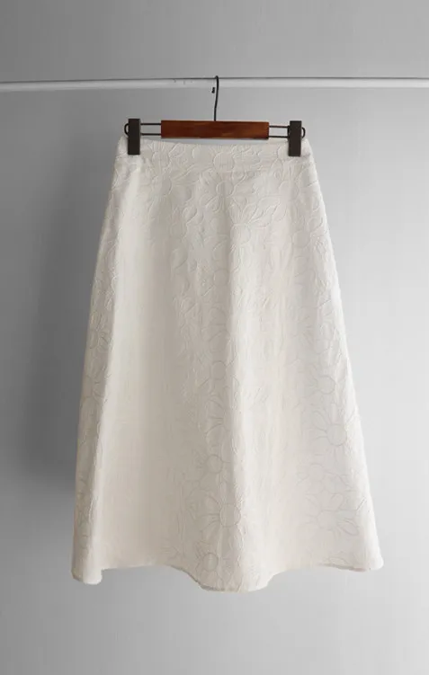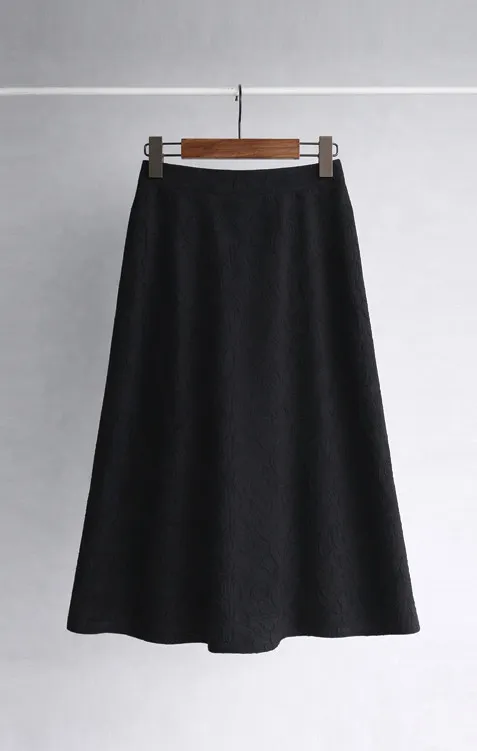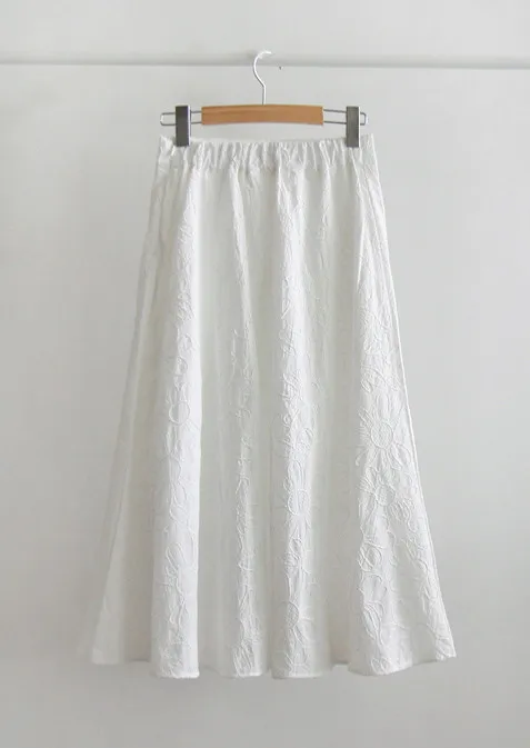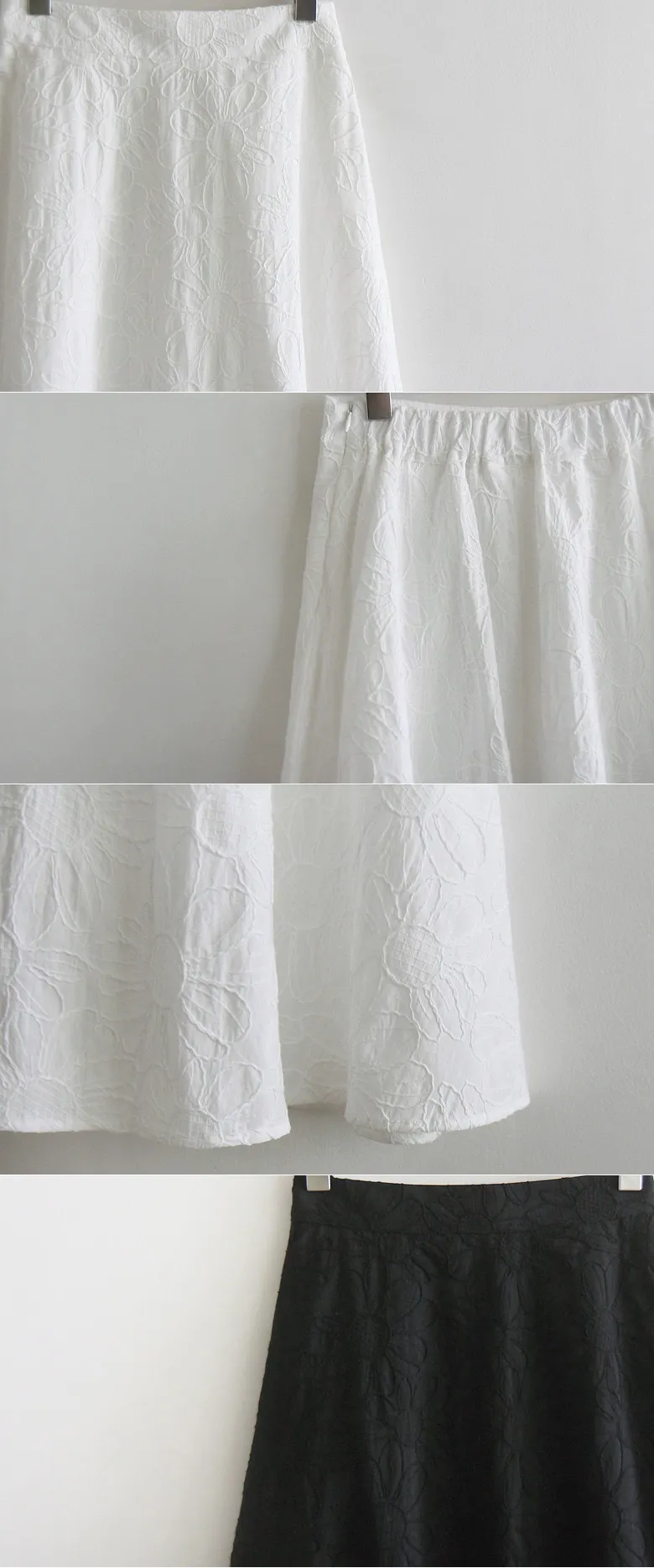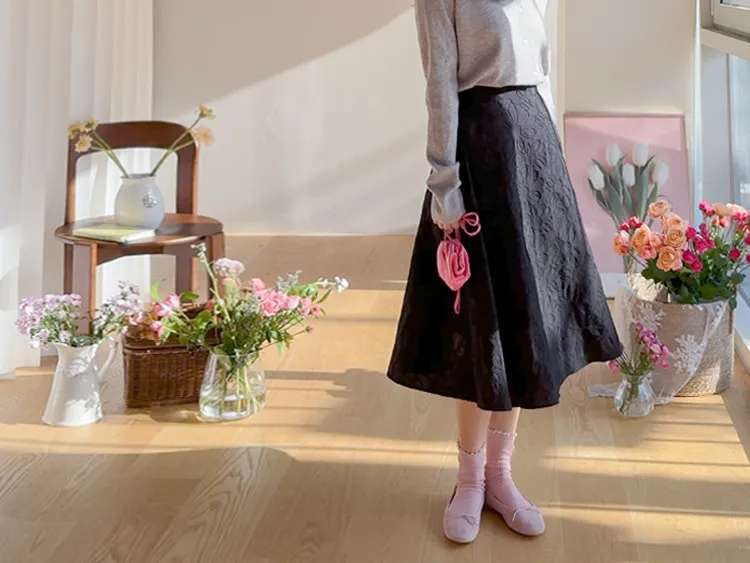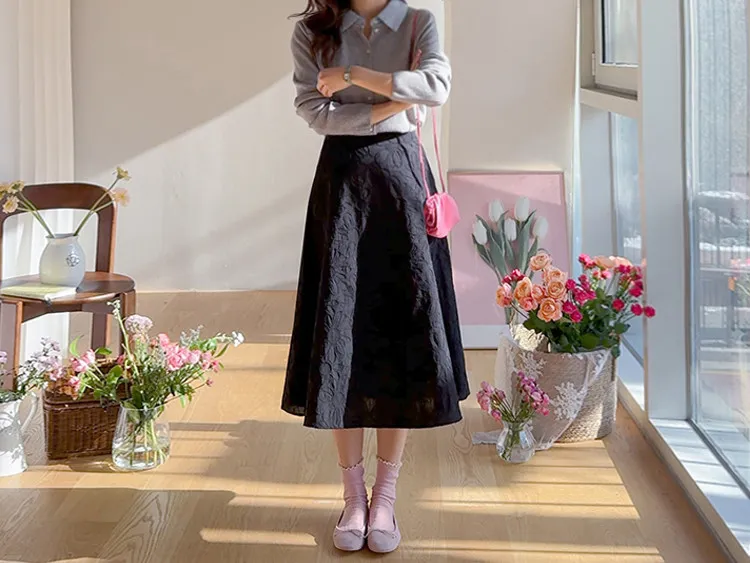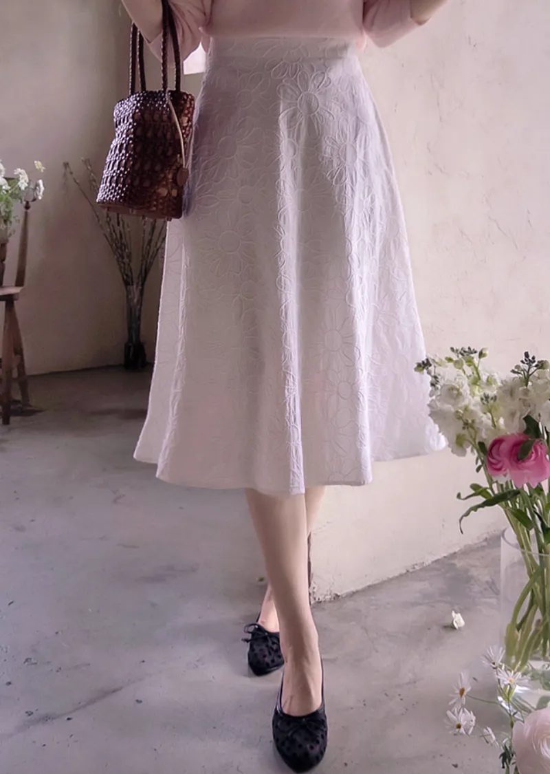 【奢華裙子♥,立體緹花圖案】【自然散開的傘擺裙擺】【顯瘦下半身效果】【舒適的後腰鬆緊帶】