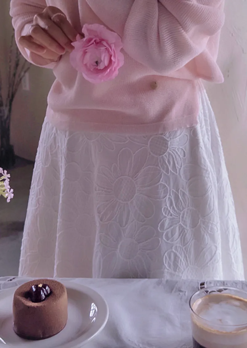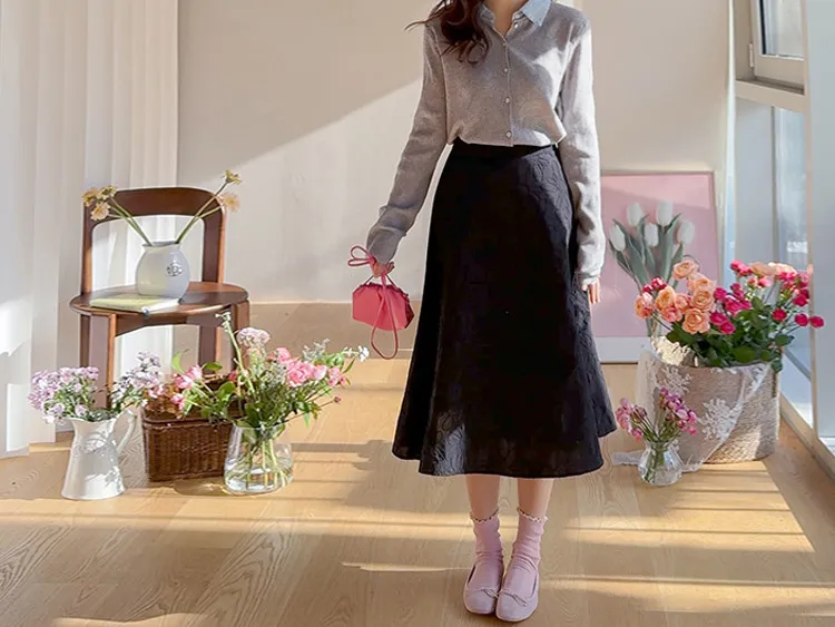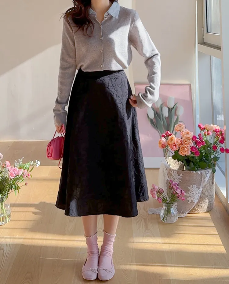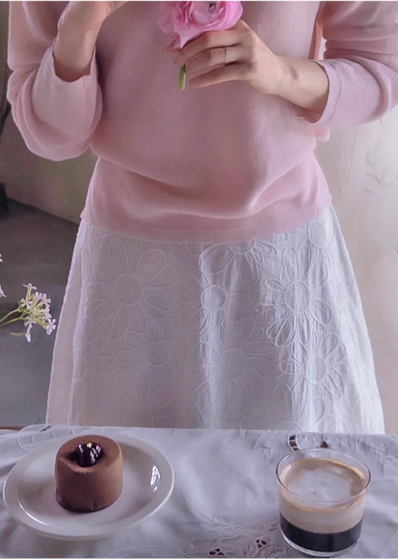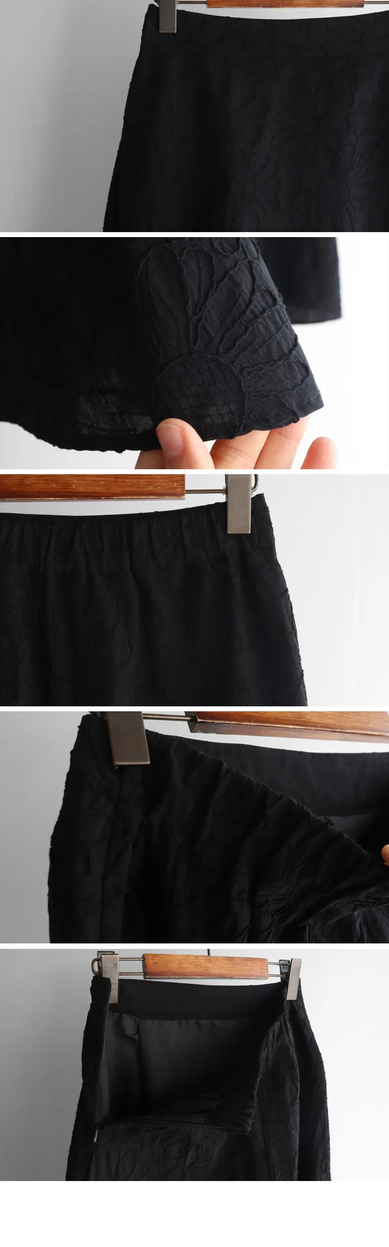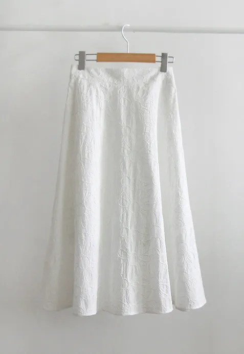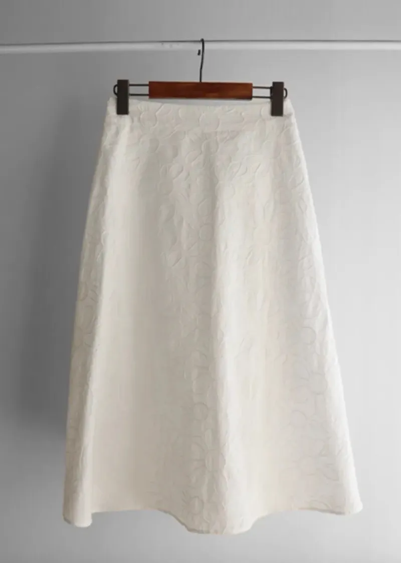 【奢華裙子♥,立體緹花圖案】【自然散開的傘擺裙擺】【顯瘦下半身效果】【舒適的後腰鬆緊帶】
