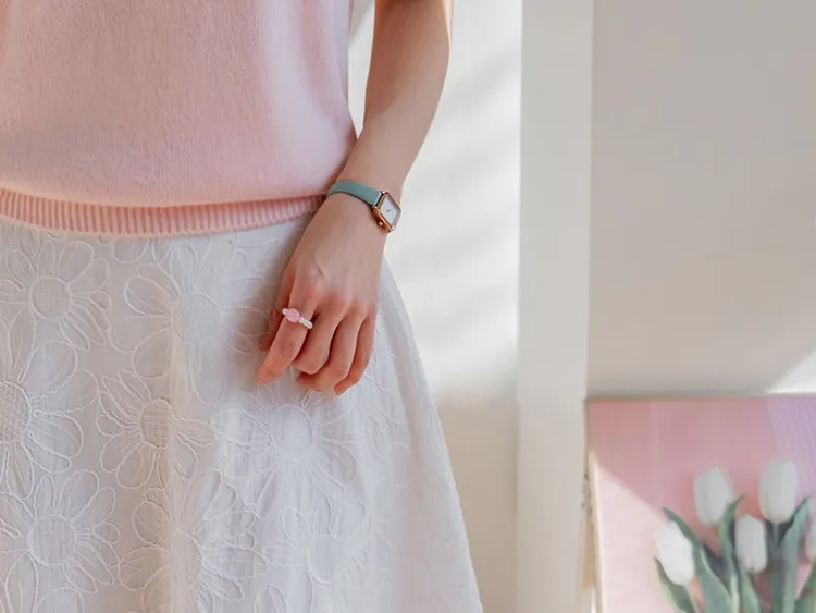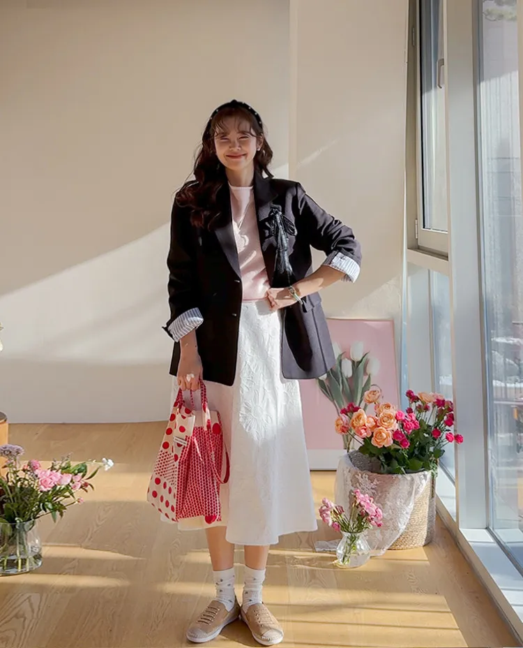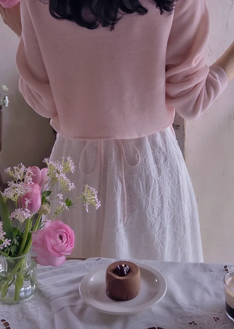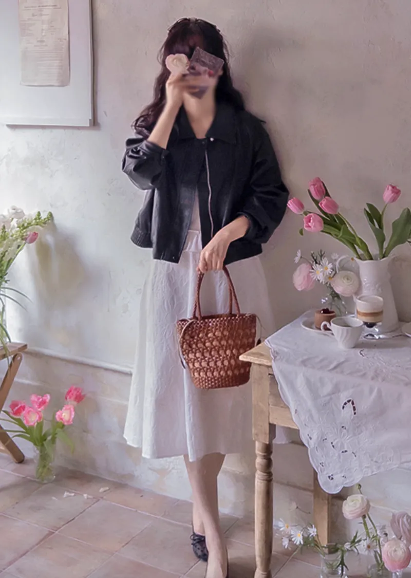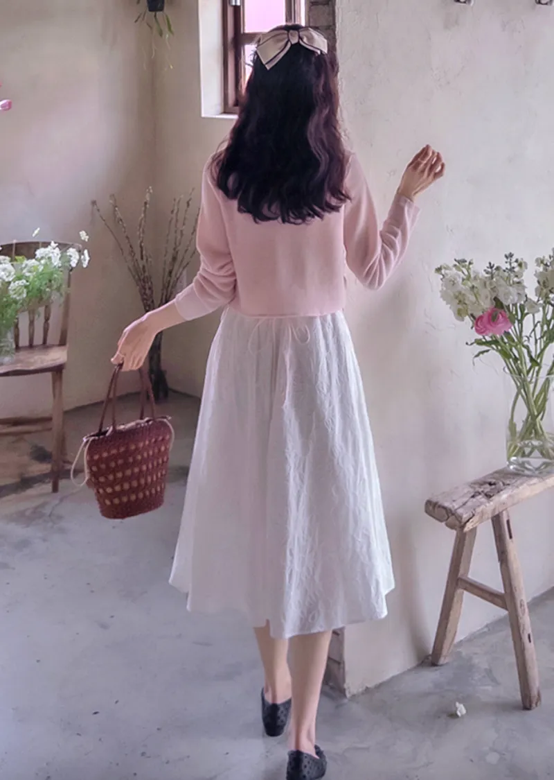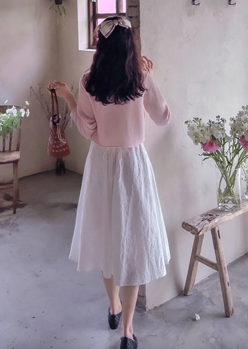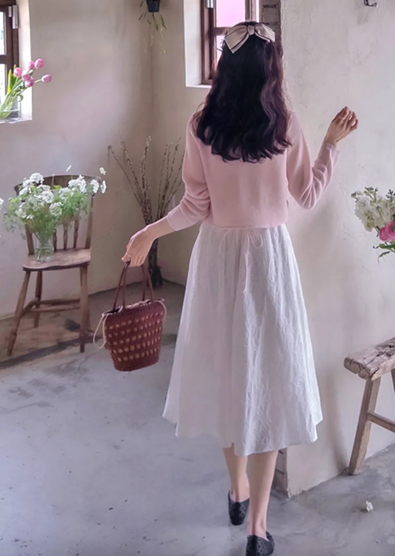 【奢華裙子♥,立體緹花圖案】【自然散開的傘擺裙擺】【顯瘦下半身效果】【舒適的後腰鬆緊帶】