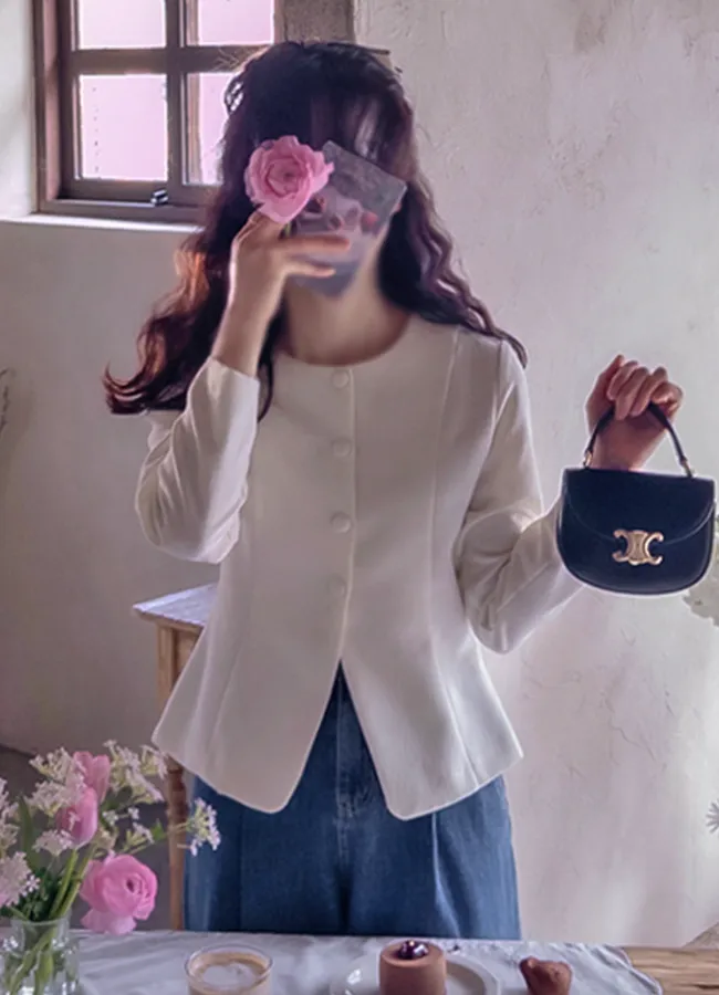 精緻優雅金色鈕扣和口袋設計花呢外套