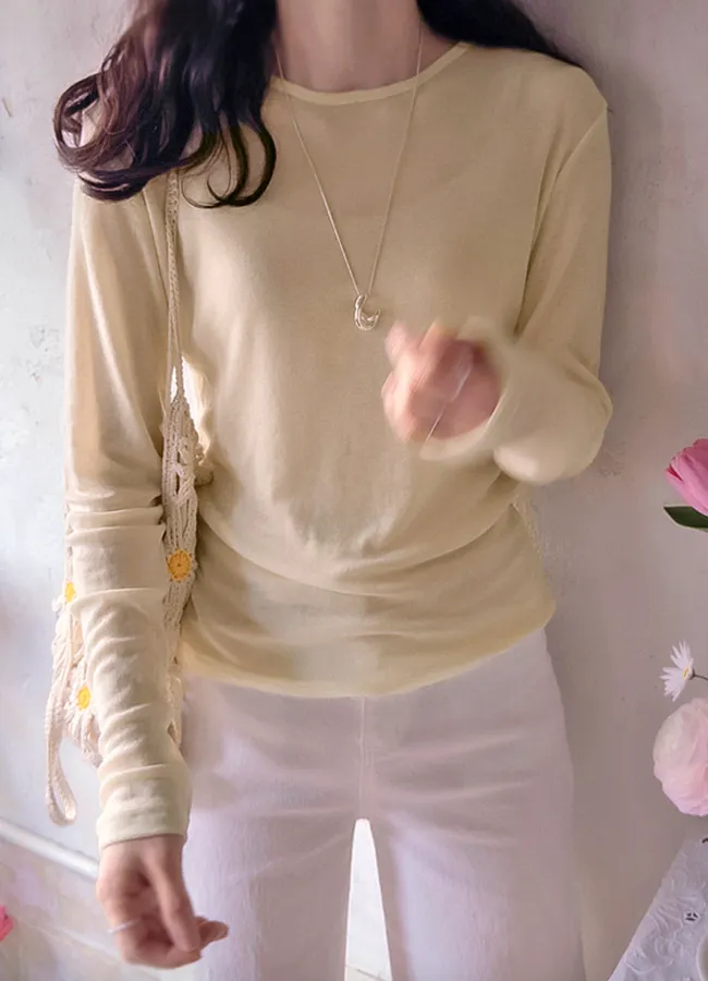 柔美簡約前側裹身綁帶飄逸排扣上衣