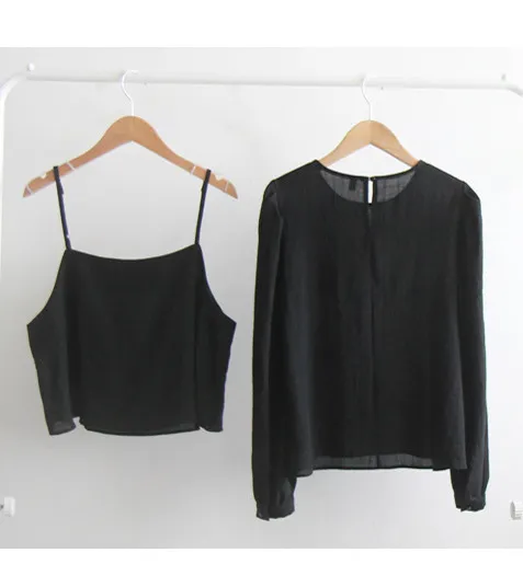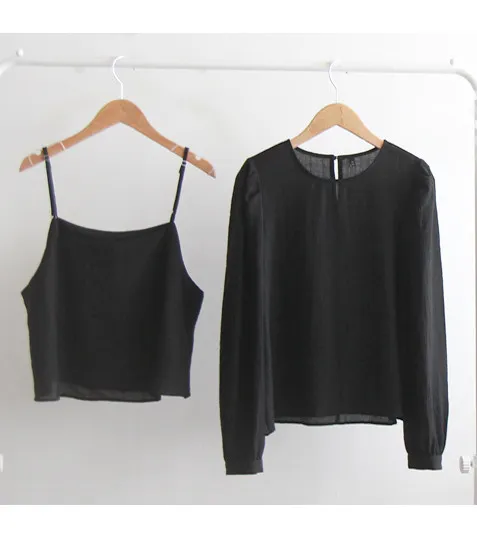 春日柔美層疊背心和上衣的套裝