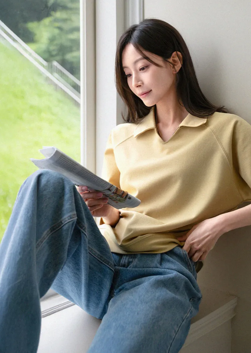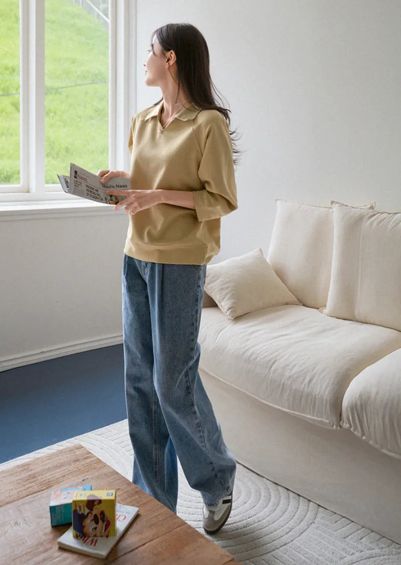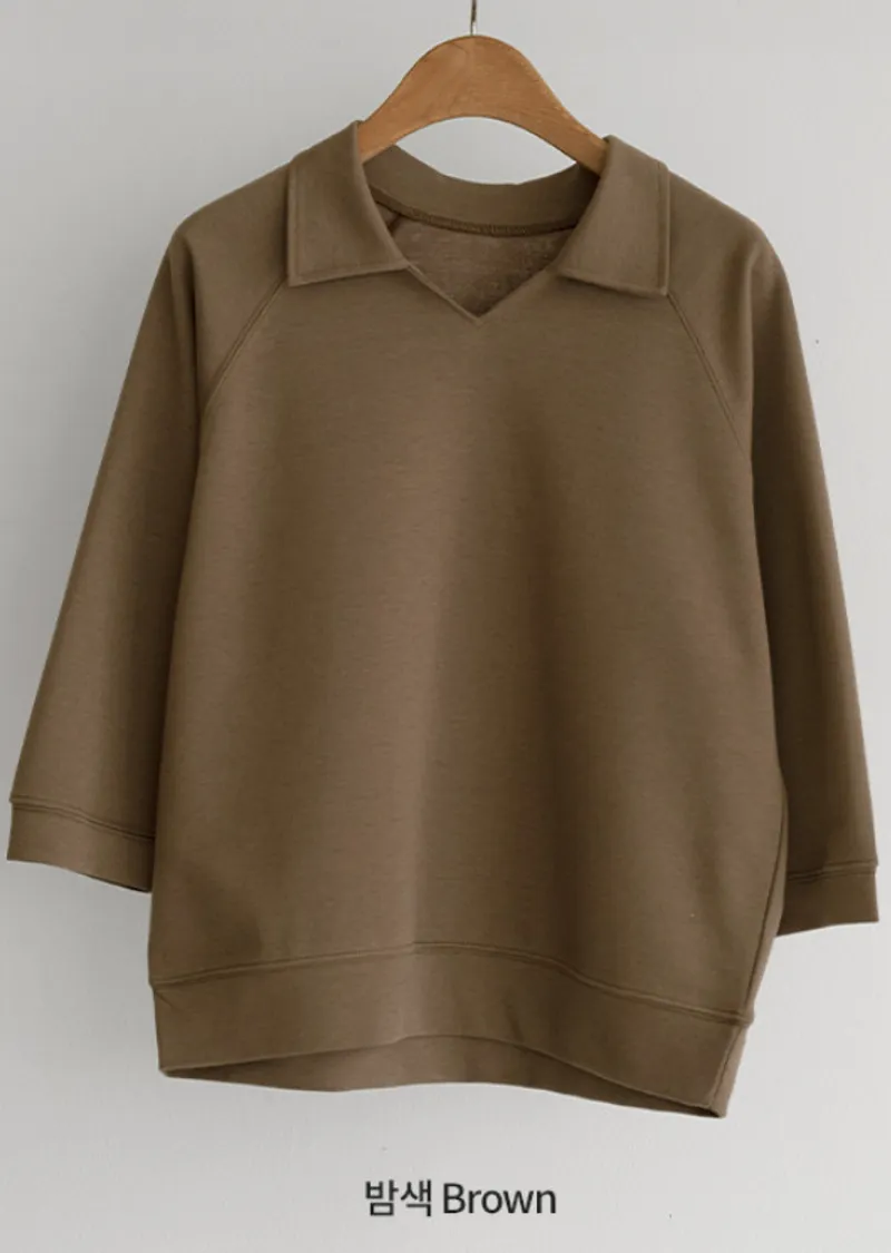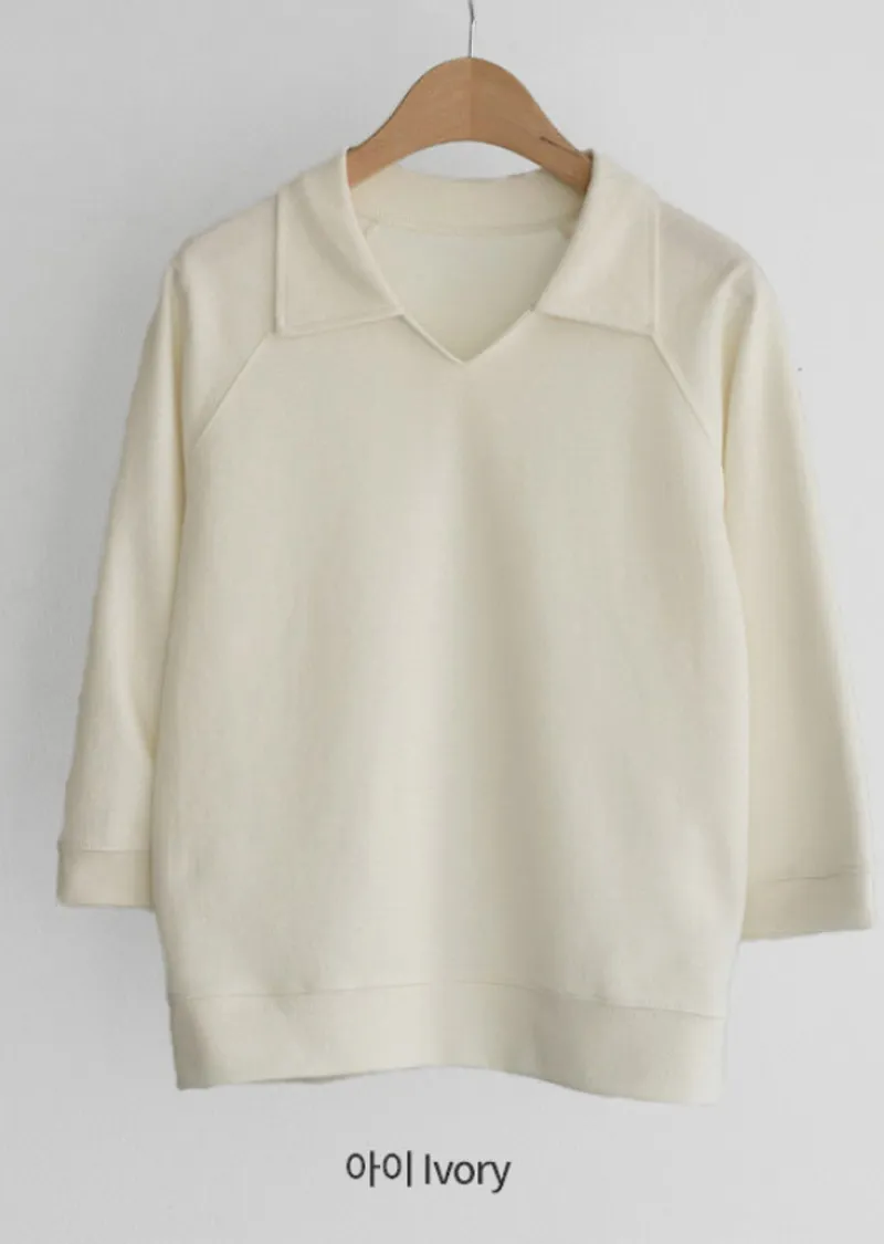 小V領七分袖上衣