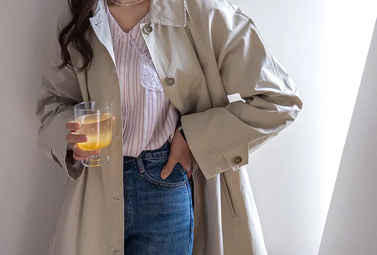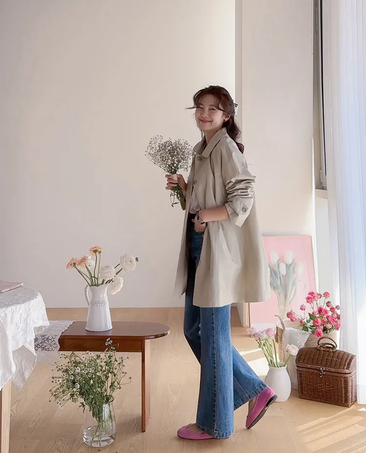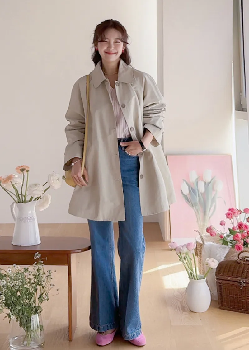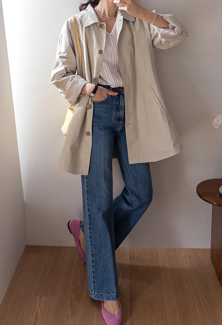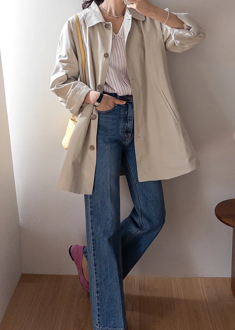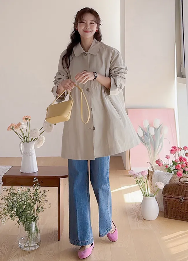 柔和細膩輪廓連肩袖A字廓形後側褶襉風衣外套