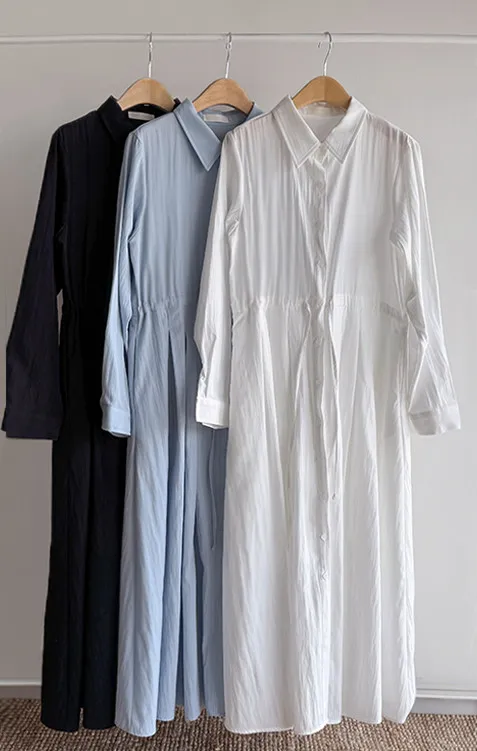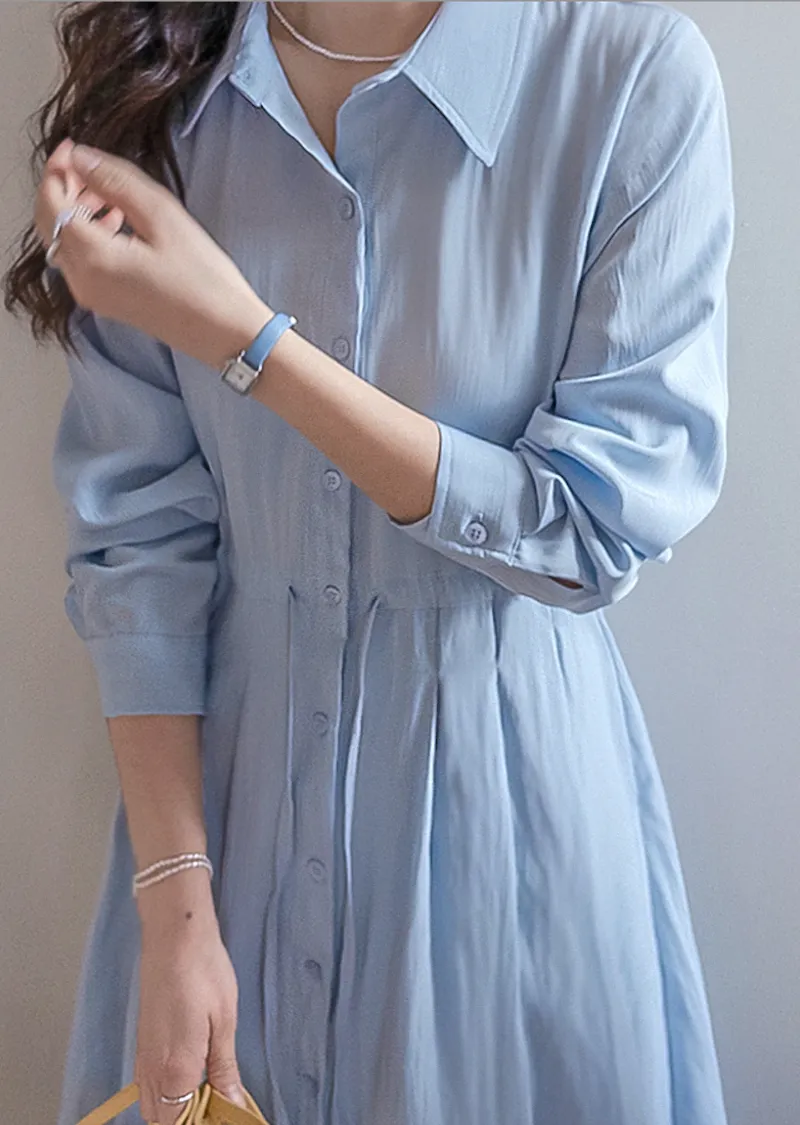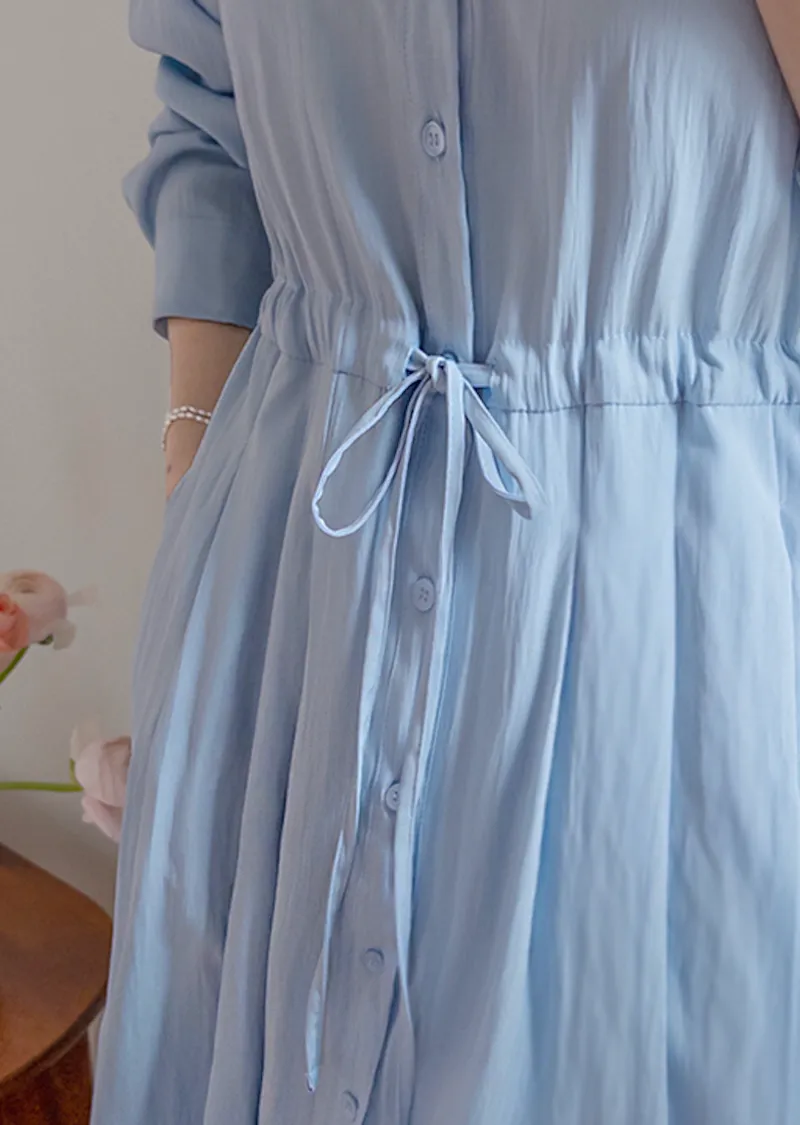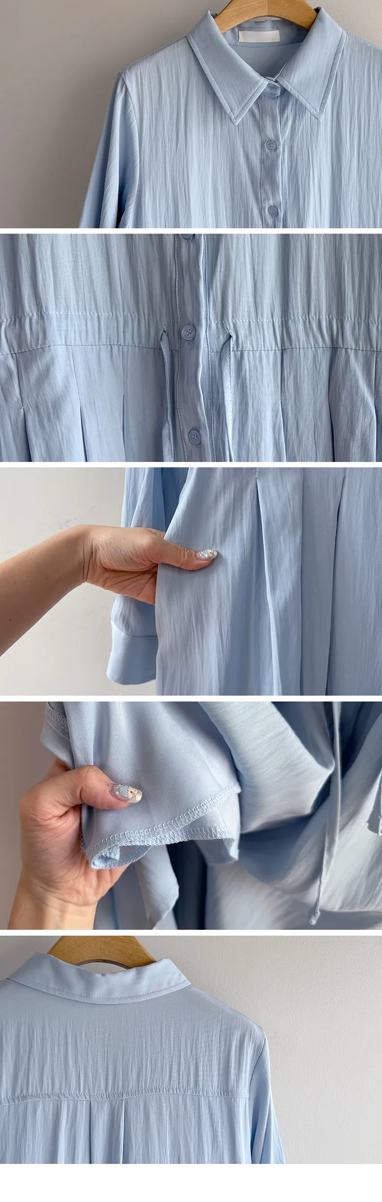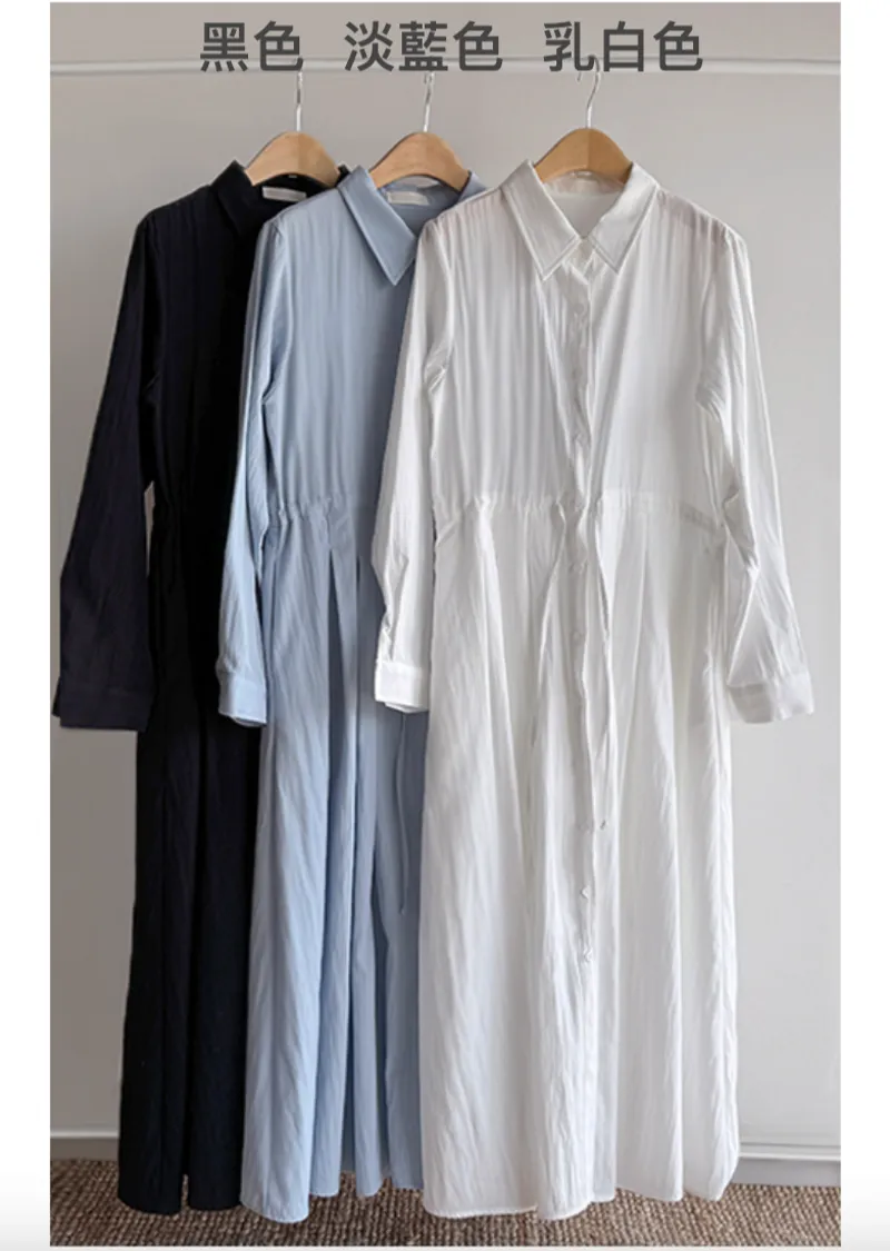 【高品質設計,襯衫細節+褶襉設計】【腰部抽繩可調尺寸】【A字裙擺】【簡潔又不失女性柔美氛圍】