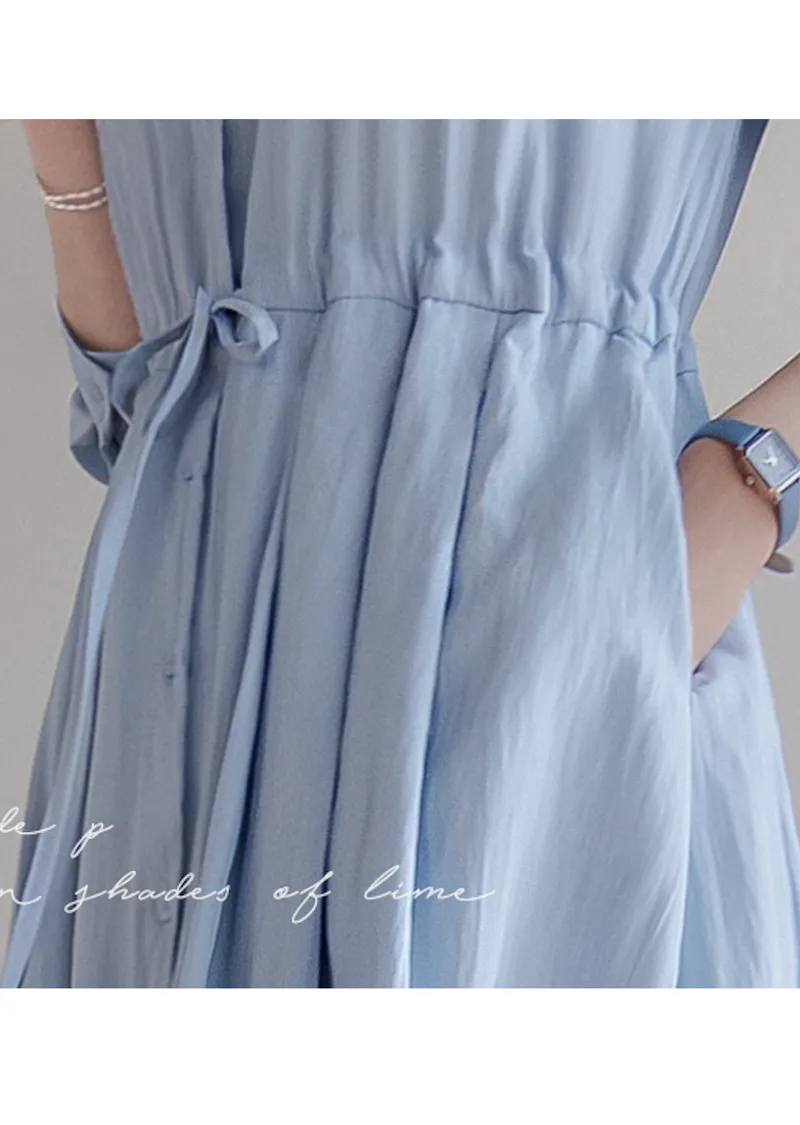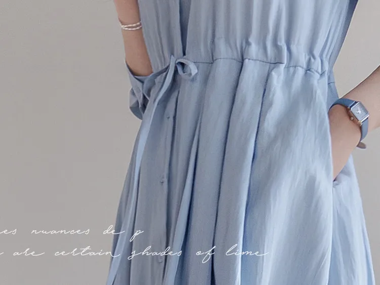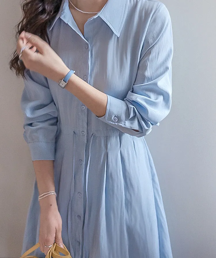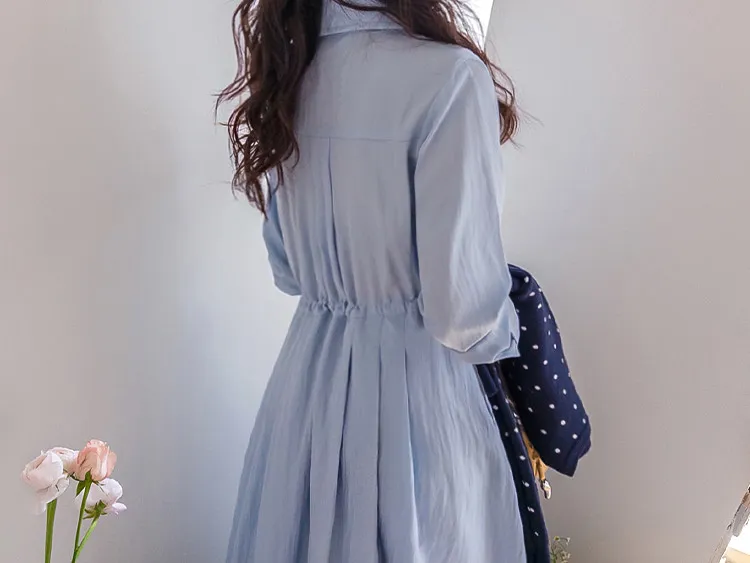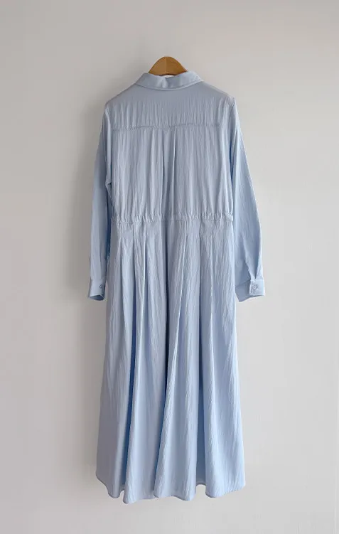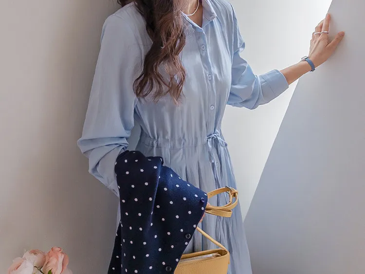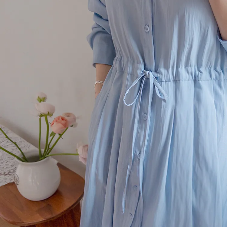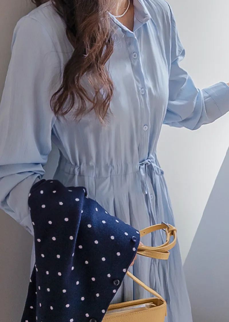 【高品質設計,襯衫細節+褶襉設計】【腰部抽繩可調尺寸】【A字裙擺】【簡潔又不失女性柔美氛圍】