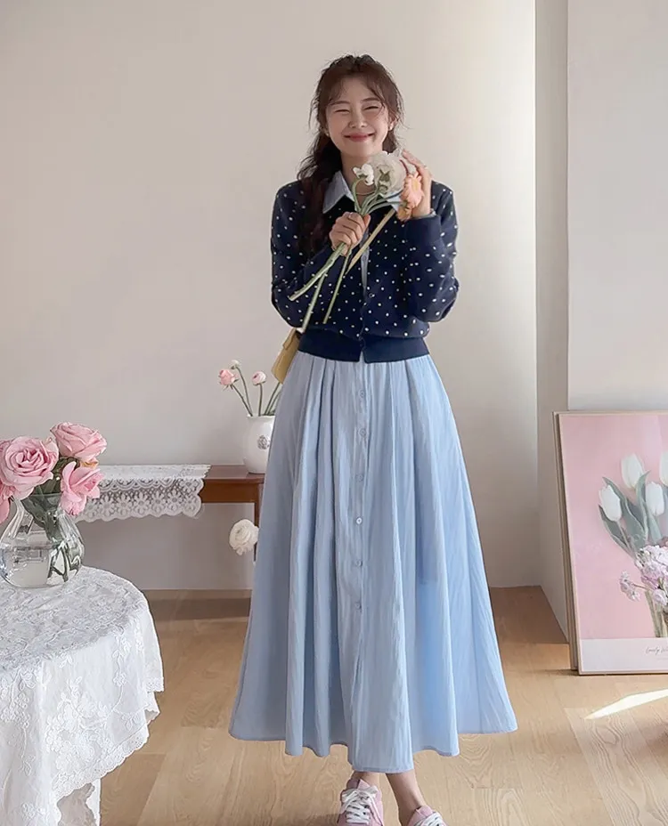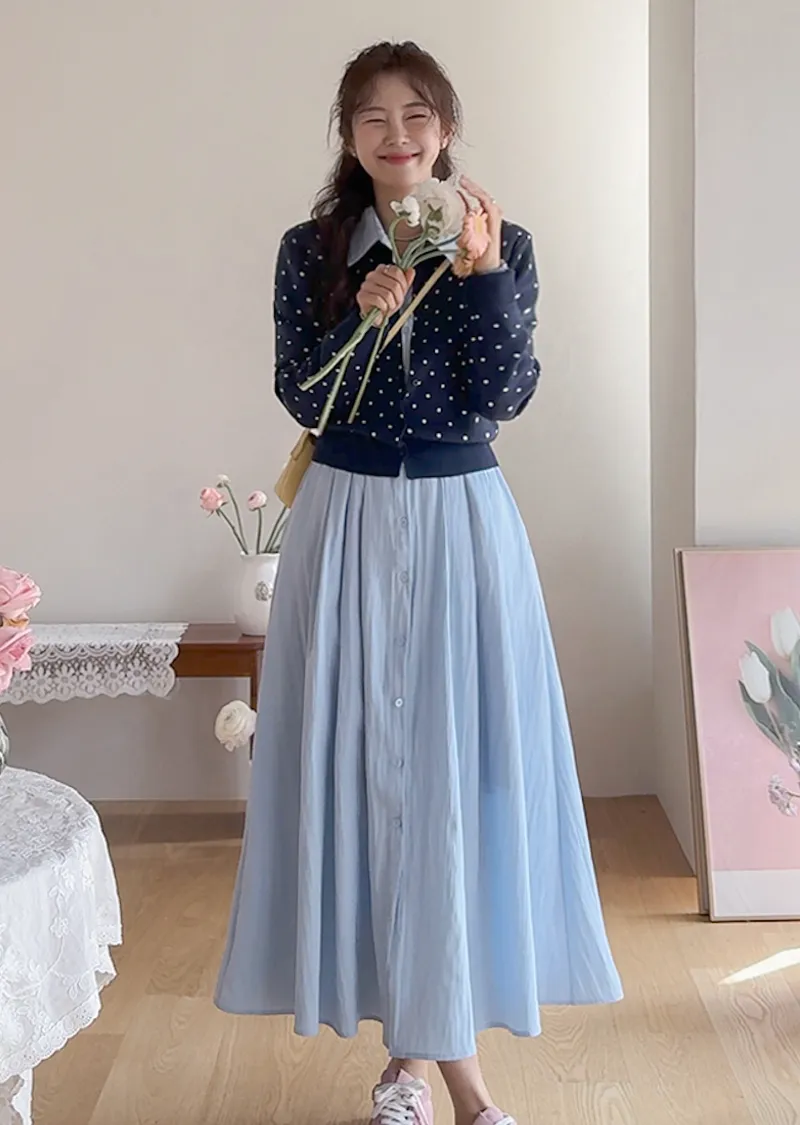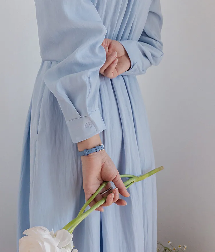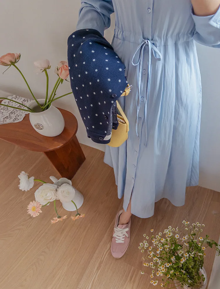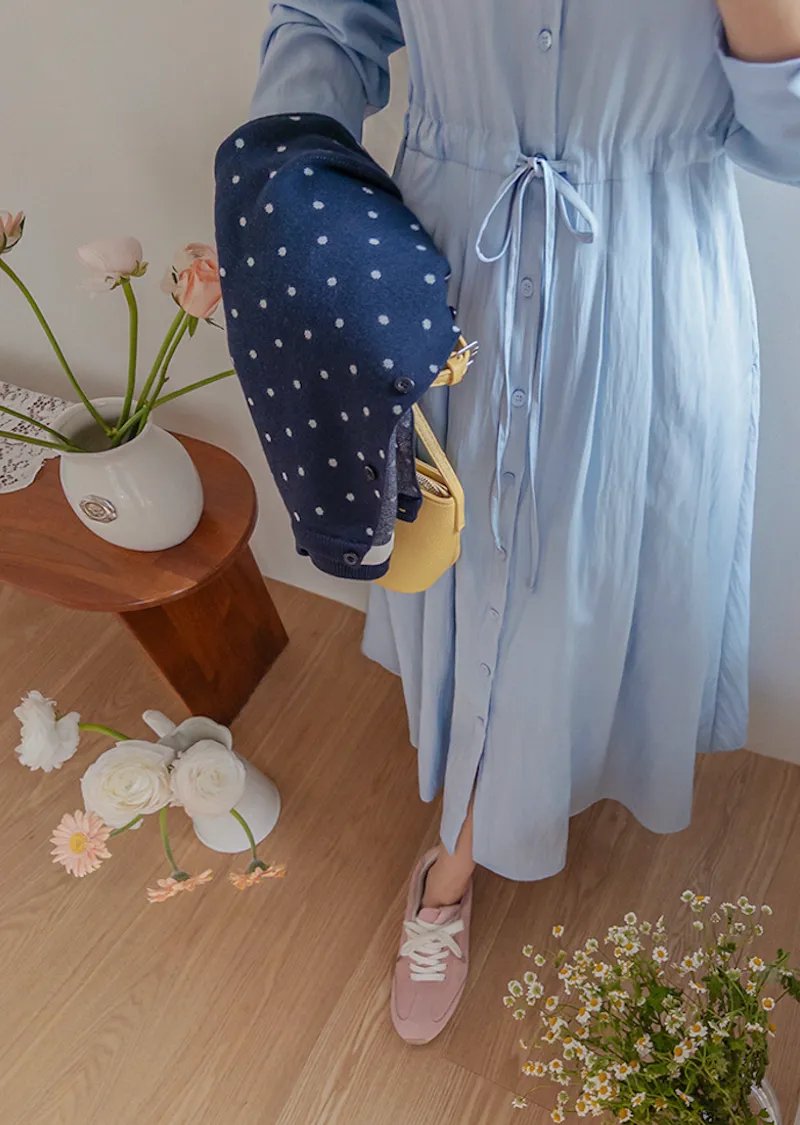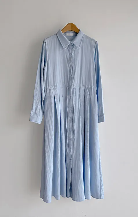【高品質設計,襯衫細節+褶襉設計】【腰部抽繩可調尺寸】【A字裙擺】【簡潔又不失女性柔美氛圍】