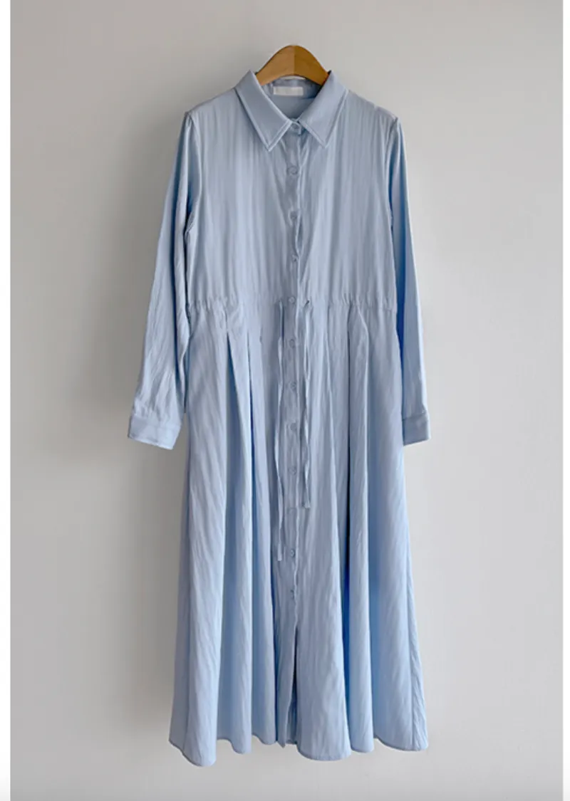 優雅氛圍襯衫式綁帶收腰A字褶襉裙擺連身裙