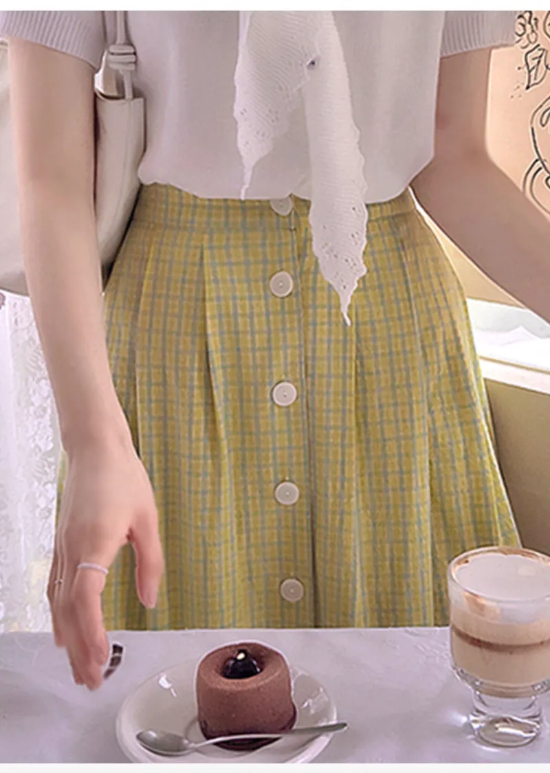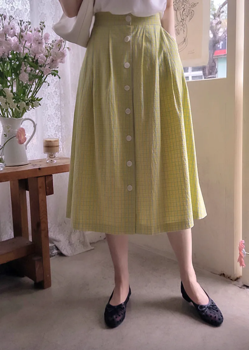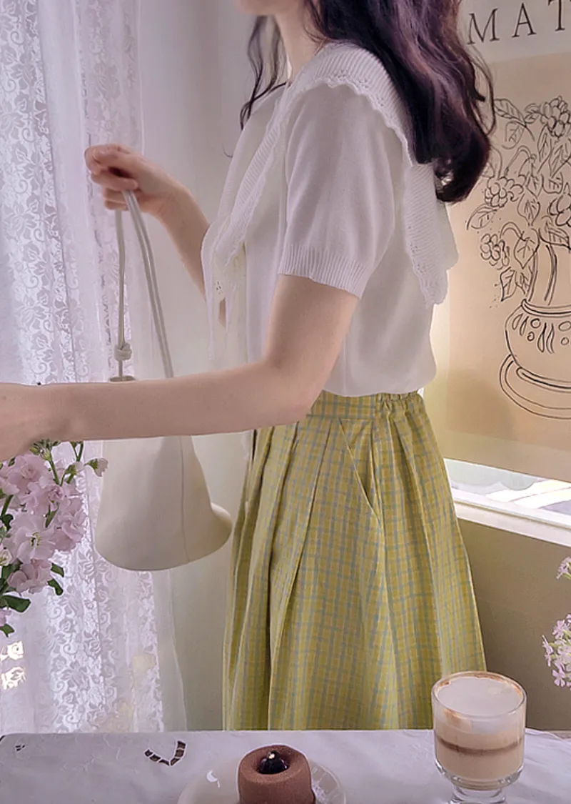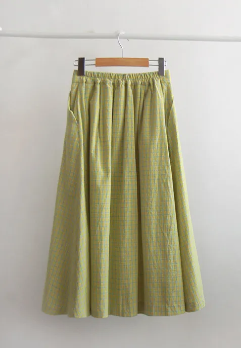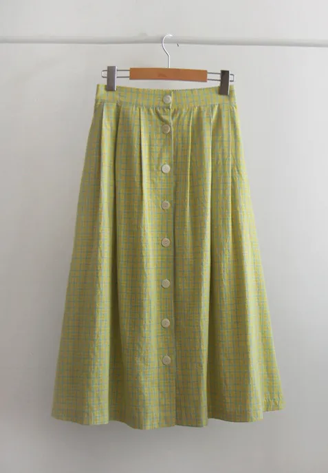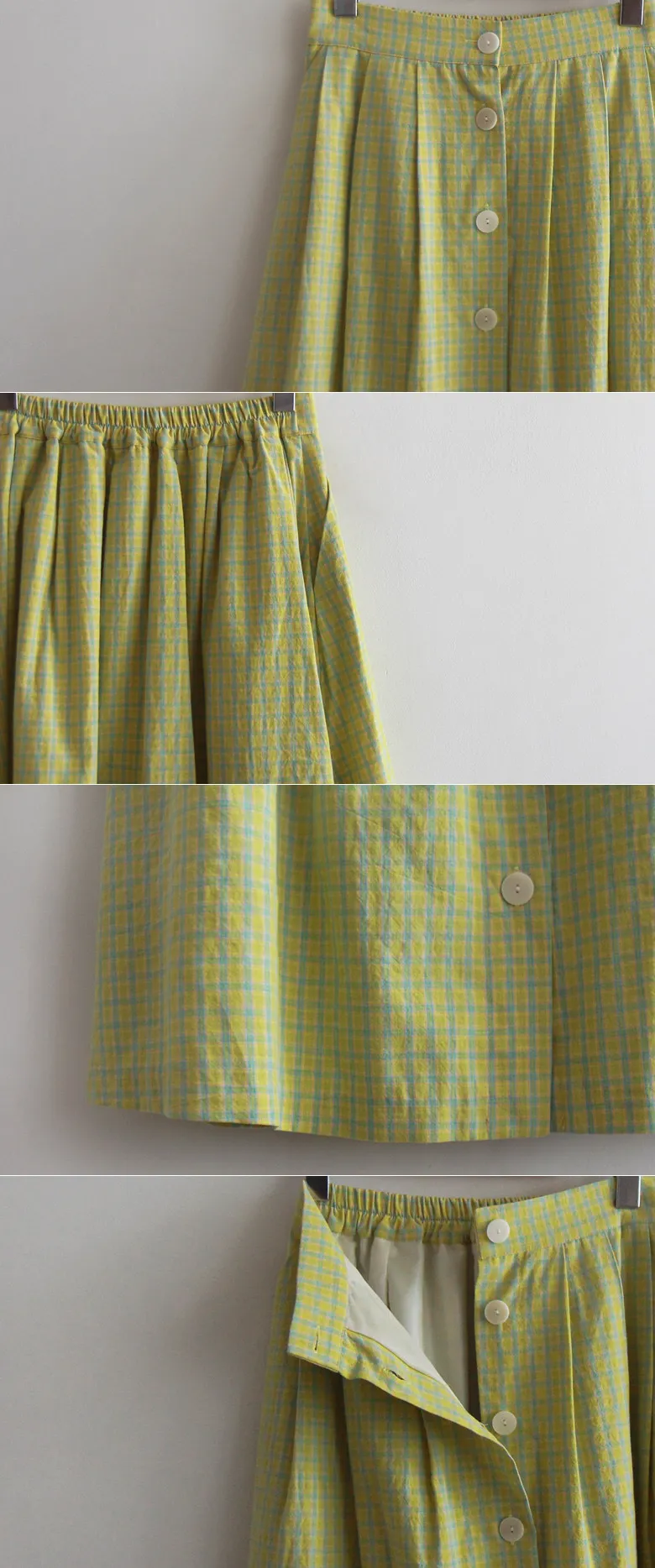 材質:100% 棉【聚酯內襯】【後腰鬆緊帶】【連結鈕扣閉合】【亮麗可愛的修身半身裙,春夏完美之選】【精緻格紋設計】【為您的穿搭增添活力,版型優美】【春夏必備的精緻格紋半身裙】