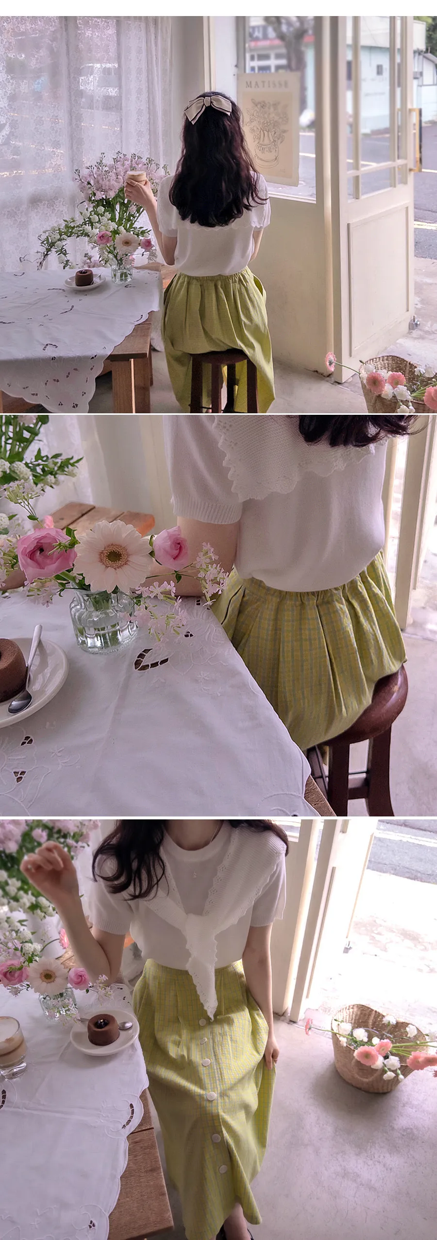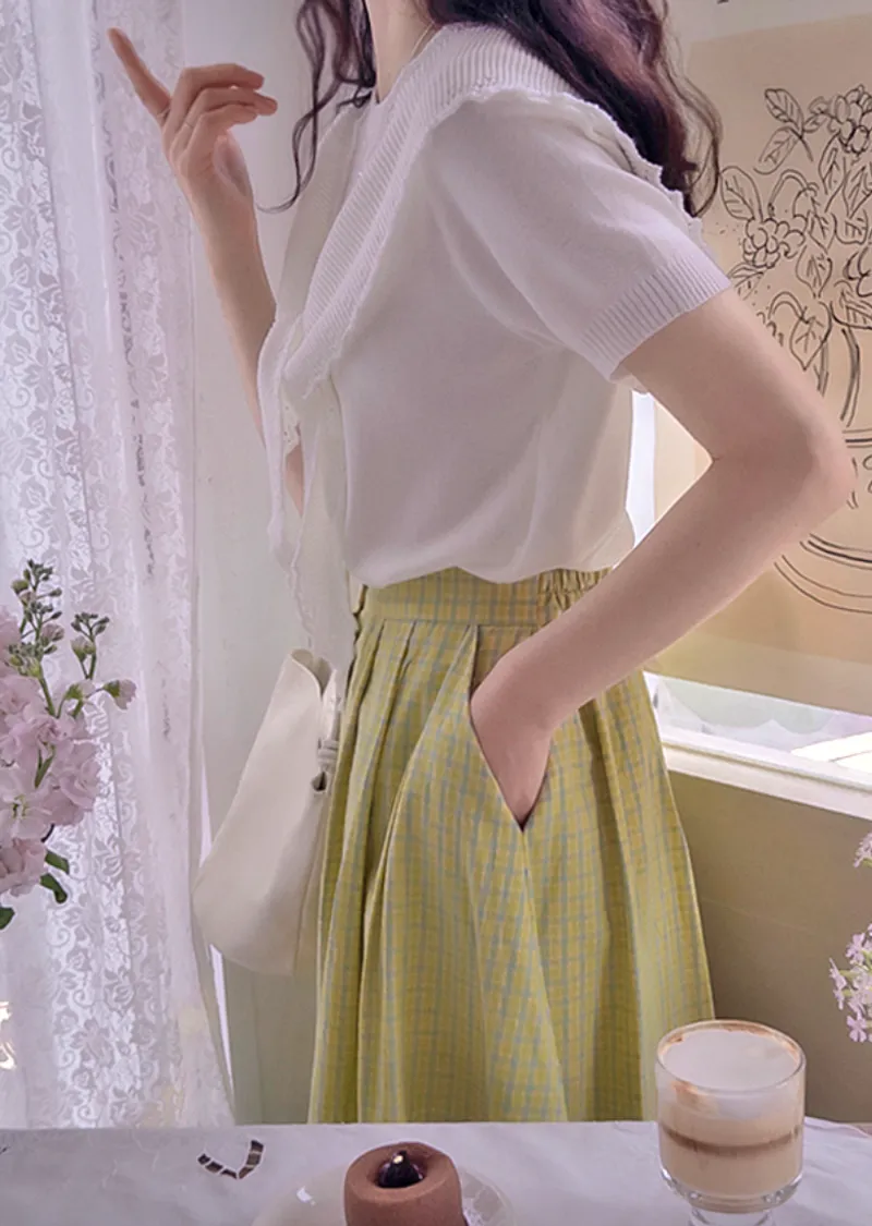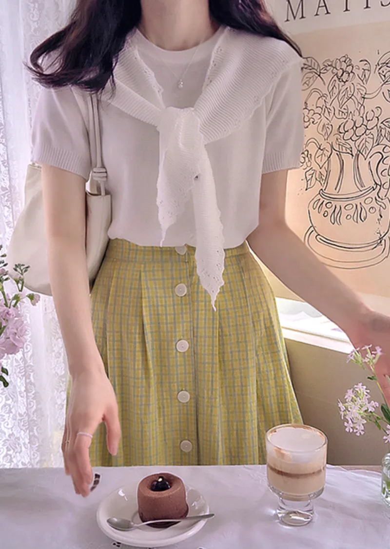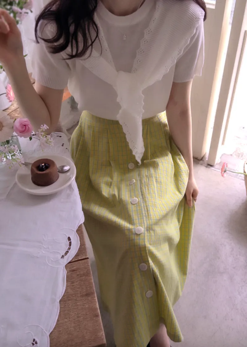 材質:100% 棉【聚酯內襯】【後腰鬆緊帶】【連結鈕扣閉合】【亮麗可愛的修身半身裙,春夏完美之選】【精緻格紋設計】【為您的穿搭增添活力,版型優美】【春夏必備的精緻格紋半身裙】