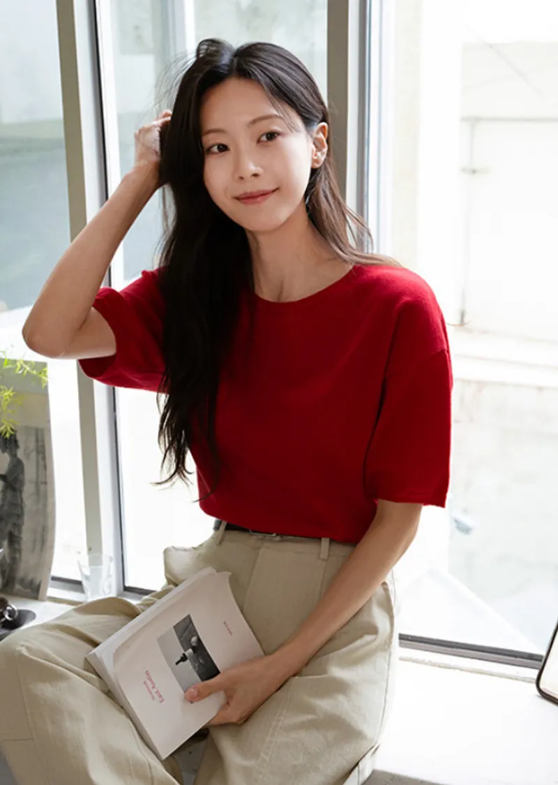 基本寬鬆輕薄針織短衫