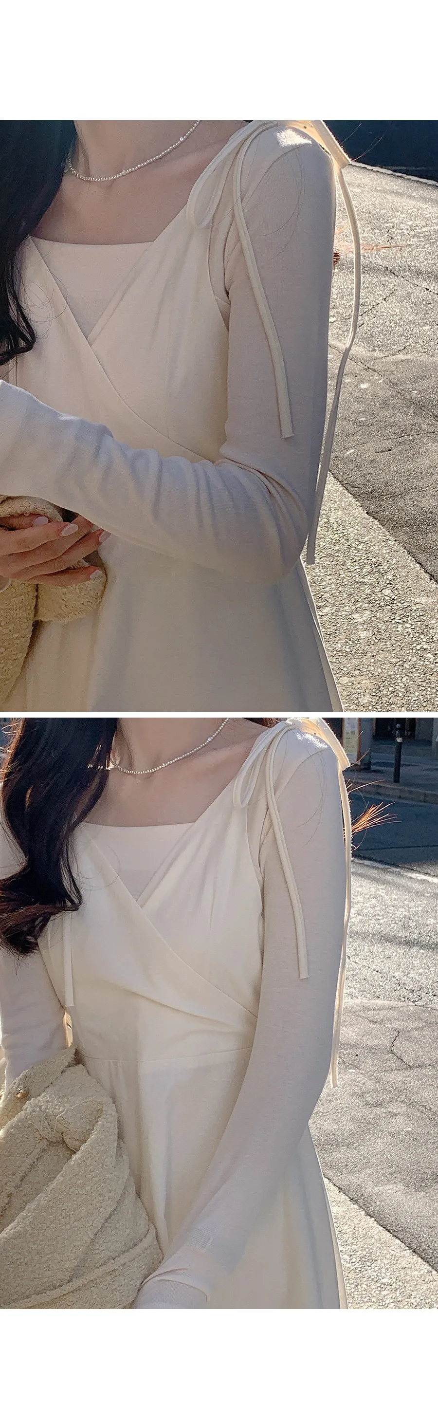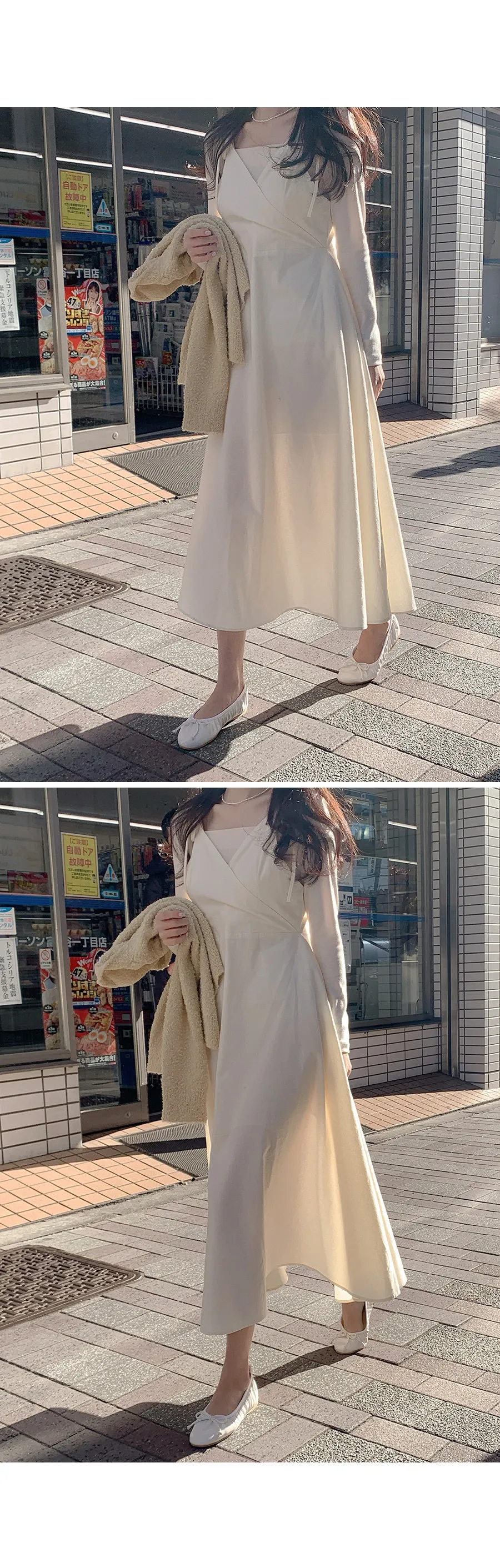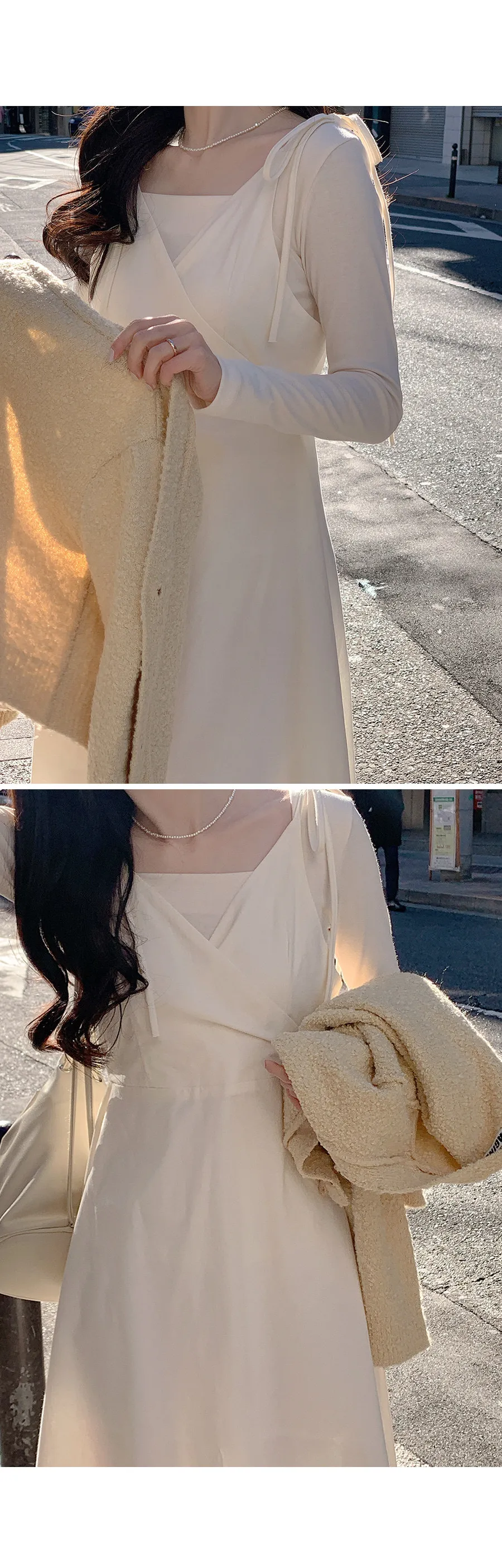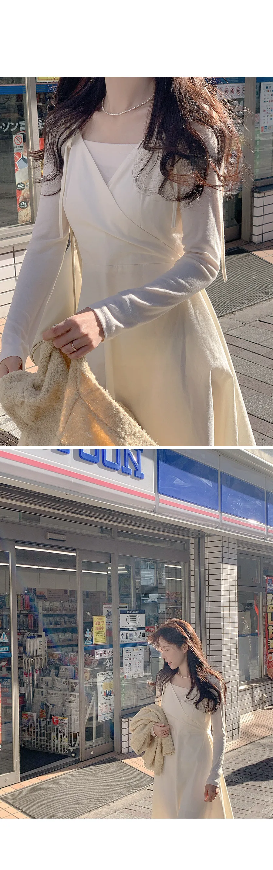 柔美氣息裹身式胸線肩綁帶傘襬裙連身裙