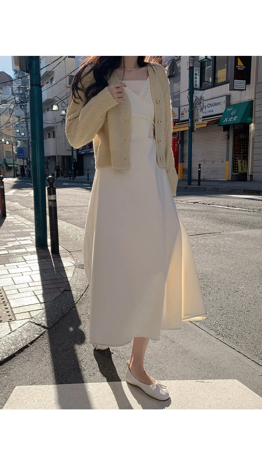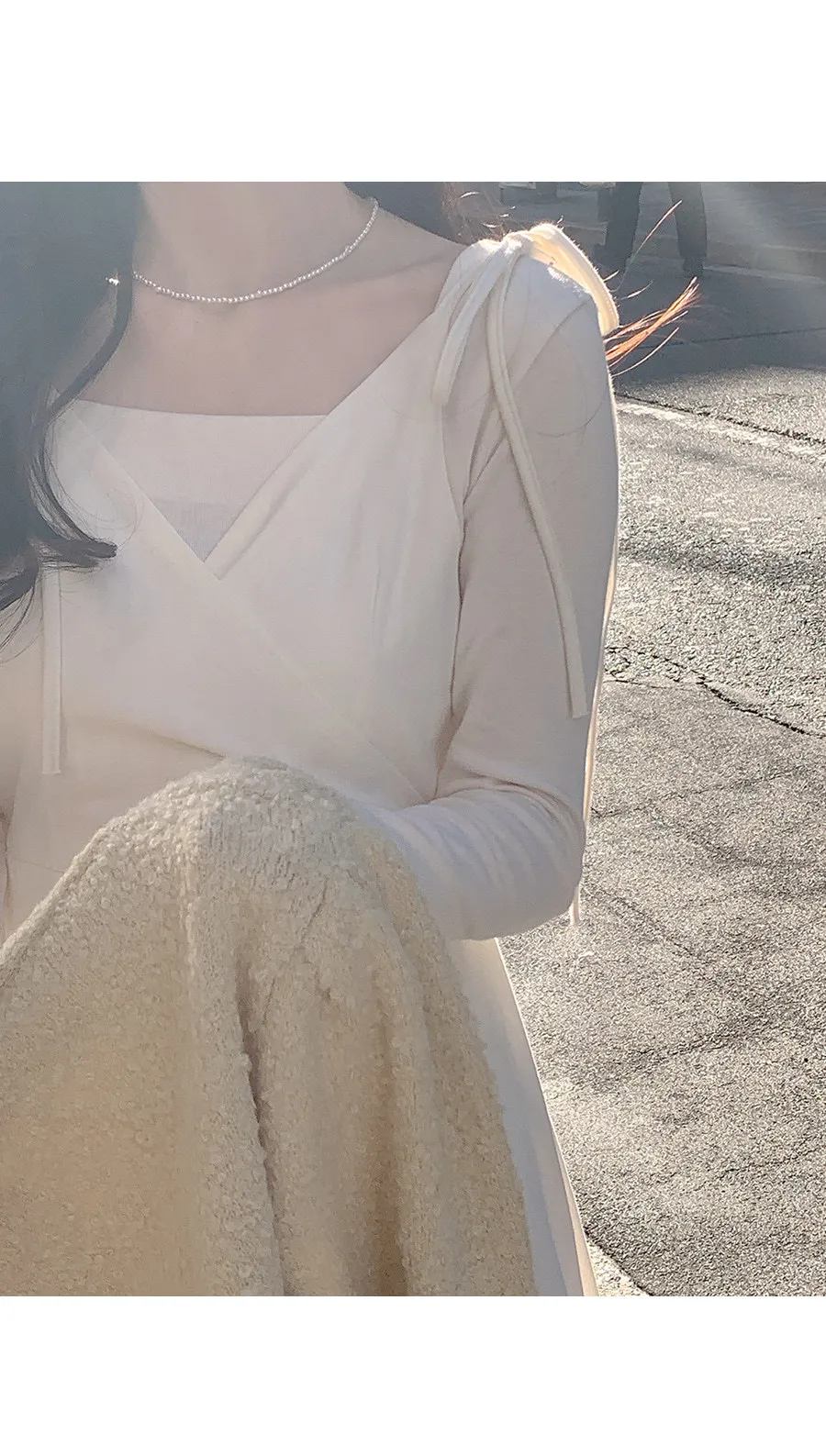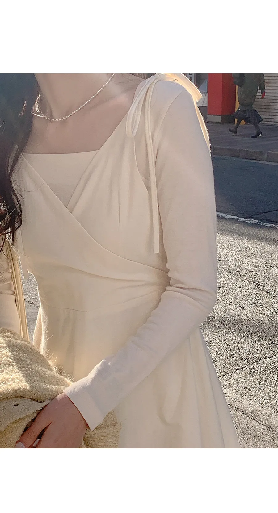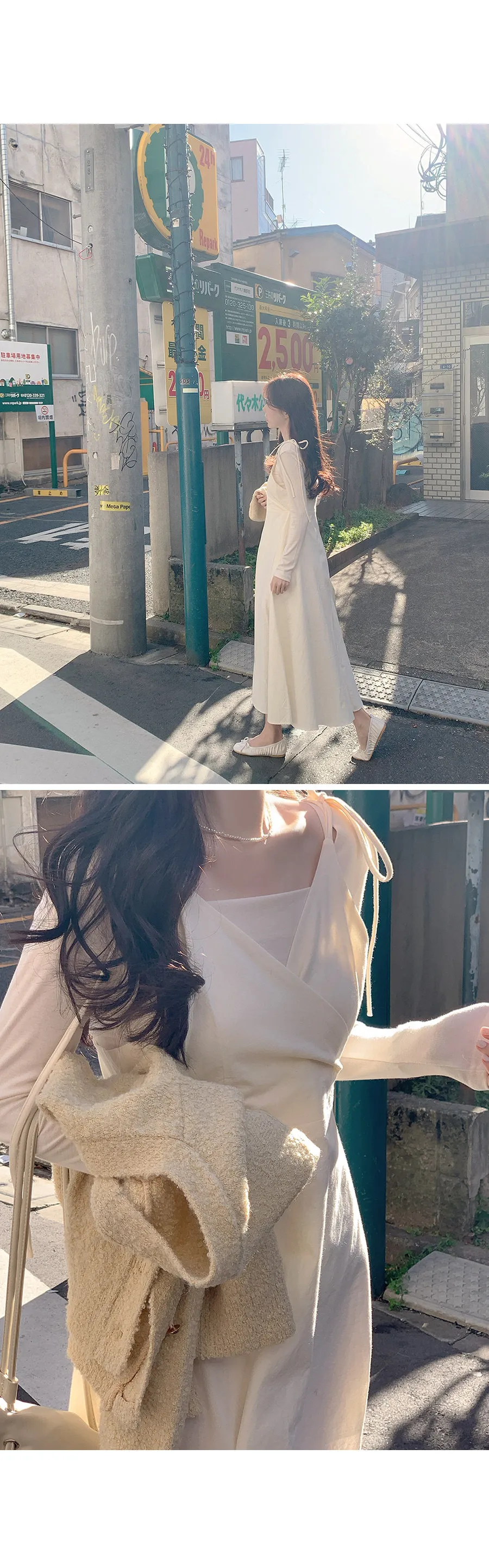 柔美氣息裹身式胸線肩綁帶傘襬裙連身裙