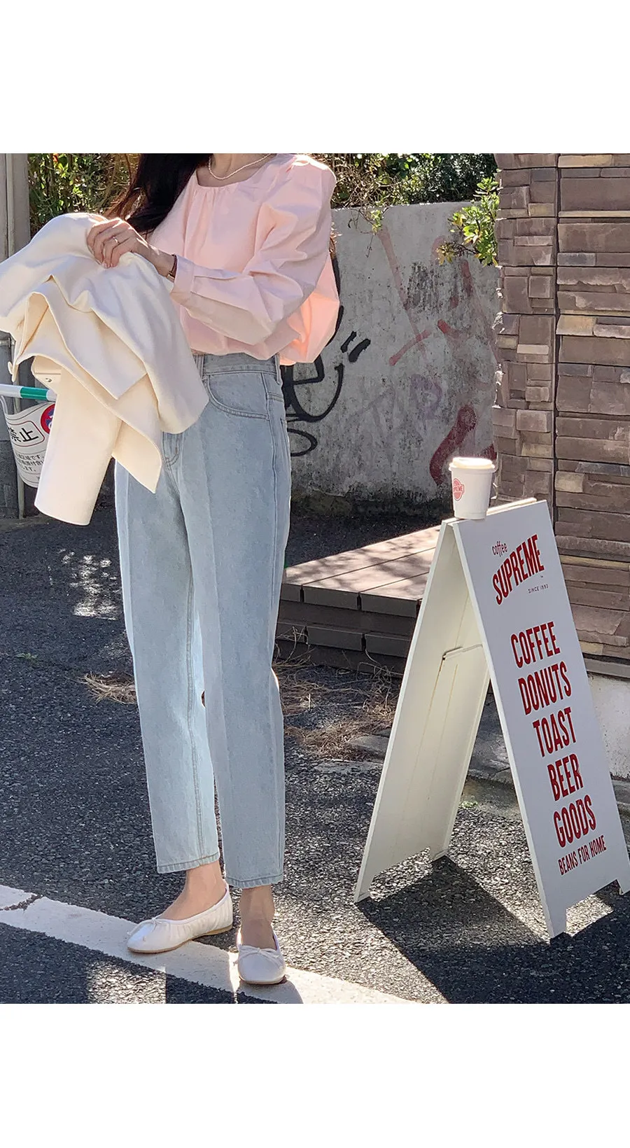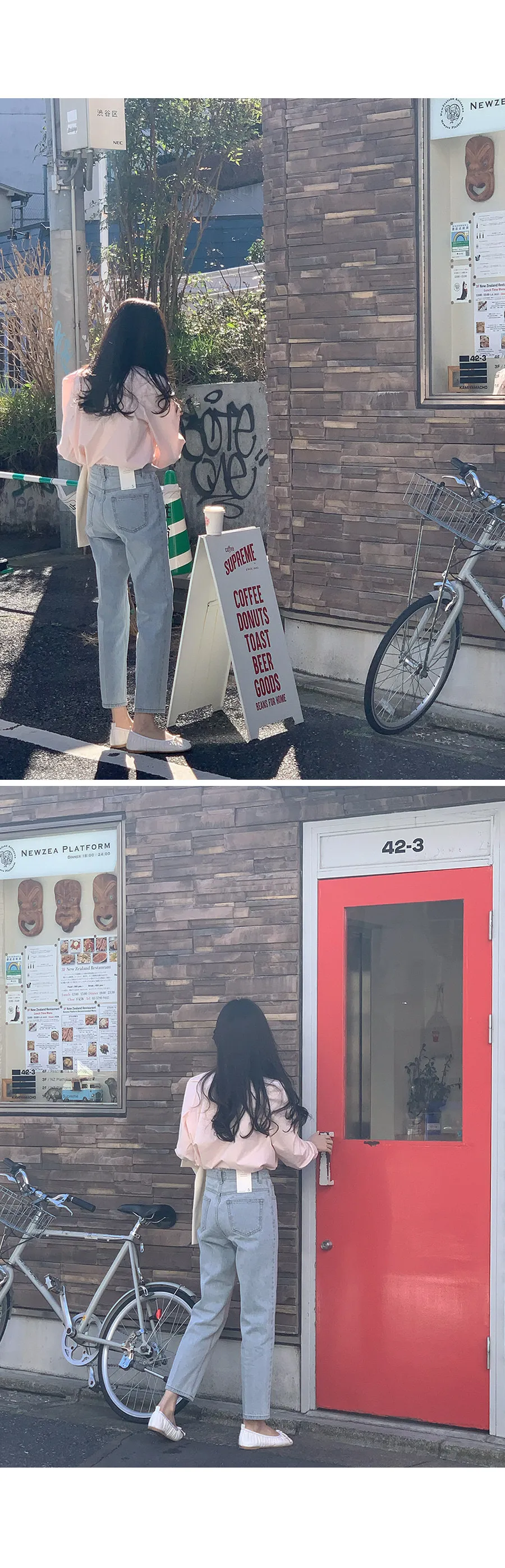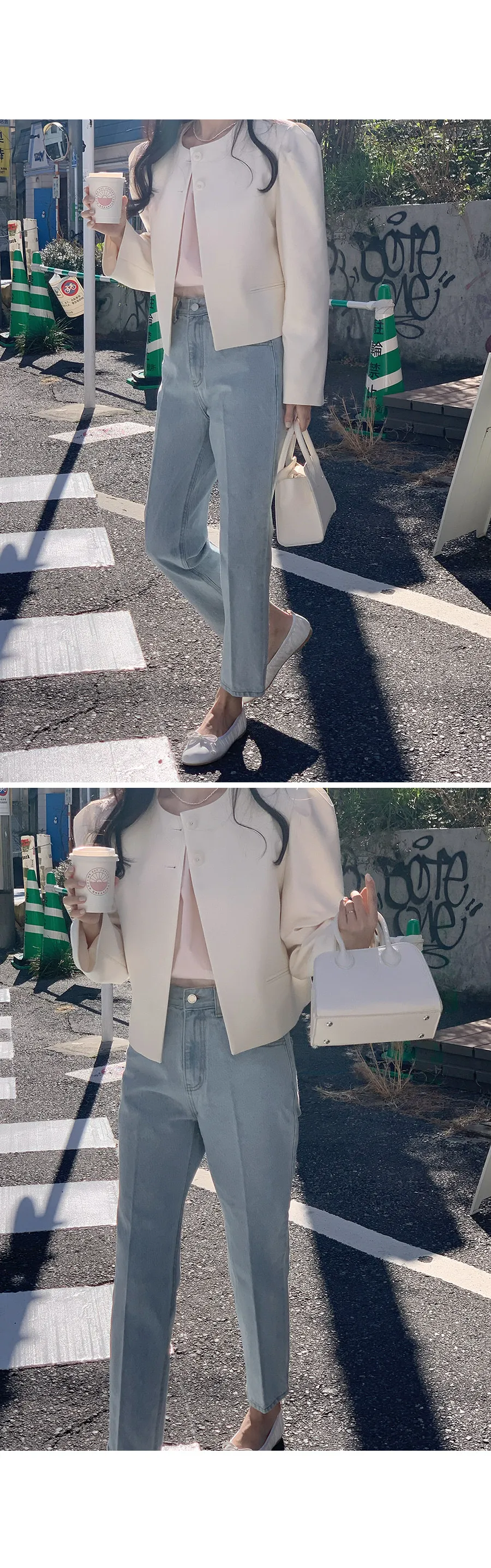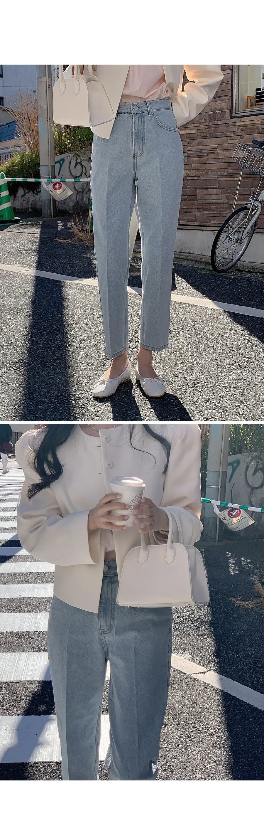 清澈明亮淺藍色直筒修身短版牛仔褲