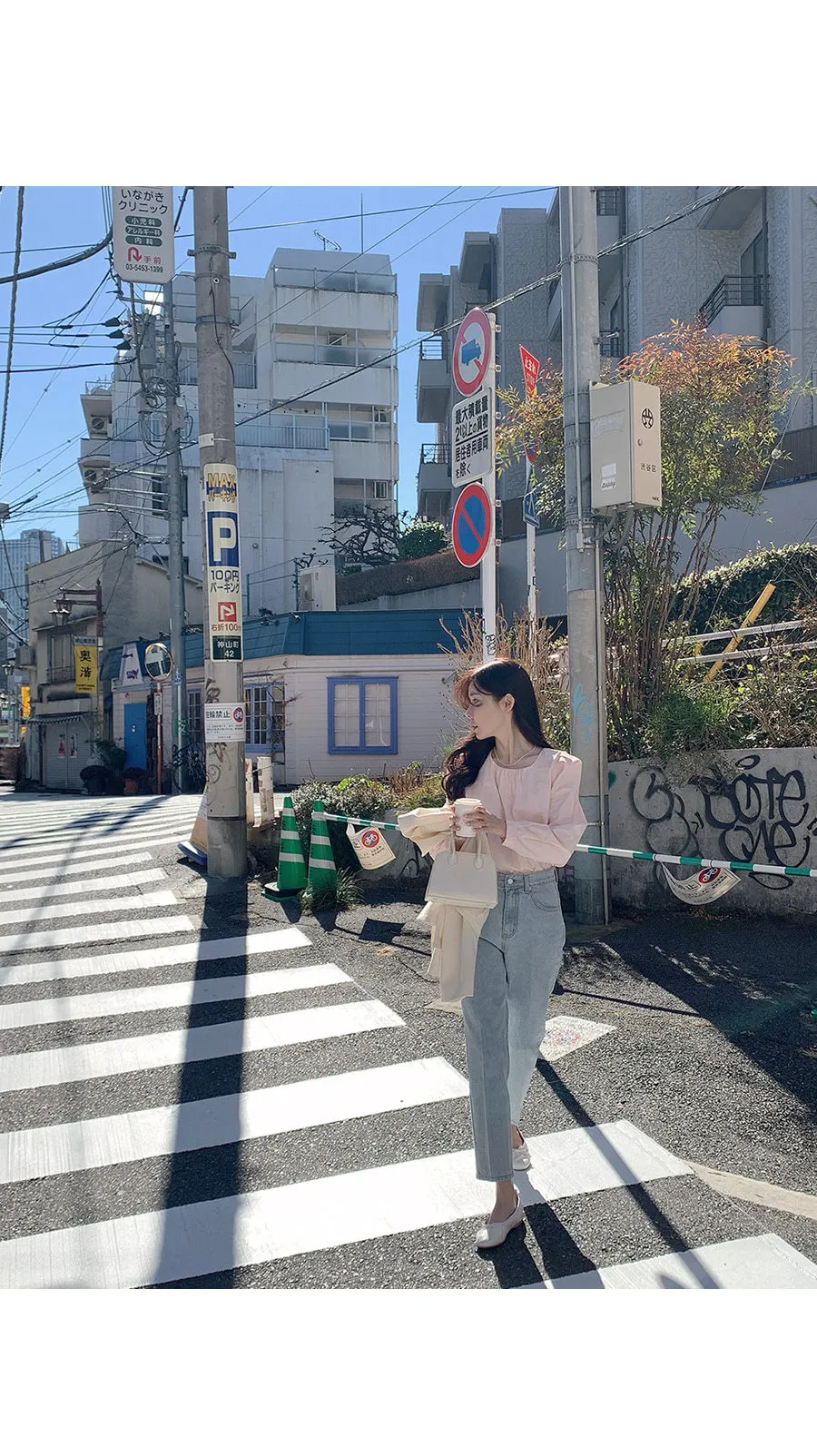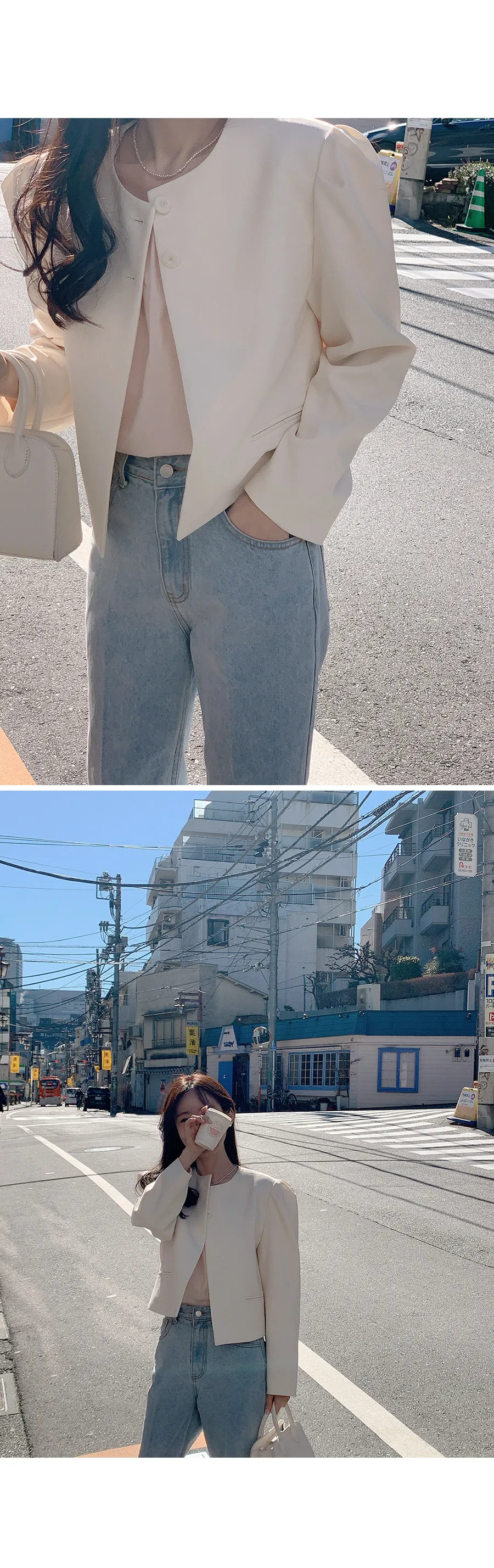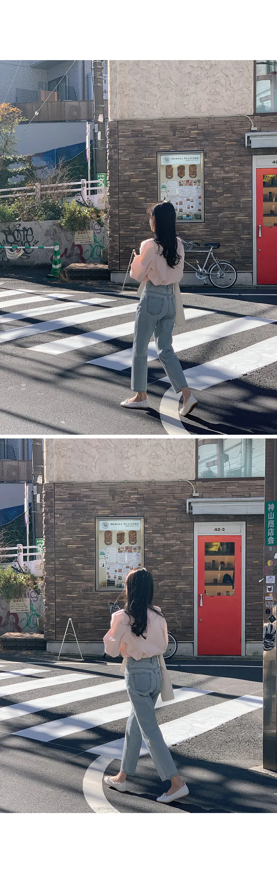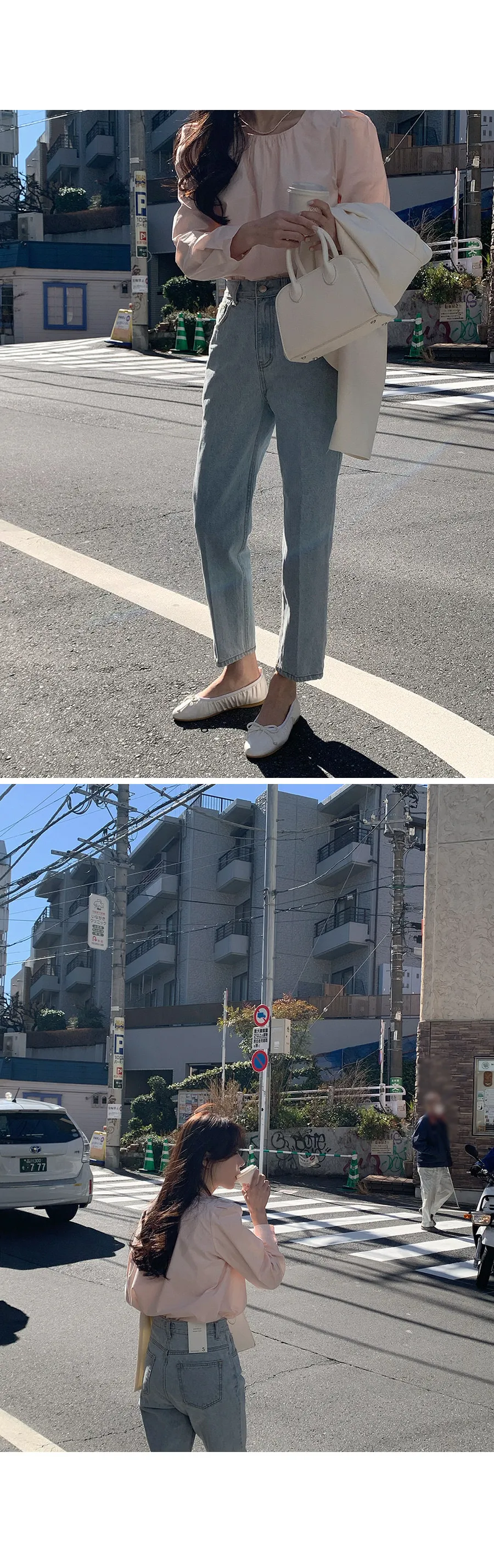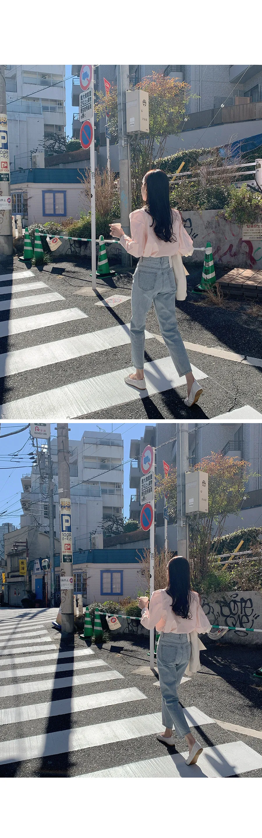 清澈明亮淺藍色直筒修身短版牛仔褲