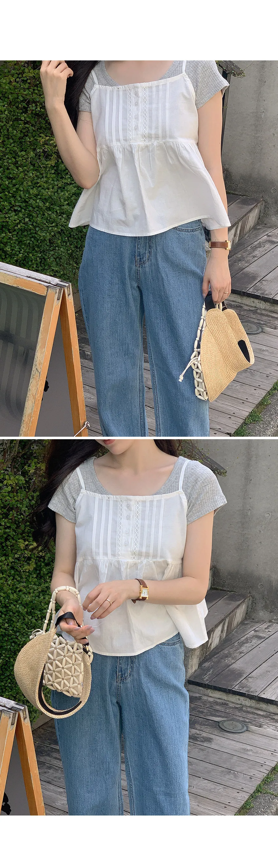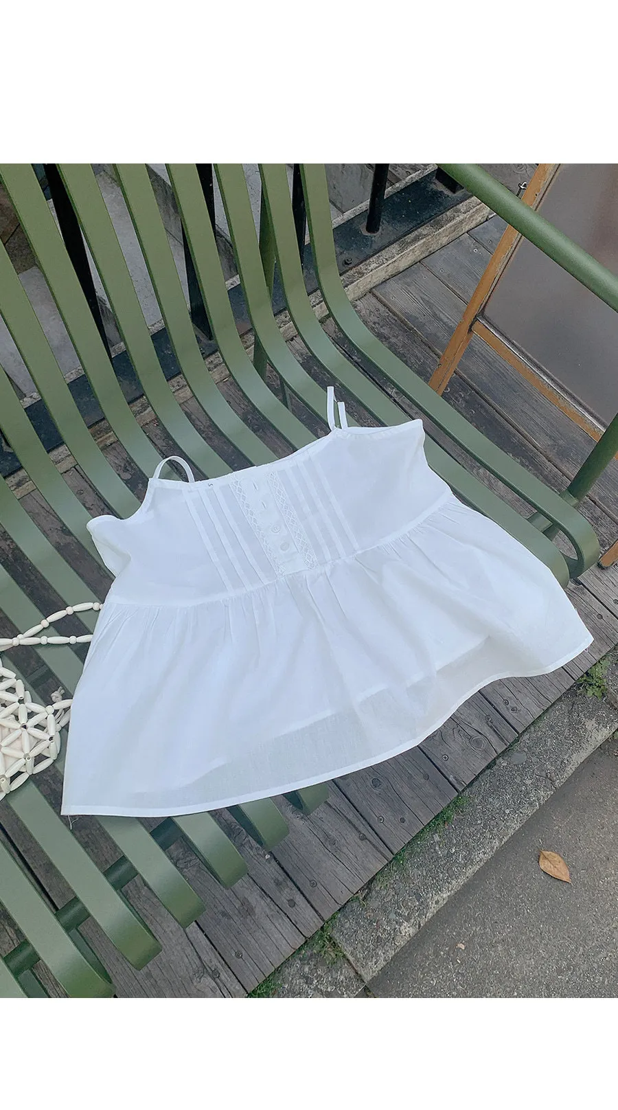 可愛復古情調蕾絲線條細摺穿搭無袖上衣