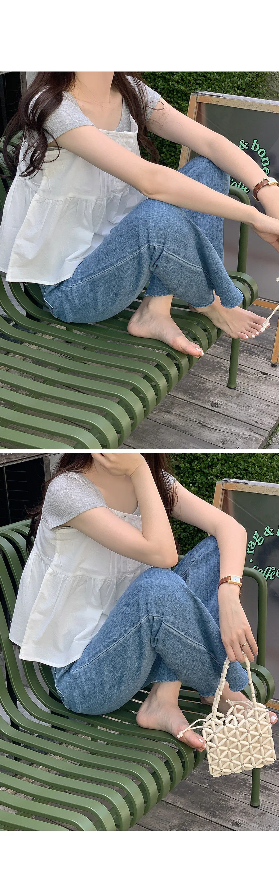 一件可以提高搭配完美度的緊身胸衣。這是一件帶有復古氣息的緊身胸衣 , 胸部有褶皺和蕾絲邊。可在盛夏單獨穿著 ,也可以在換季時作為緊身胸衣穿在基本款 T 卹或襯衫外面 ,因此實用性很高 。柔和的抽褶和略微傘擺形的下擺自然地修飾身形 - 推薦它,可輕鬆搭配長度合適的 牛仔褲或褲子。