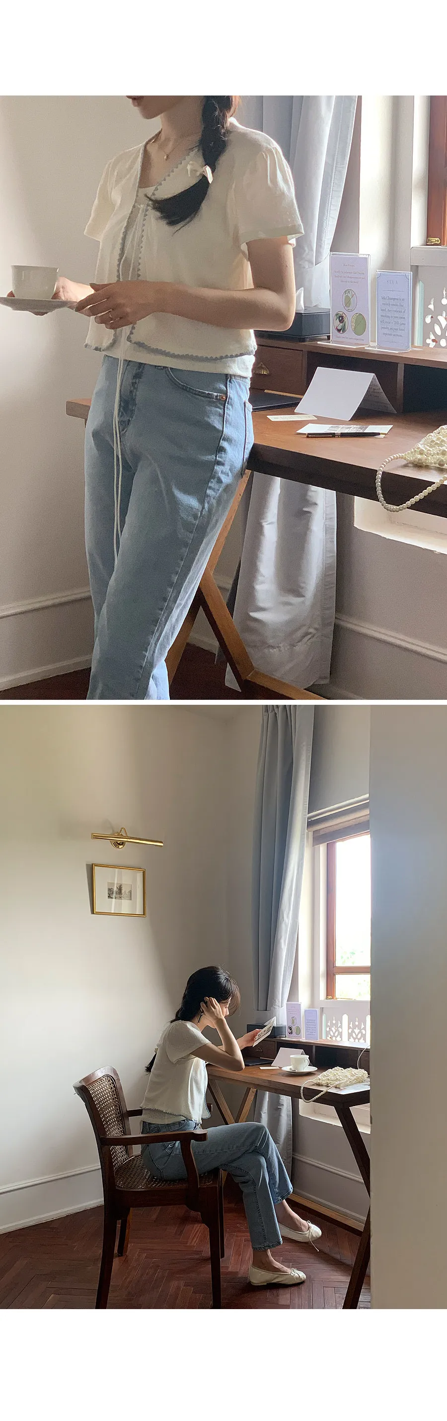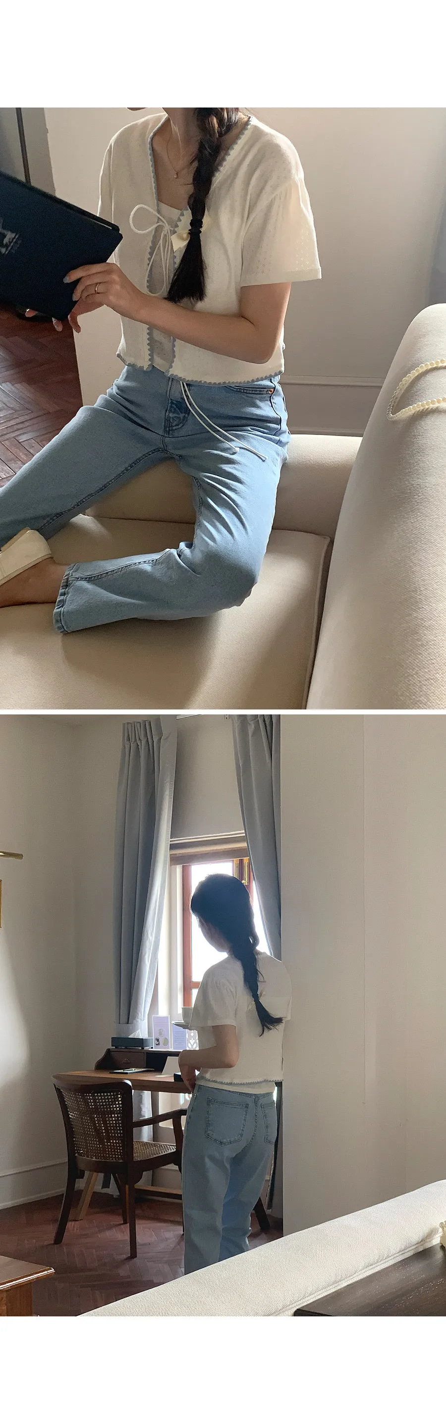 非常適合日常穿著的牛仔褲。版型乾淨俐落,彈性恰到好處,貼合腿部線條,長度稍微露出腳踝,給人一種活潑的感覺。腰部添加的內帶提供了穩定的貼合性,並且貼合度自然地向下擺變窄,形成了苗條的輪廓。 -清爽明亮的淺藍色,從現在到夏天都可以多種方式享受,與任何上衣都很相配,很容易搭配:)