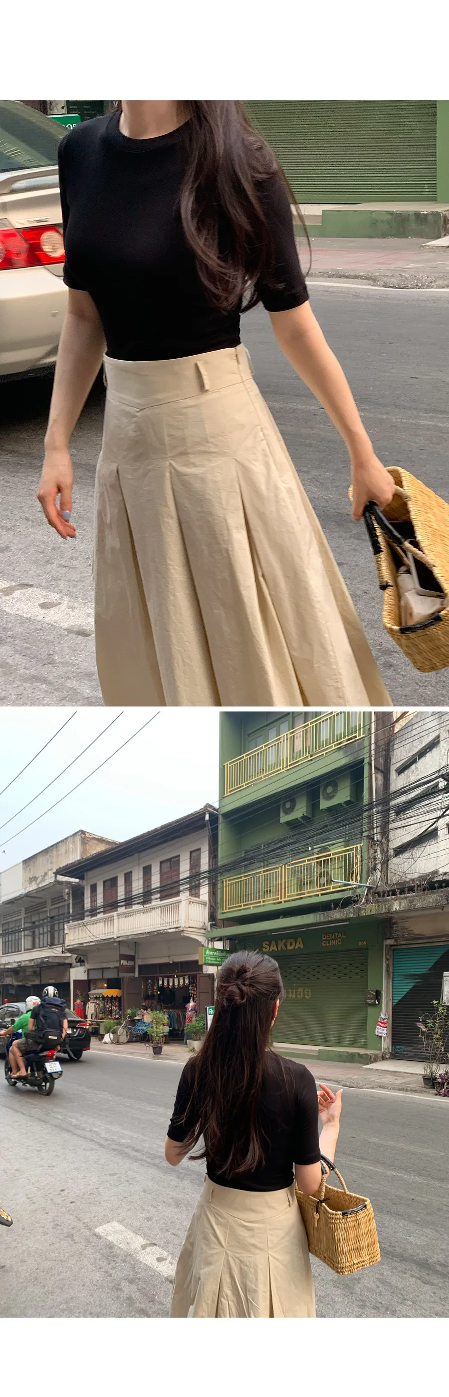 漂亮針摺傘擺中長裙