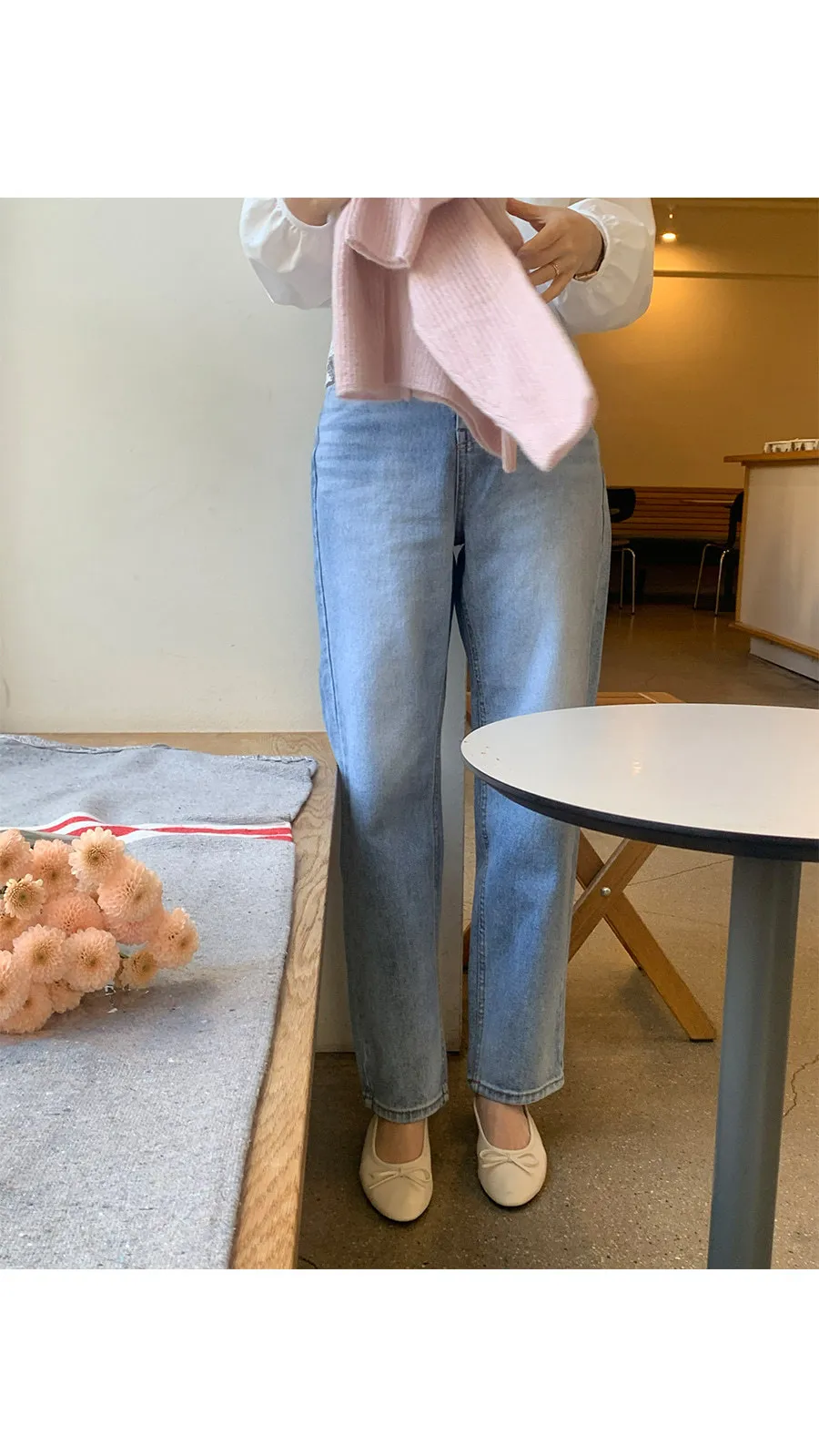 錐形牛仔褲,越往下越窄,讓你穿搭起來更俐落!淺藍色和中藍色之間的時尚洗滌和色彩感營造出精緻的氛圍