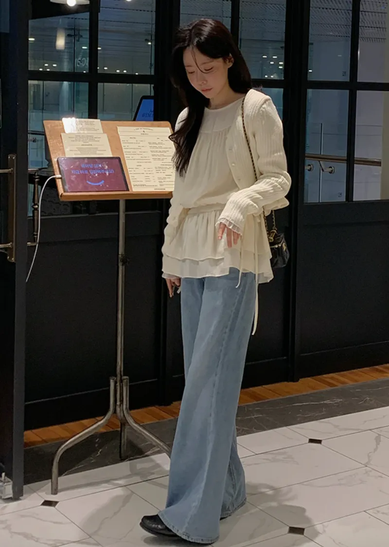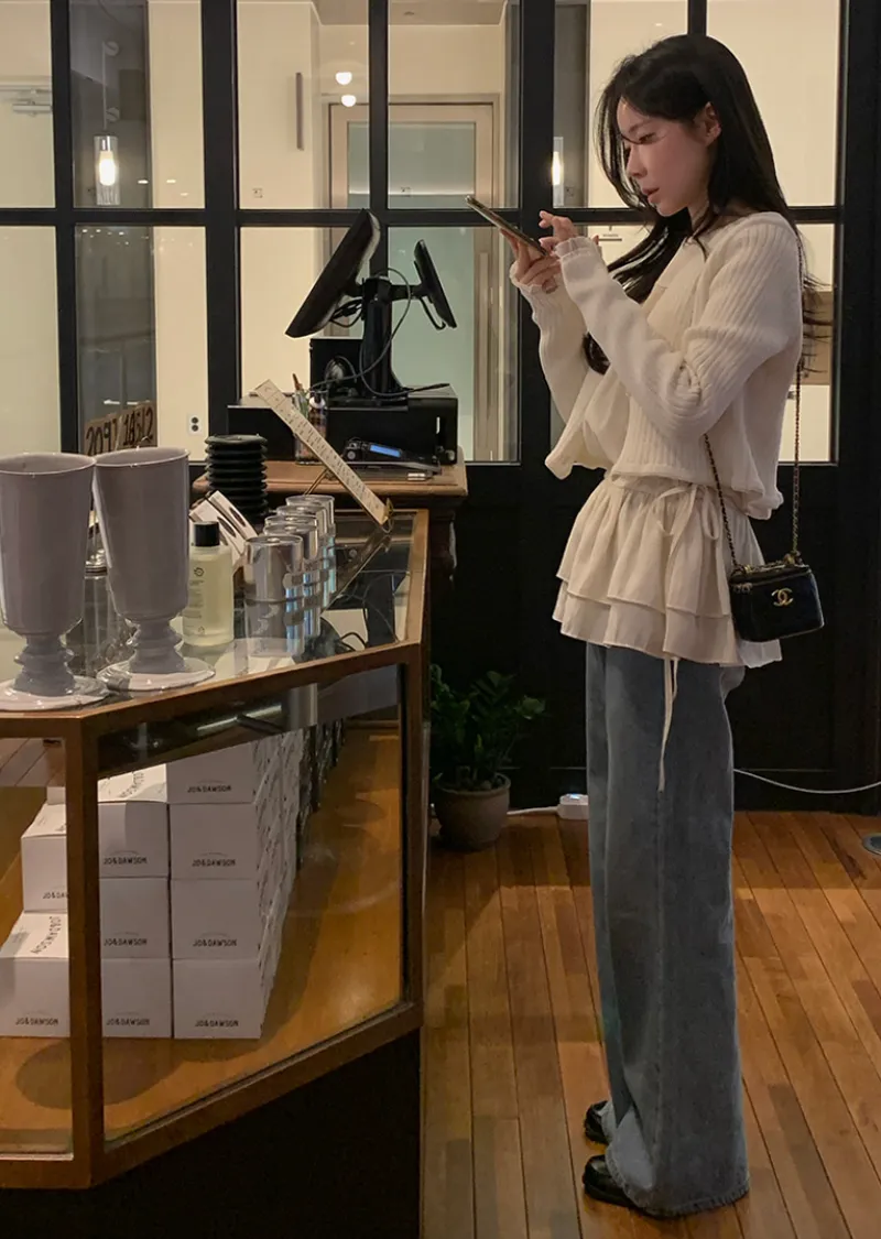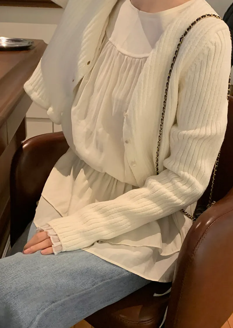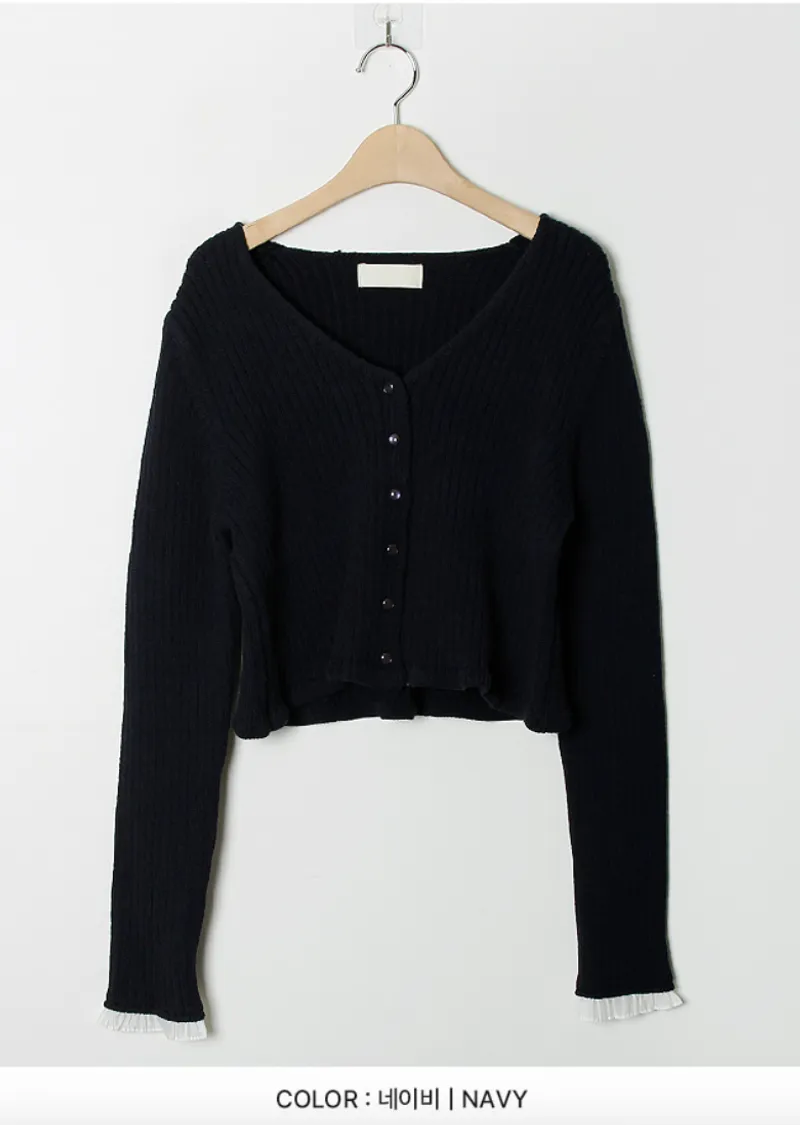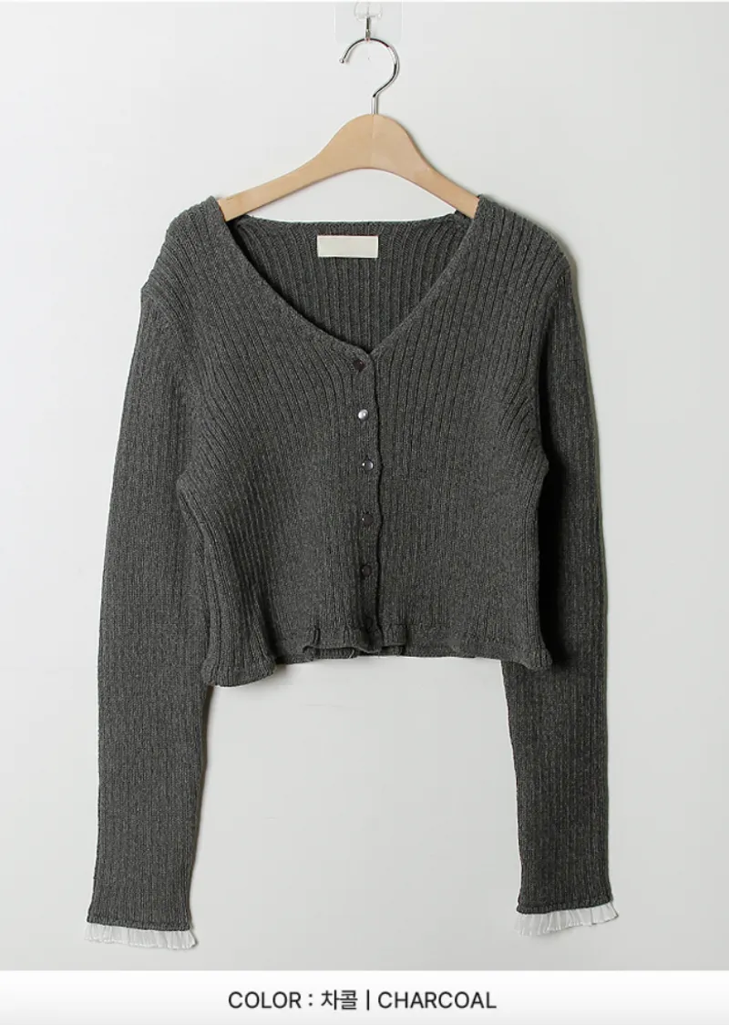 柔美蕾絲荷葉邊袖口波浪下擺針織開衫