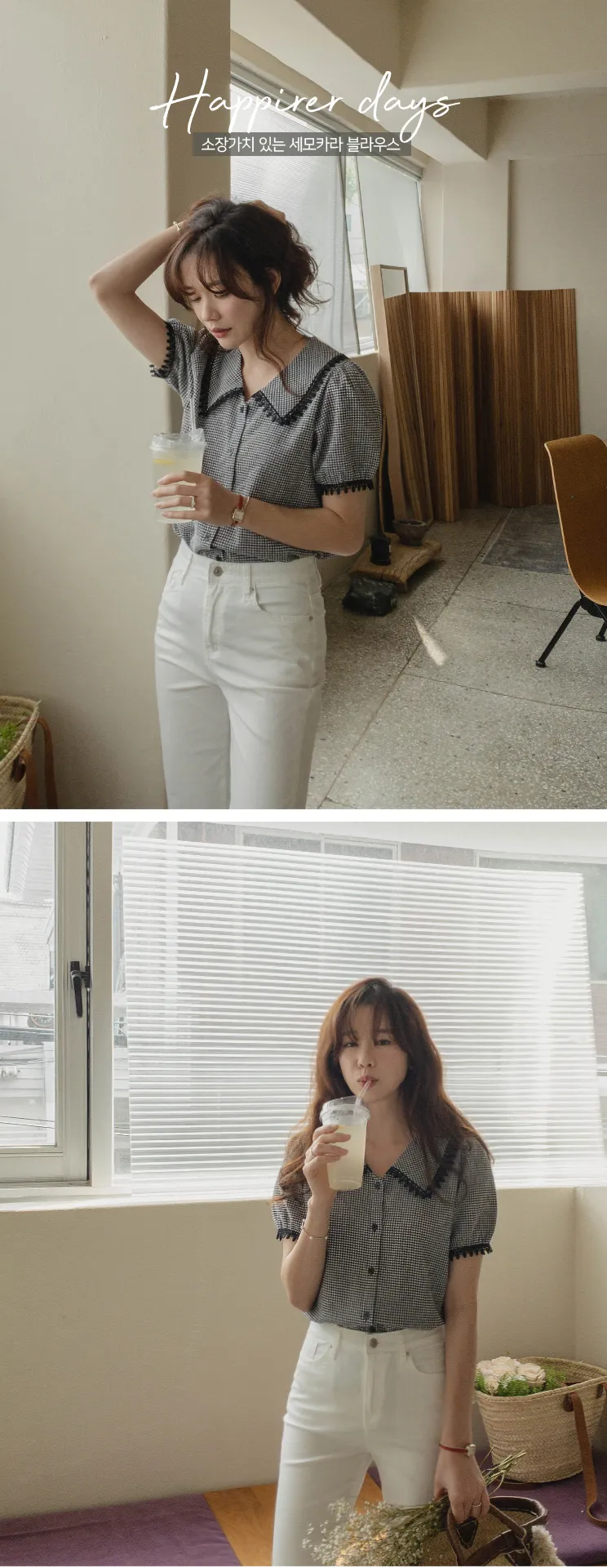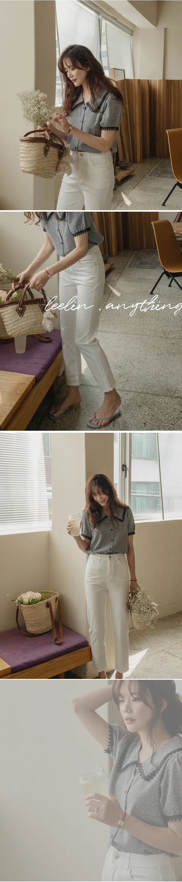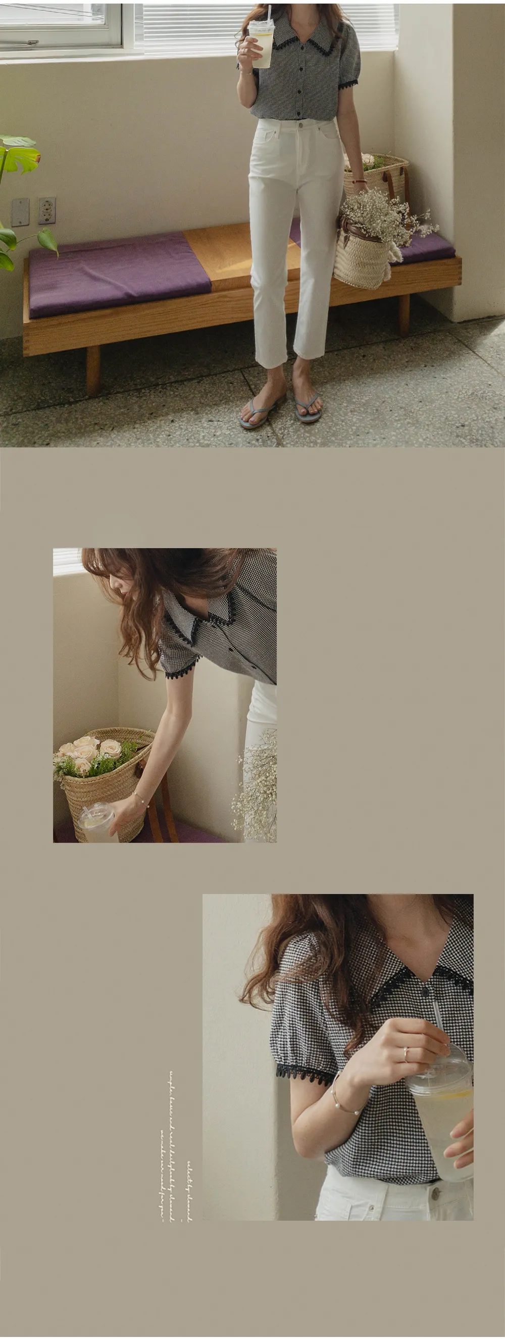 魅力黑色水滴蕾絲飾邊格紋排扣上衣