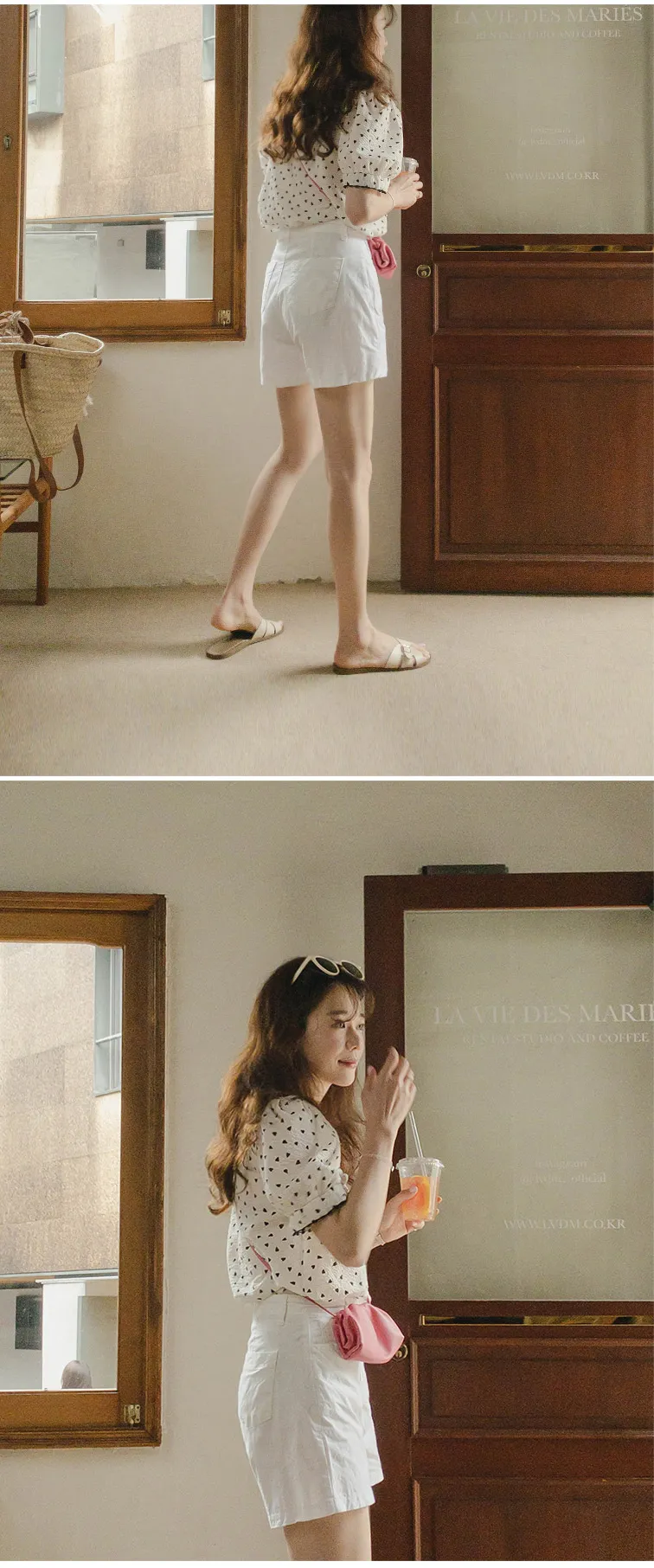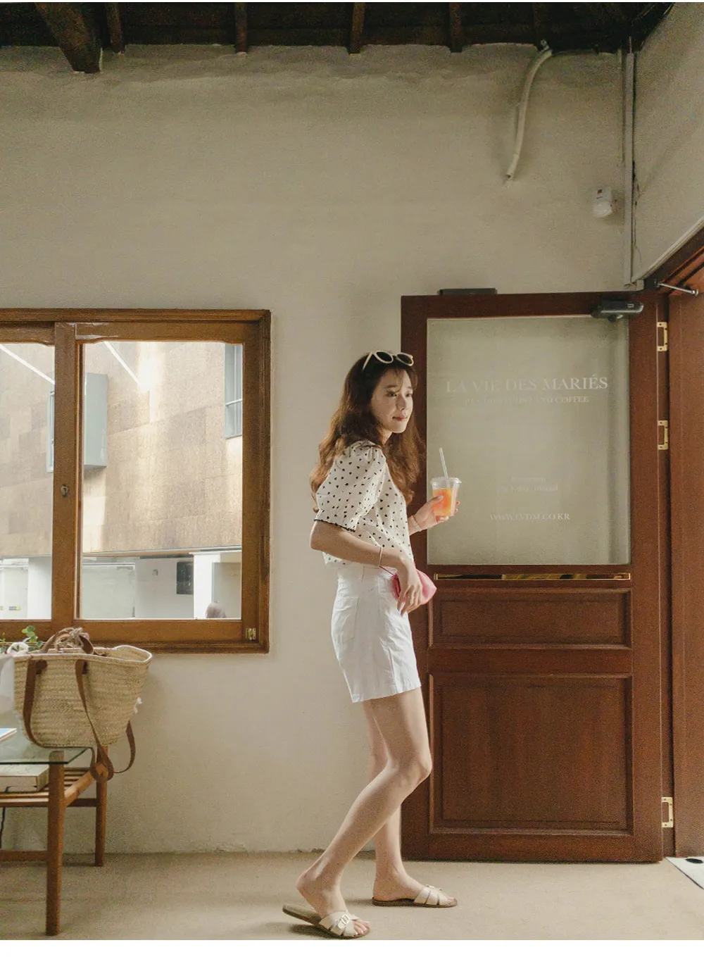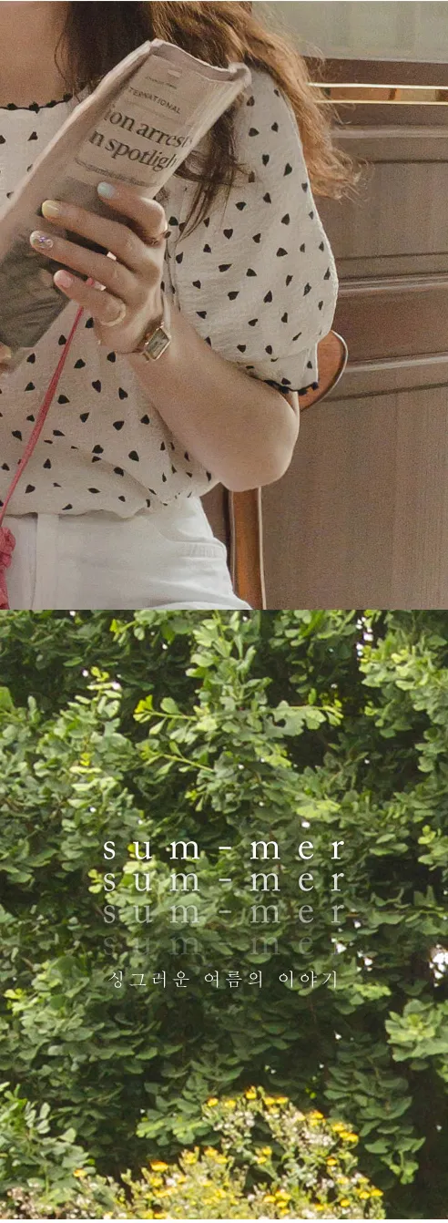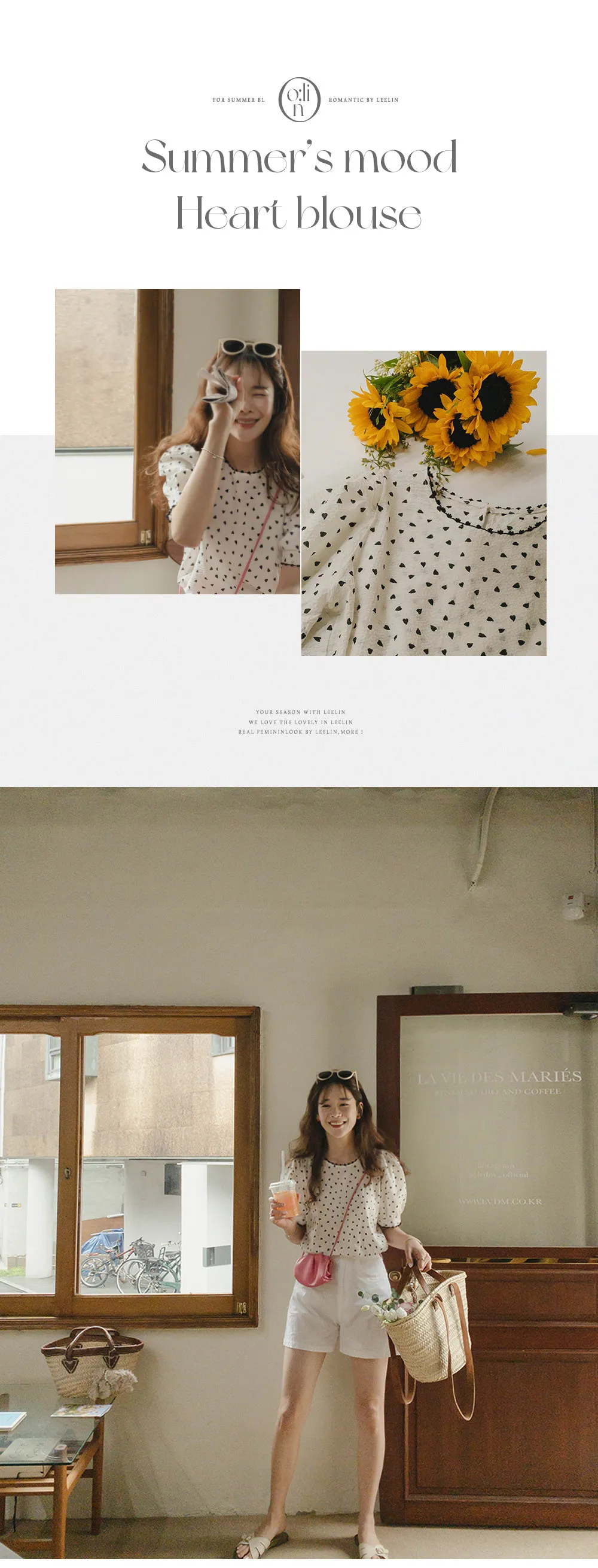 可愛波浪刺繡邊肩部細褶泡泡紗愛心上衣
