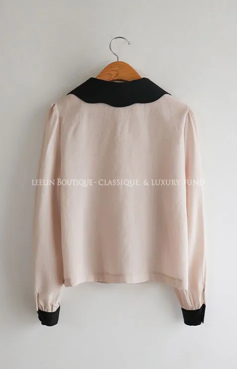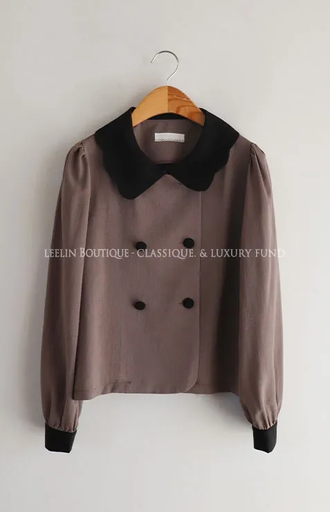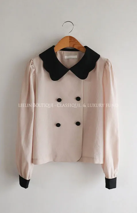 優雅波浪配色領邊雙排扣上衣