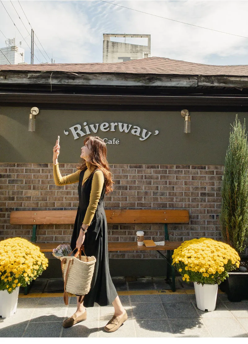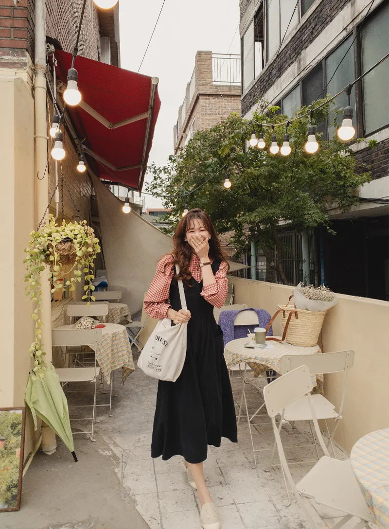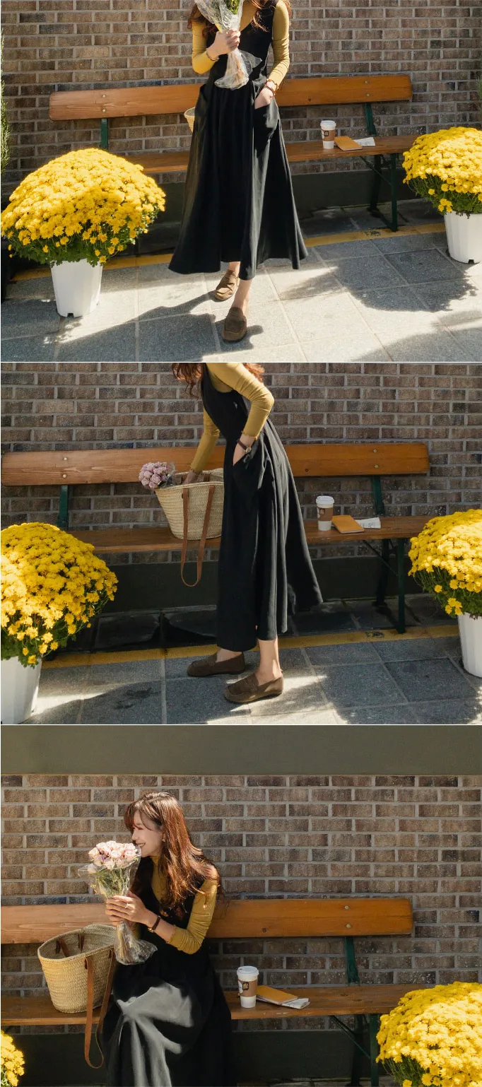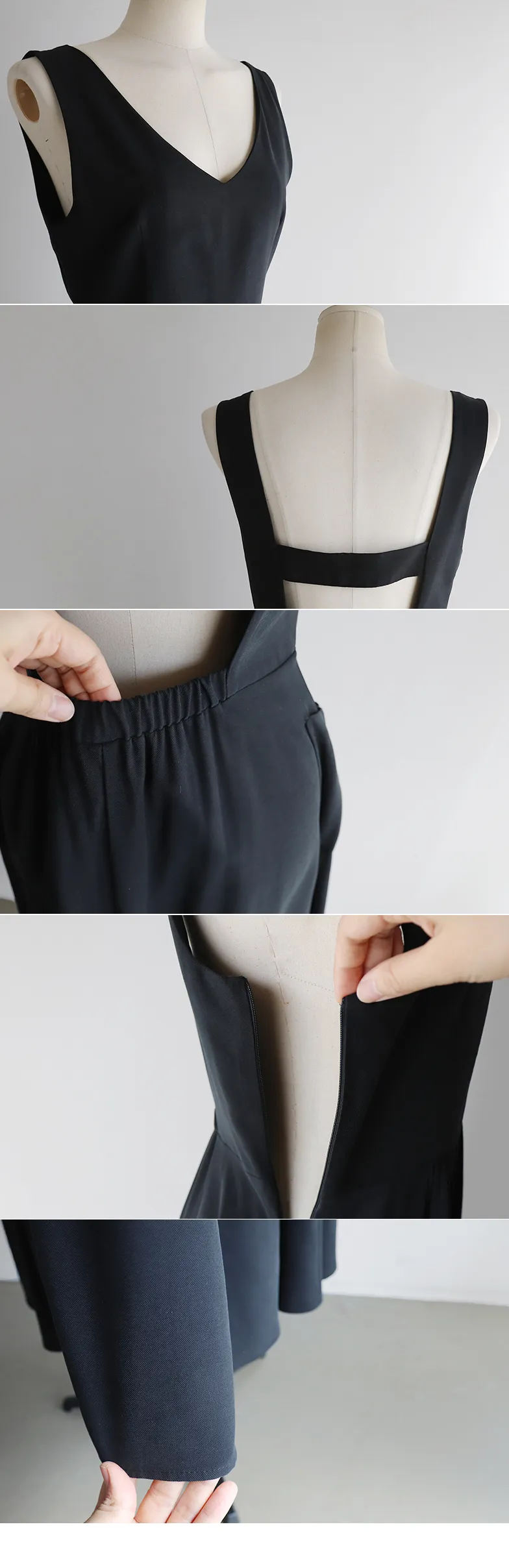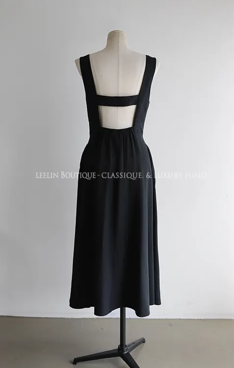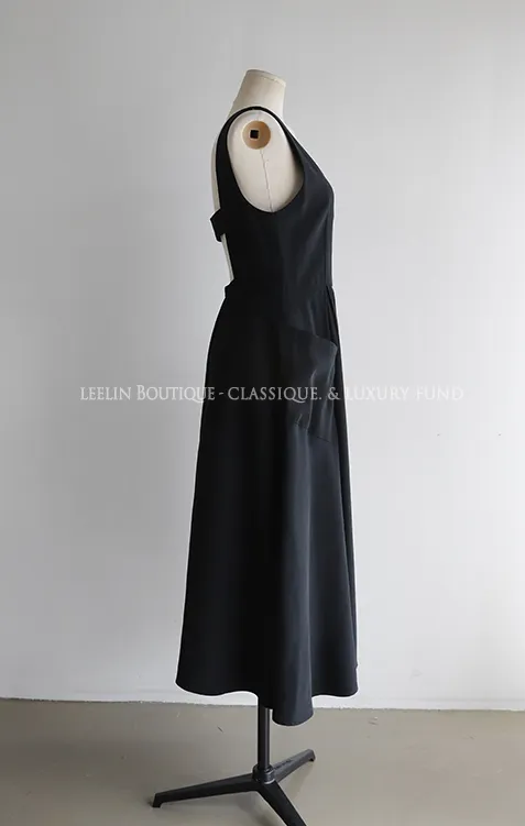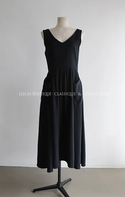 浪漫線條V領後鏤空設計口袋連身裙
