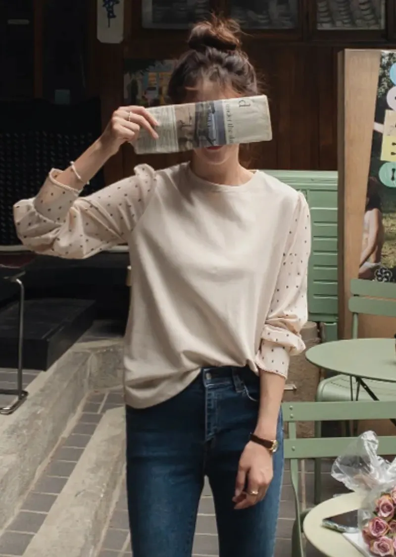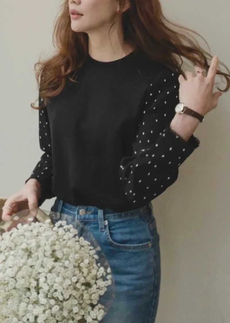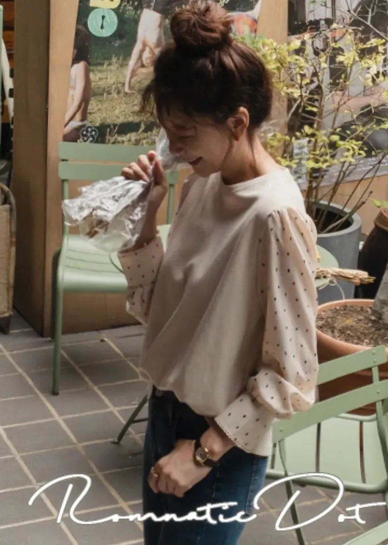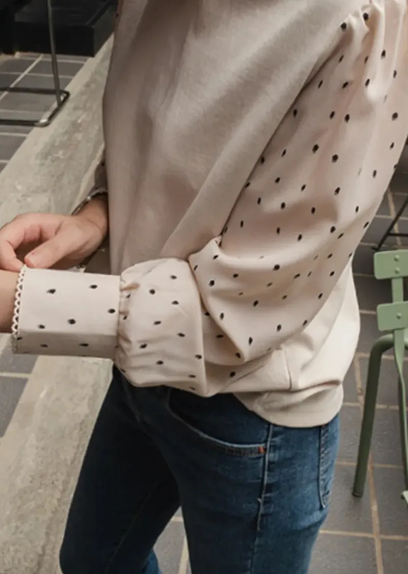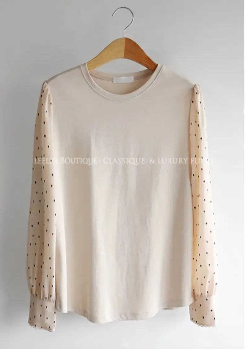 別緻滾邊袖口點點袖輕盈柔軟上衣