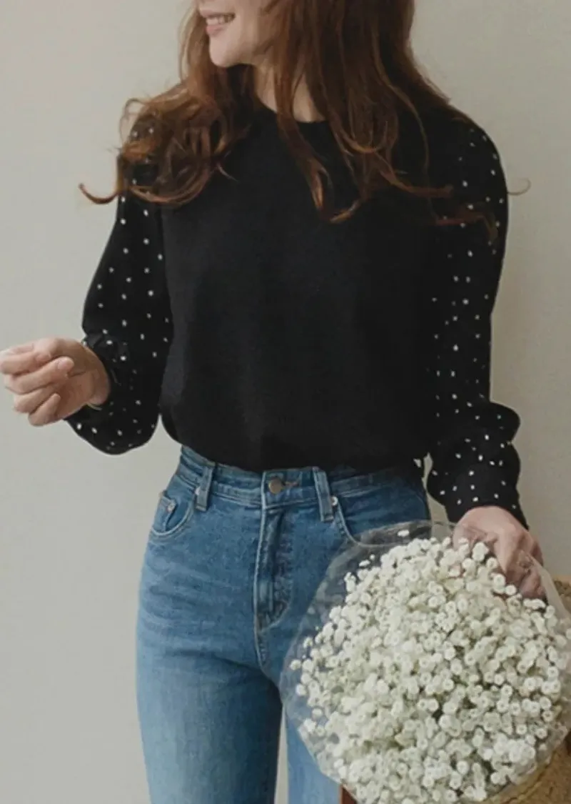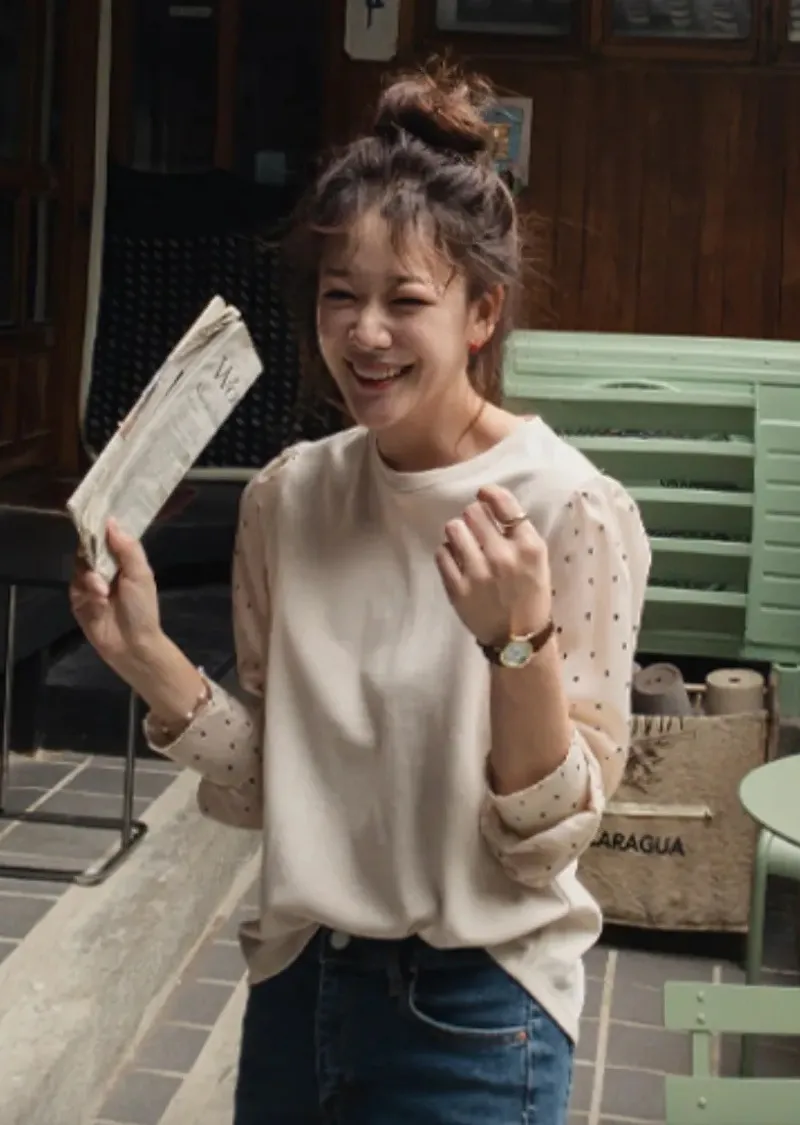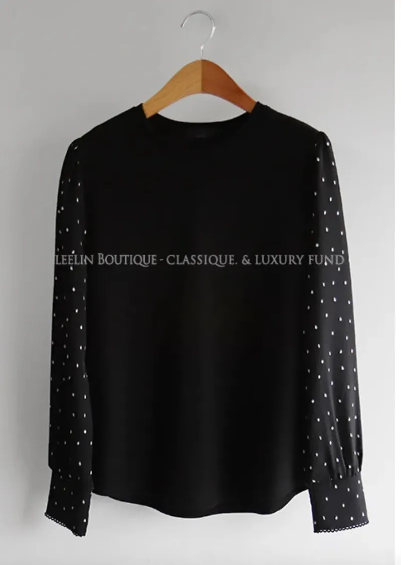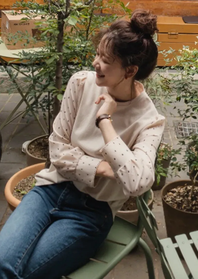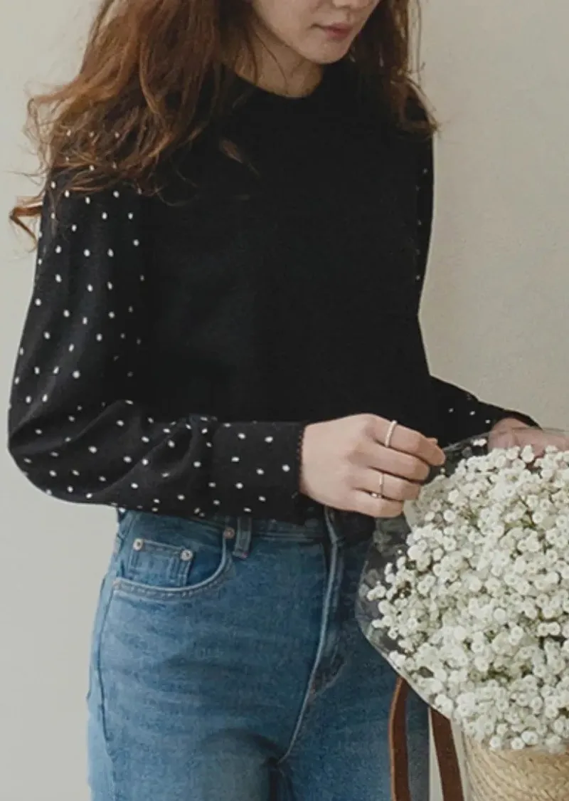 別緻滾邊袖口點點袖輕盈柔軟上衣