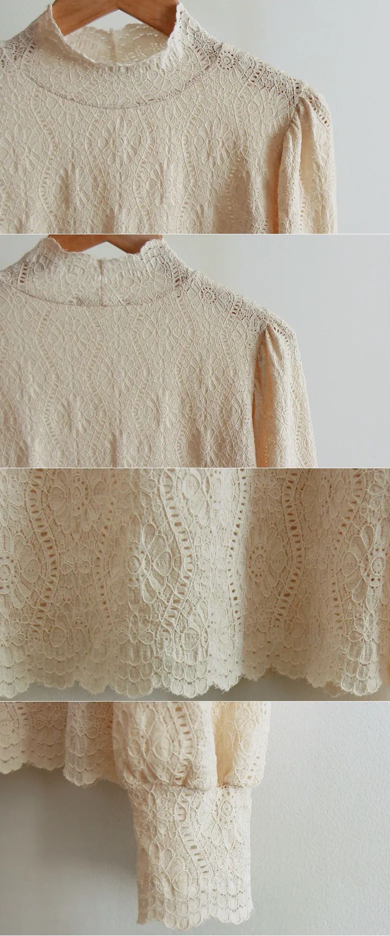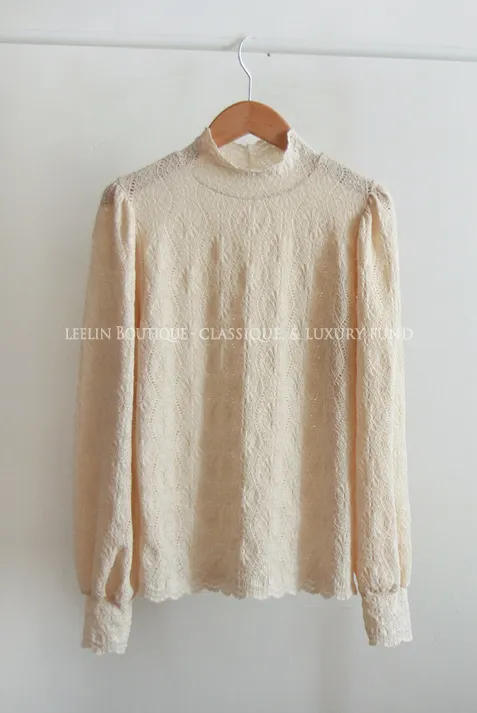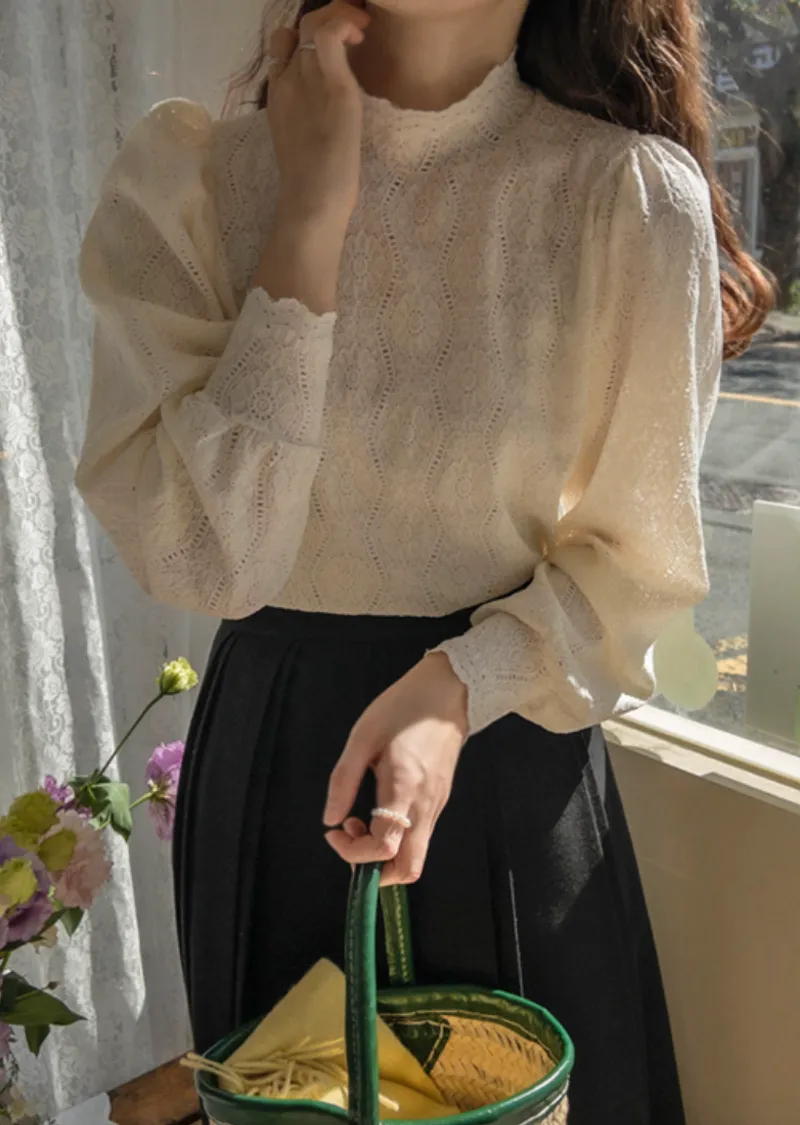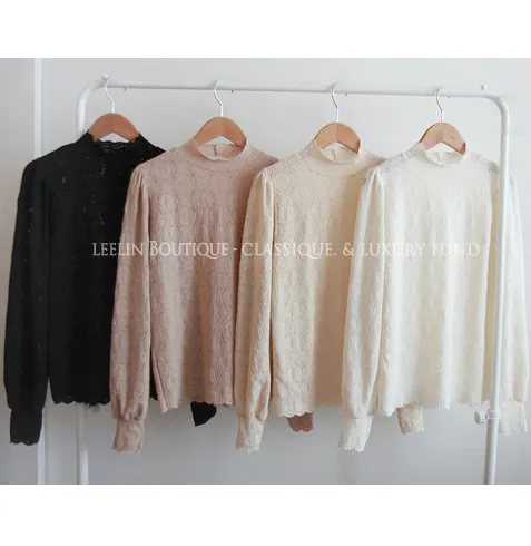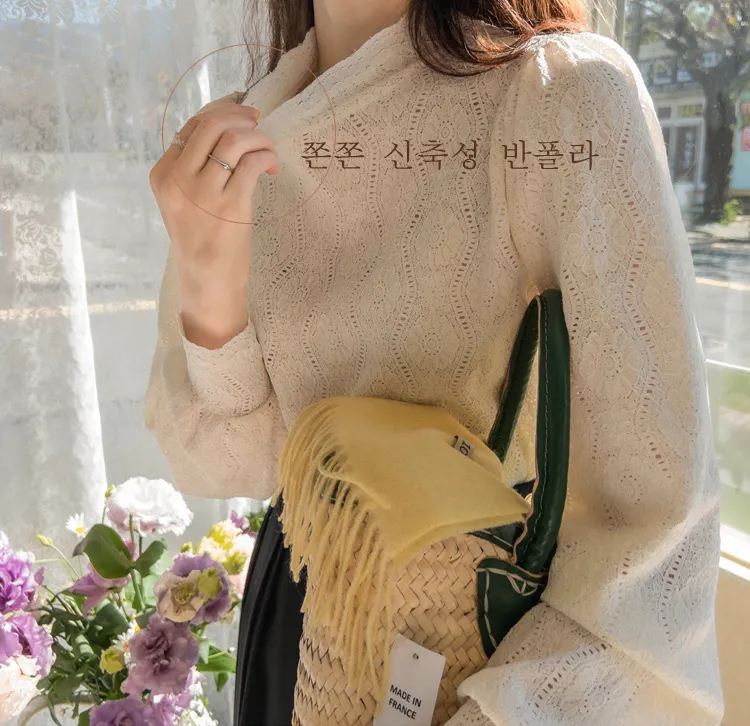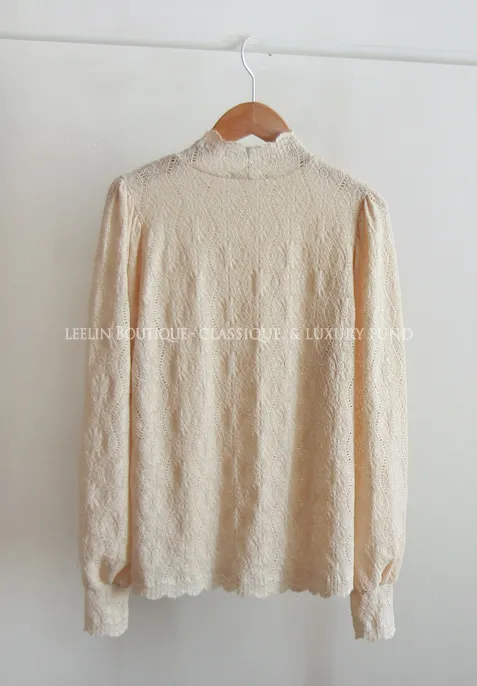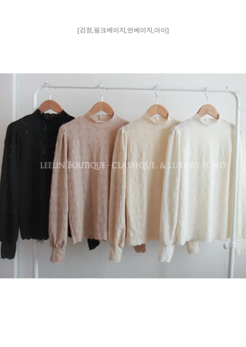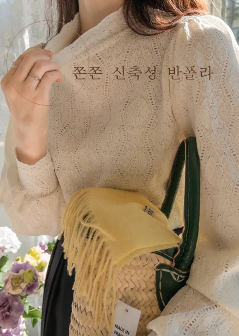 漂亮蕾絲柔軟彈性半高領上衣