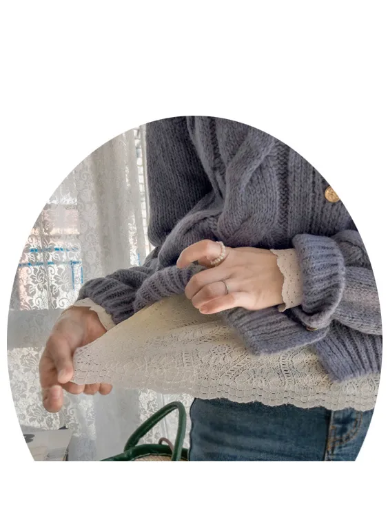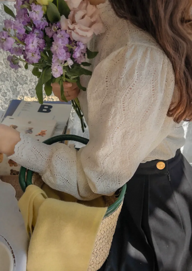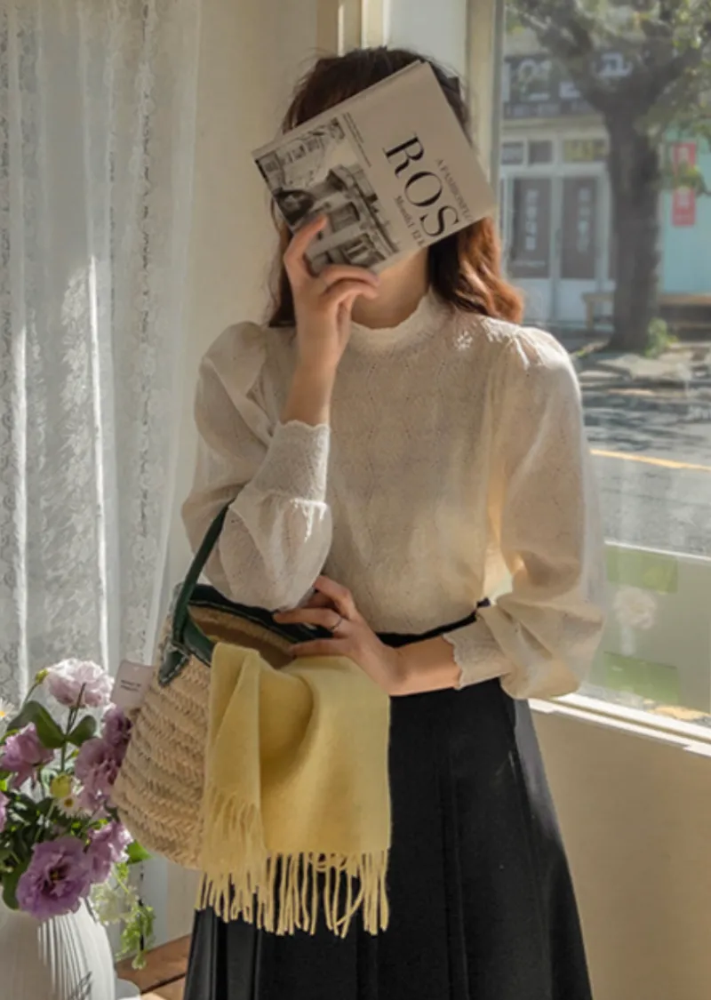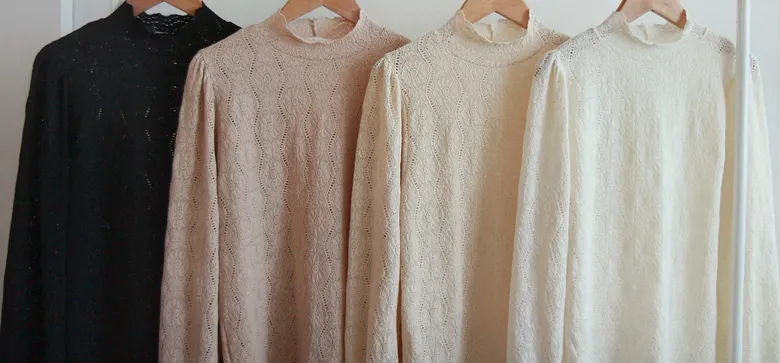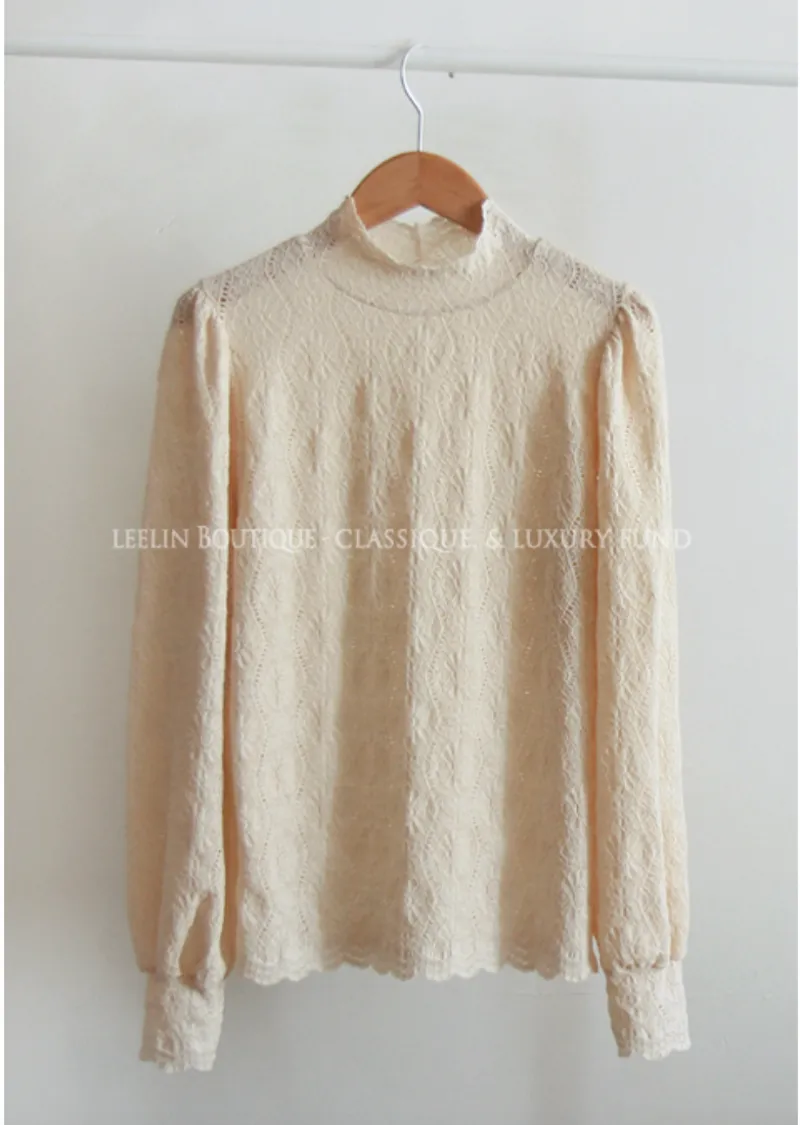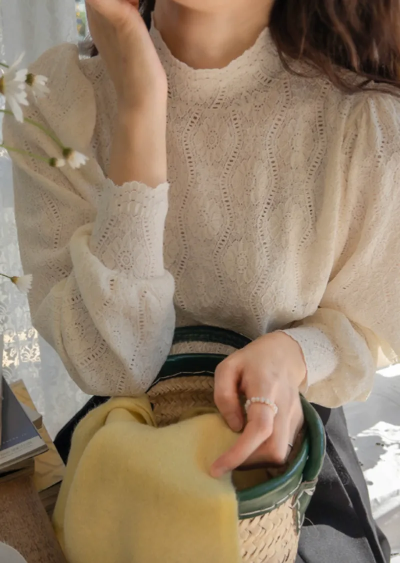漂亮蕾絲柔軟彈性半高領上衣