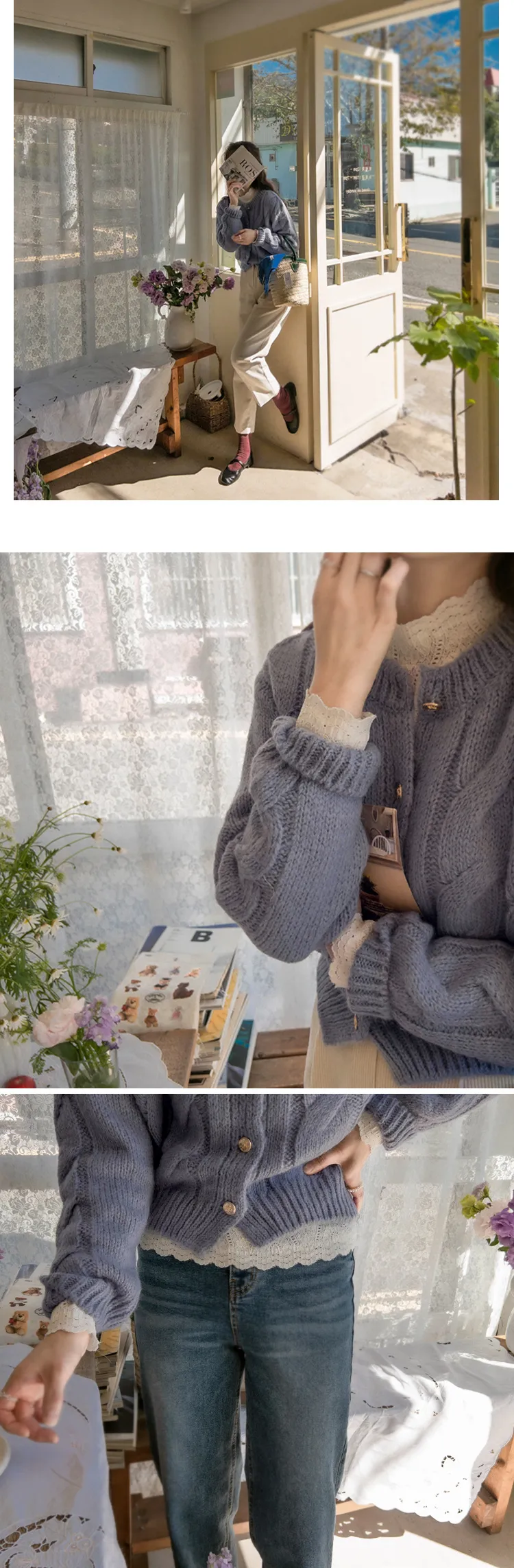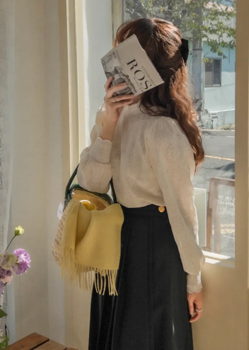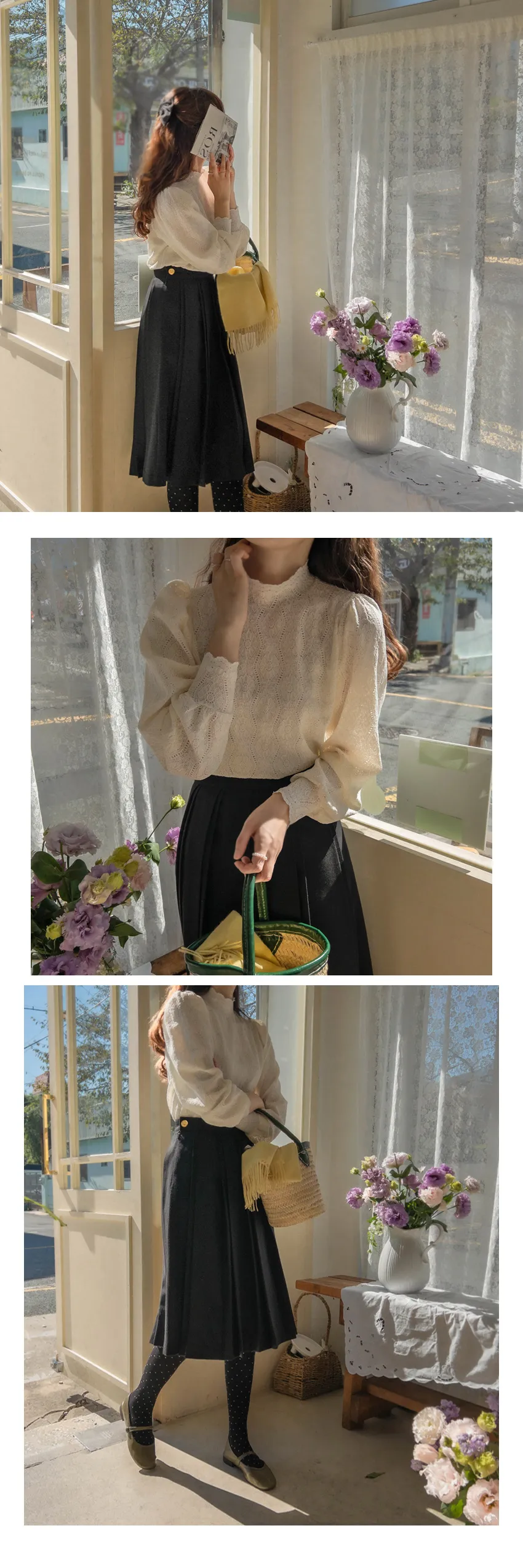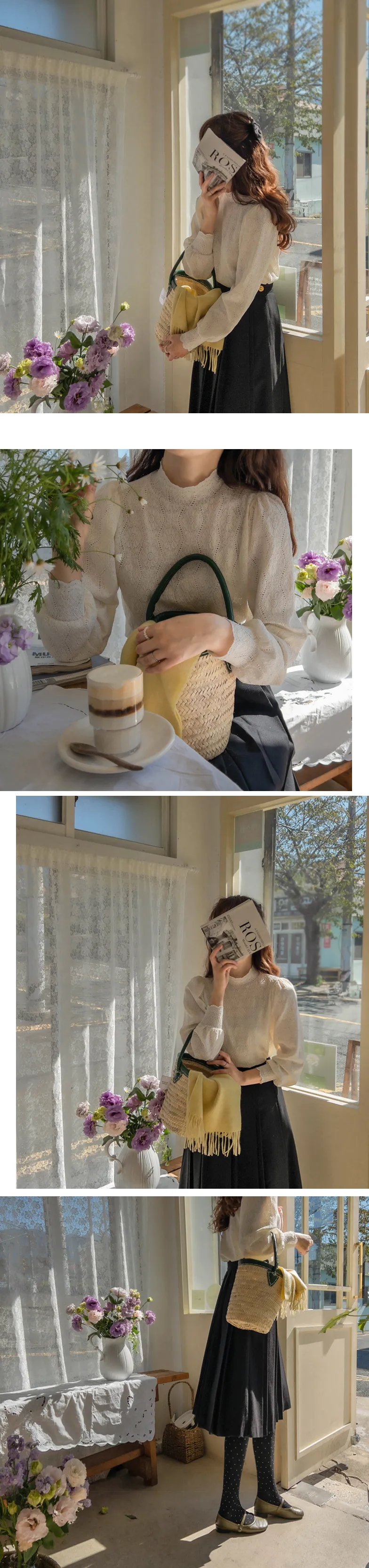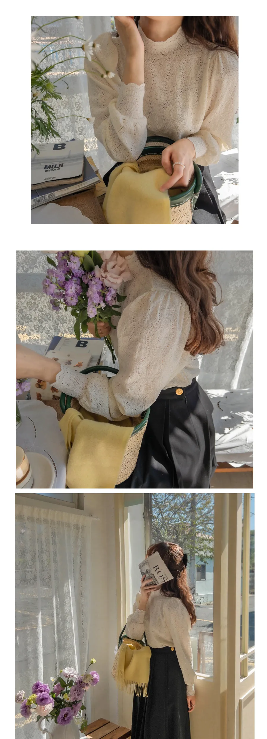 漂亮蕾絲柔軟彈性半高領上衣