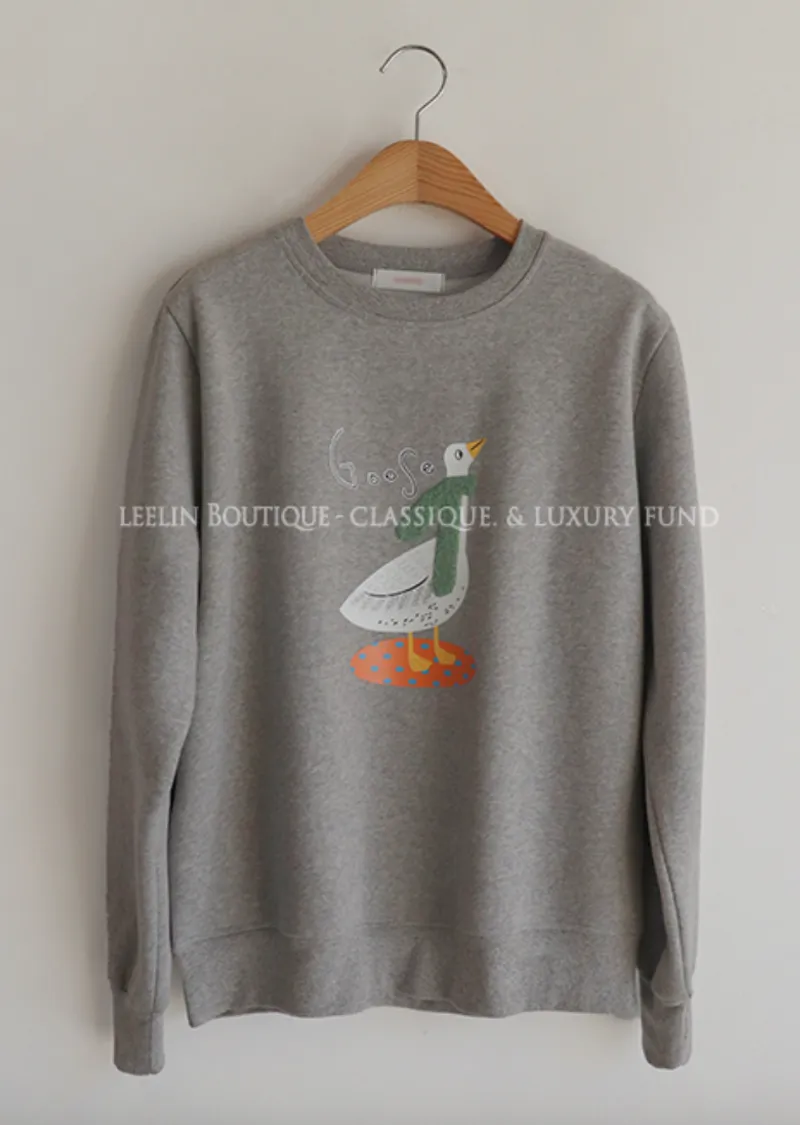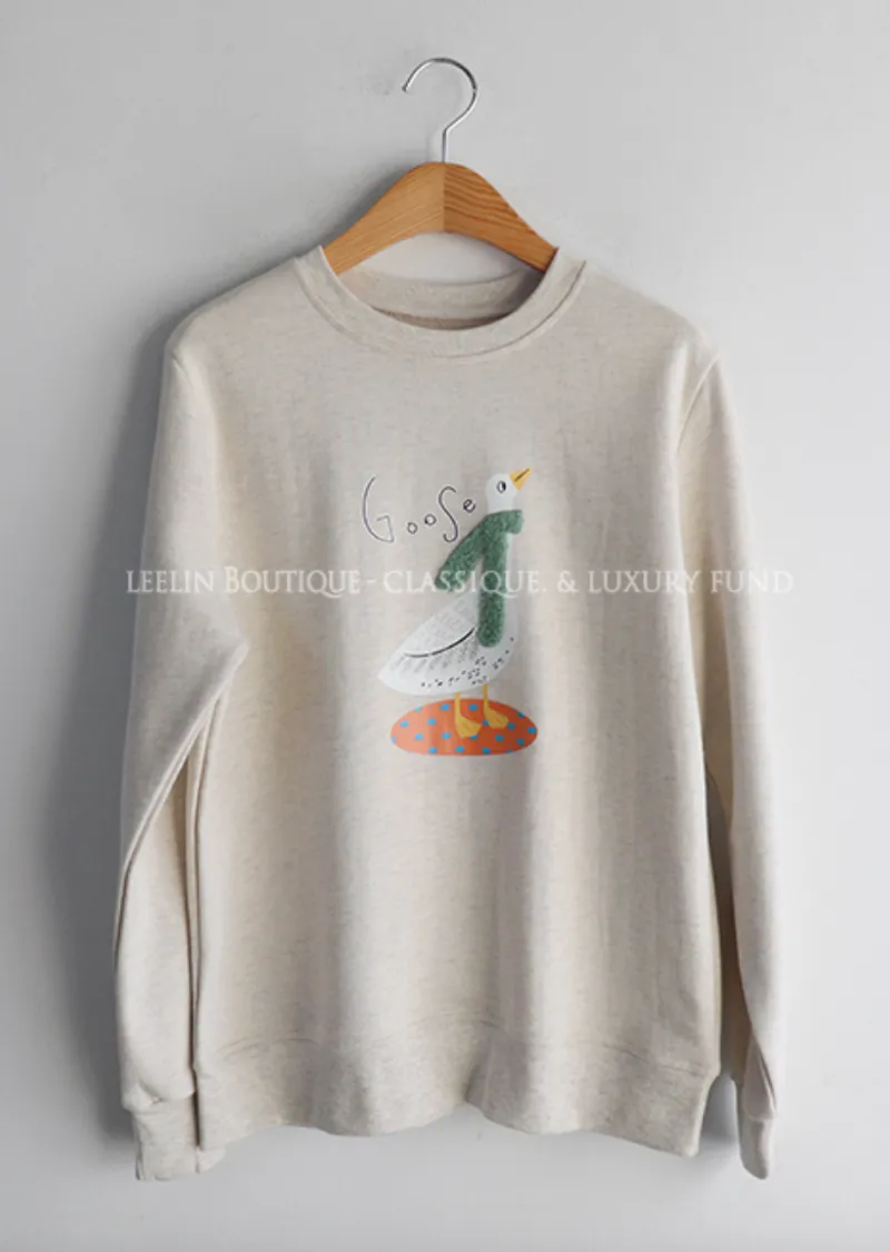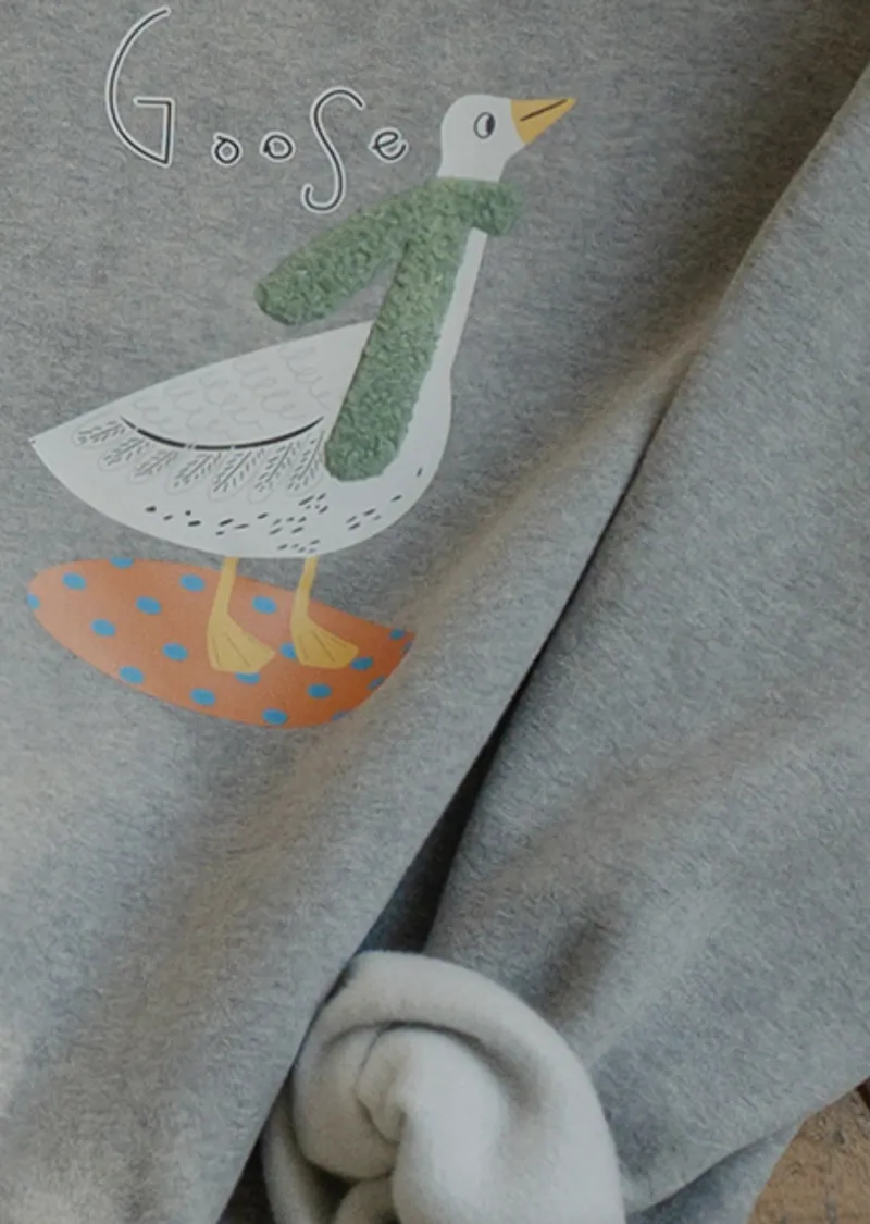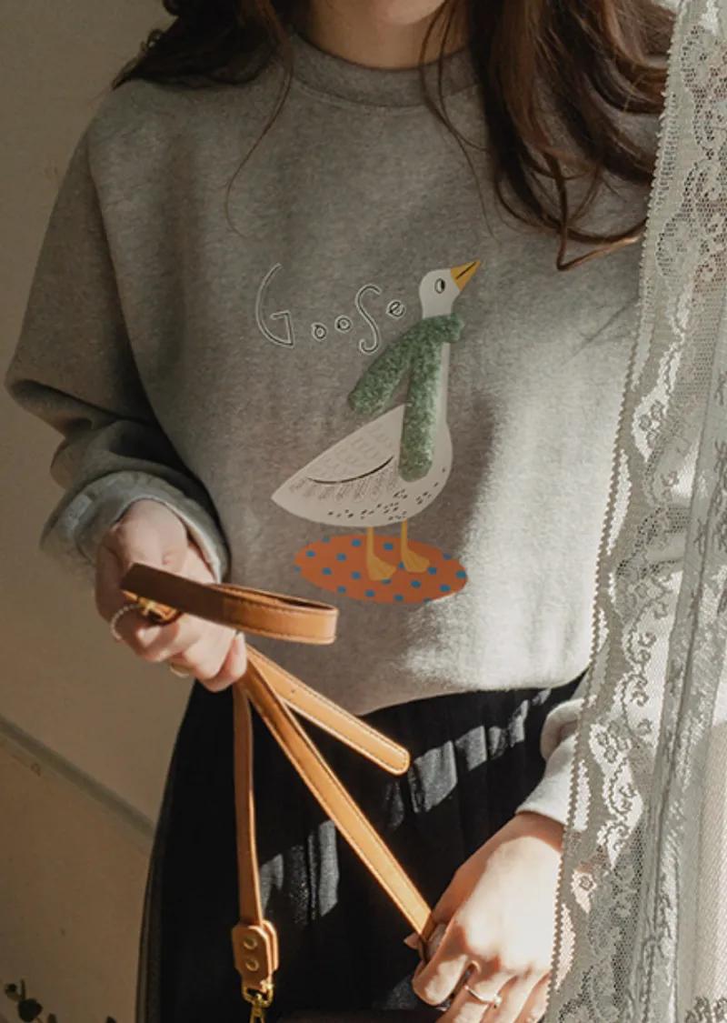 可愛帶圍巾天鵝印花柔軟舒適上衣