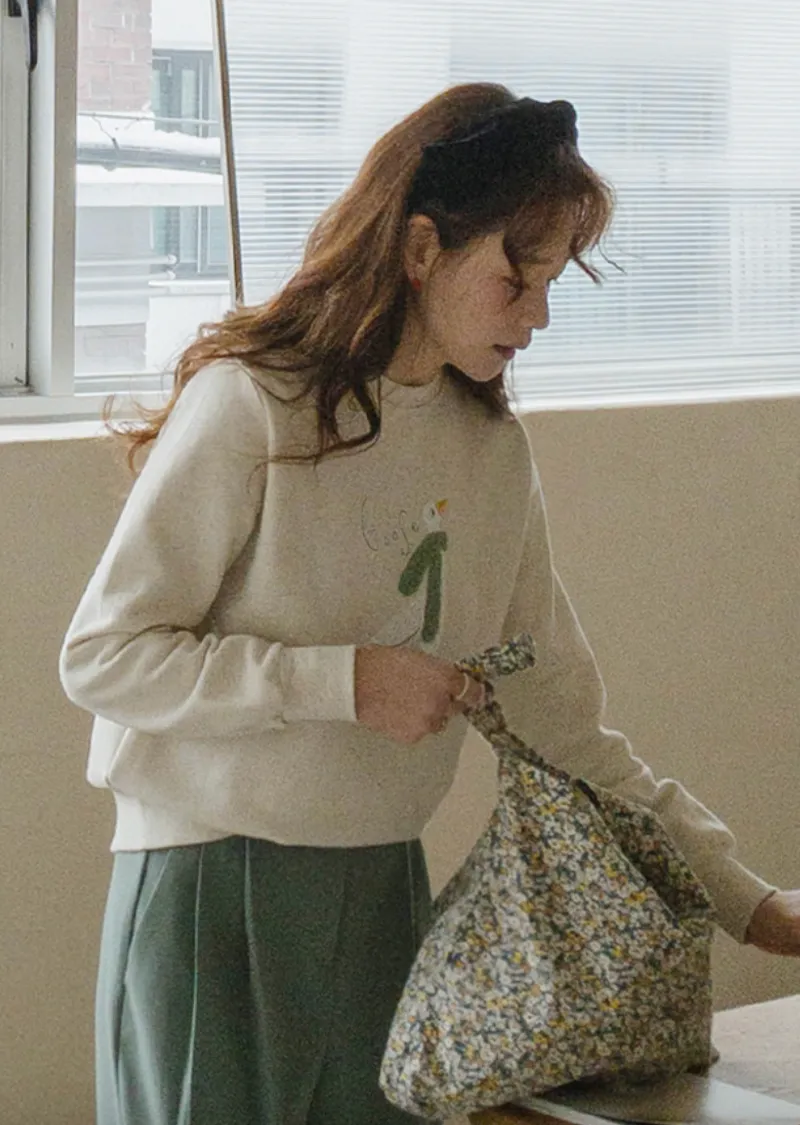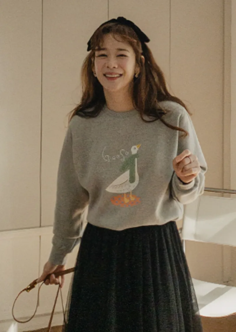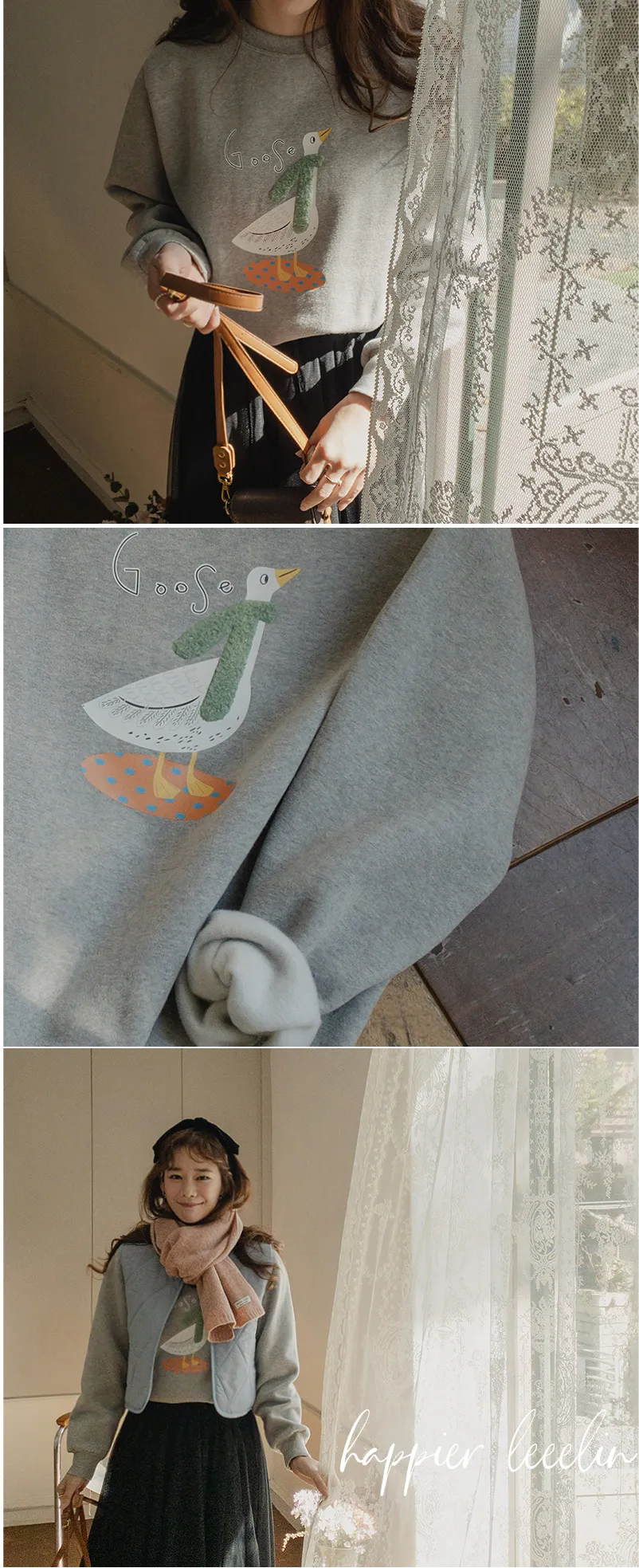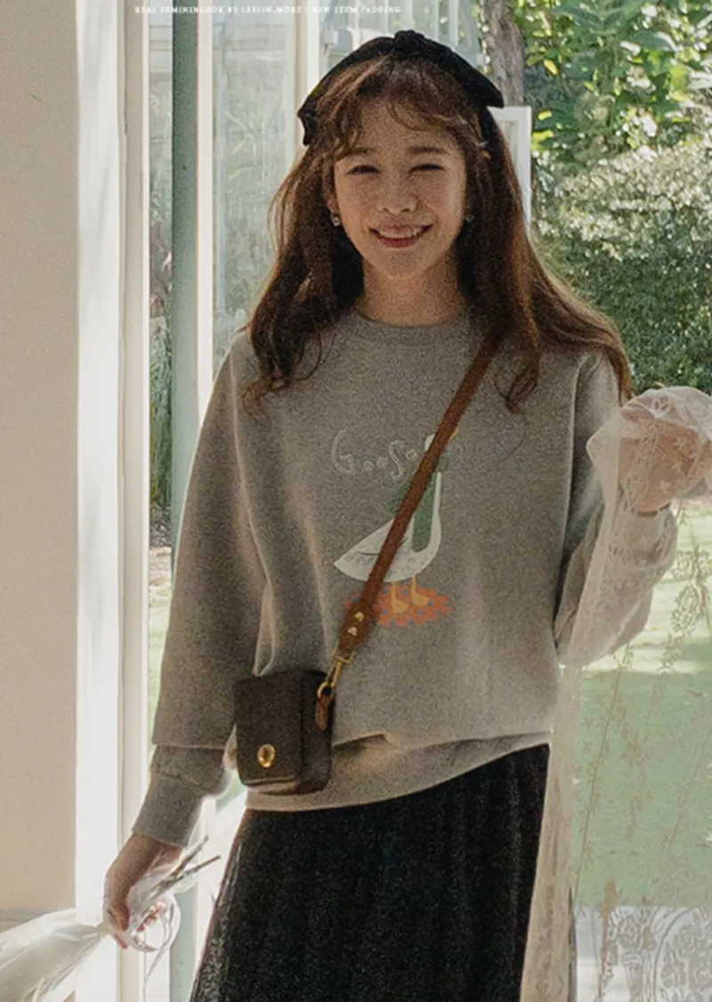 可愛帶圍巾天鵝印花柔軟舒適上衣