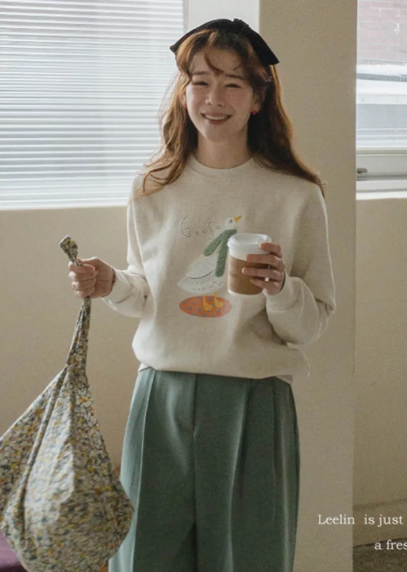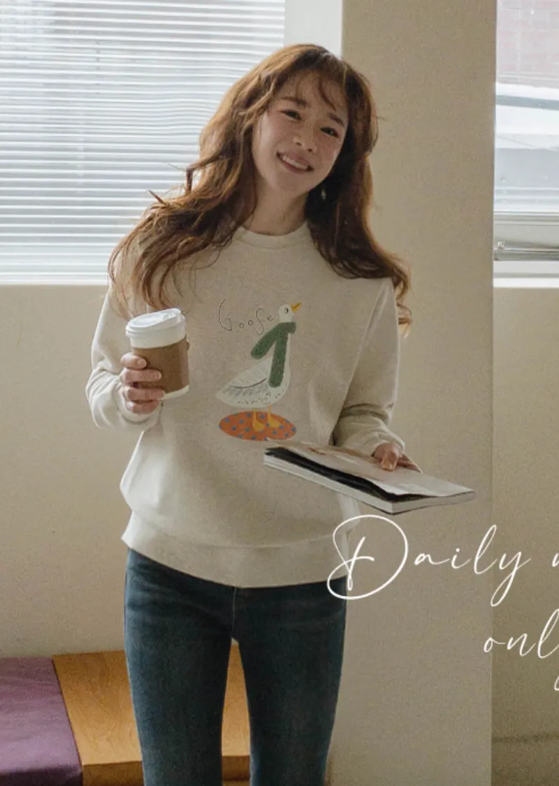 【可愛的天鵝印花太萌了♡】【春季新款羅紋布料上市!】【柔軟立體的觸感獨一無二~】【柔軟耐穿的100%純棉布料】【落肩設計,讓你的肩線更顯優美! 】